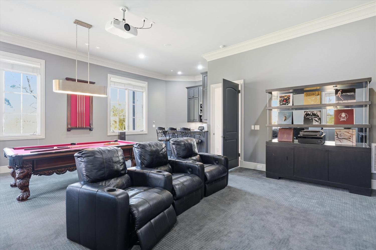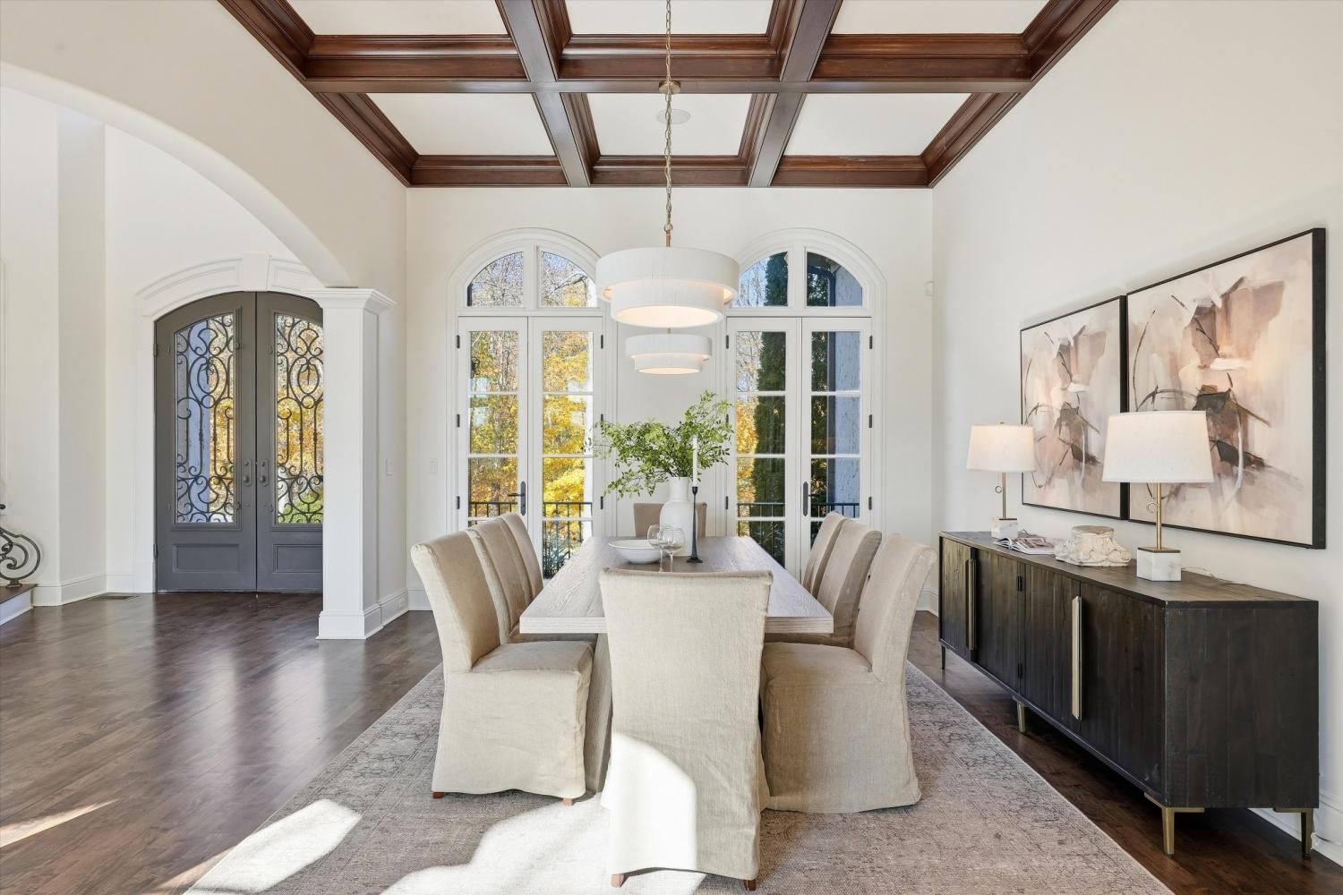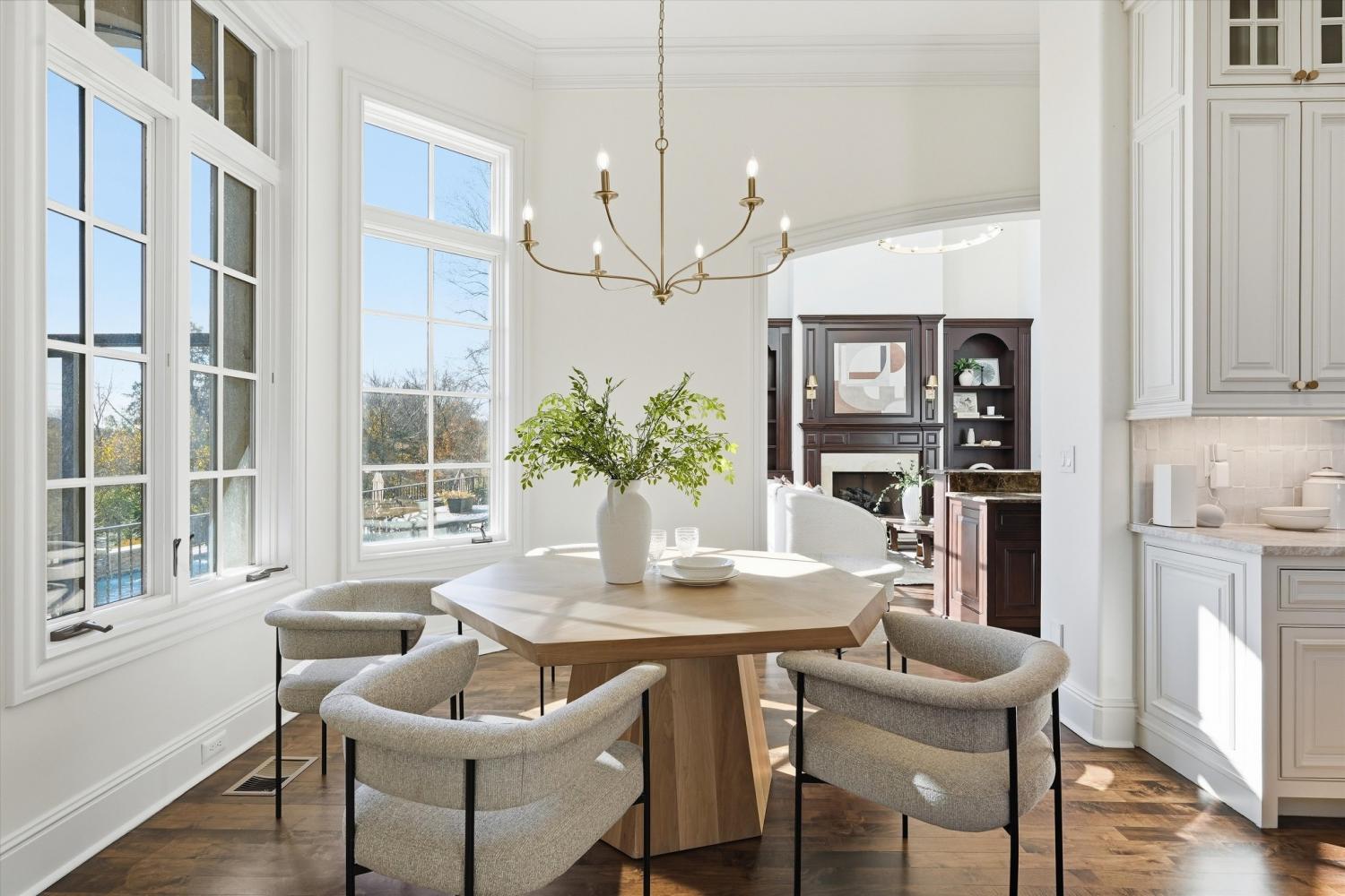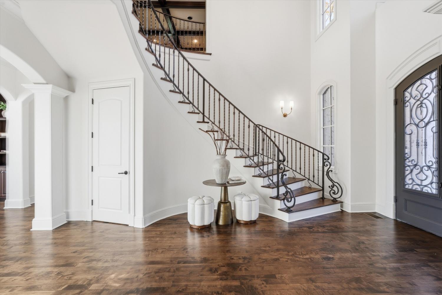 Welcome to luxury living in The Governor’s Club, one of Middle Tennessee’s most prestigious gated golf communities. Overlooking the Arnold Palmer Signature Course, this fully renovated residence blends timeless Italian-inspired architecture with modern functionality and resort-style amenities. Designed for effortless entertaining, the grand two-story domed foyer opens to an elegant sitting room with Palladian windows, a wet bar, and a large gas log fireplace. French doors lead to an expansive terrace overlooking the luxury-size pool and outdoor living areas. A formal dining room complements the sitting room, while high archways create a seamless flow throughout the main level. The chef’s kitchen features professional-grade appliances, Taj Mahal quartzite counters, custom cabinetry, an Archistone range hood, and generous island seating. The great room extends the entertainment space and includes another gas log fireplace. The primary suite offers privacy and sophistication with its Archistone fireplace, double French doors to the terrace, spa bath, and custom closets. The media room includes 7:2 surround sound, a 4K projector, pool table, and wet bar. The upper level provides three additional bedrooms and a library/office with a gas log fireplace. A private in-law suite on the lower level is ideal for extended family or multigenerational living, featuring its own entrance, gas log fireplace, studio kitchen, large closets, and spacious bath. Outdoor living is exceptional, with a screened-in porch featuring a gas log fireplace and American Outdoor 36” grill, plus a large pool deck with an outdoor kitchen, refrigerator, and bar seating. The fully fenced yard provides privacy while capturing scenic fairway and landscape views. 2025 updates include a new roof, new kitchen, refreshed lighting, interior & exterior paint, refinished hardwoods, and landscaping. Inside the gates, residents enjoy 24-hour security, dining, fitness, tennis, swimming, and vibrant social events.