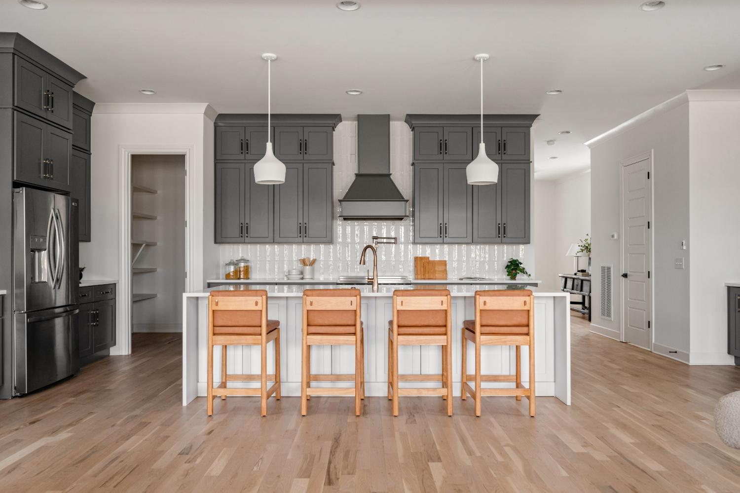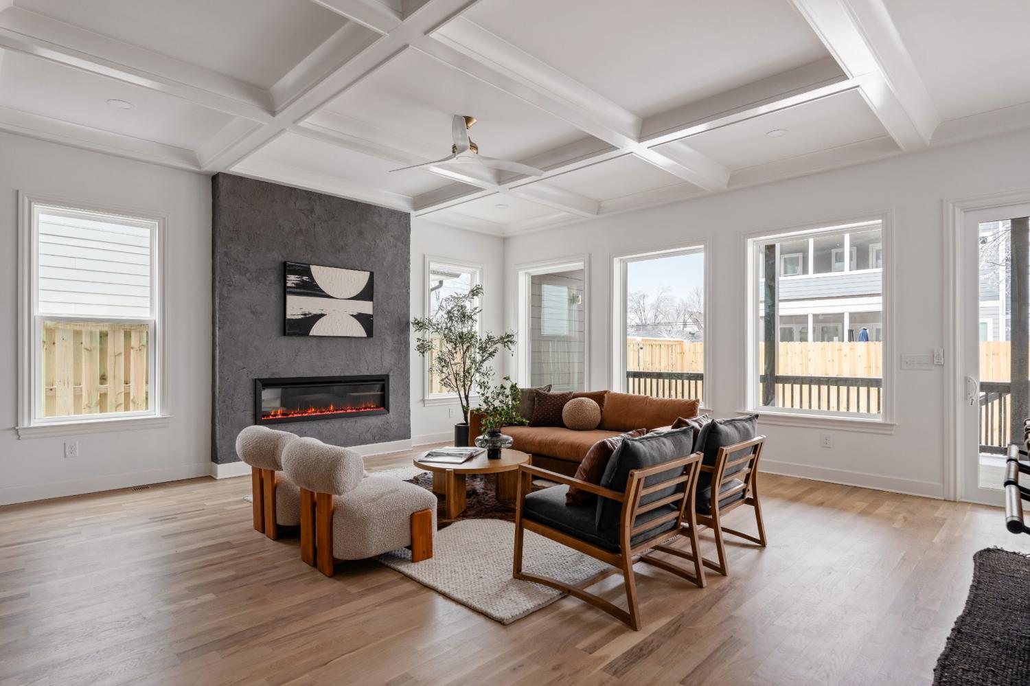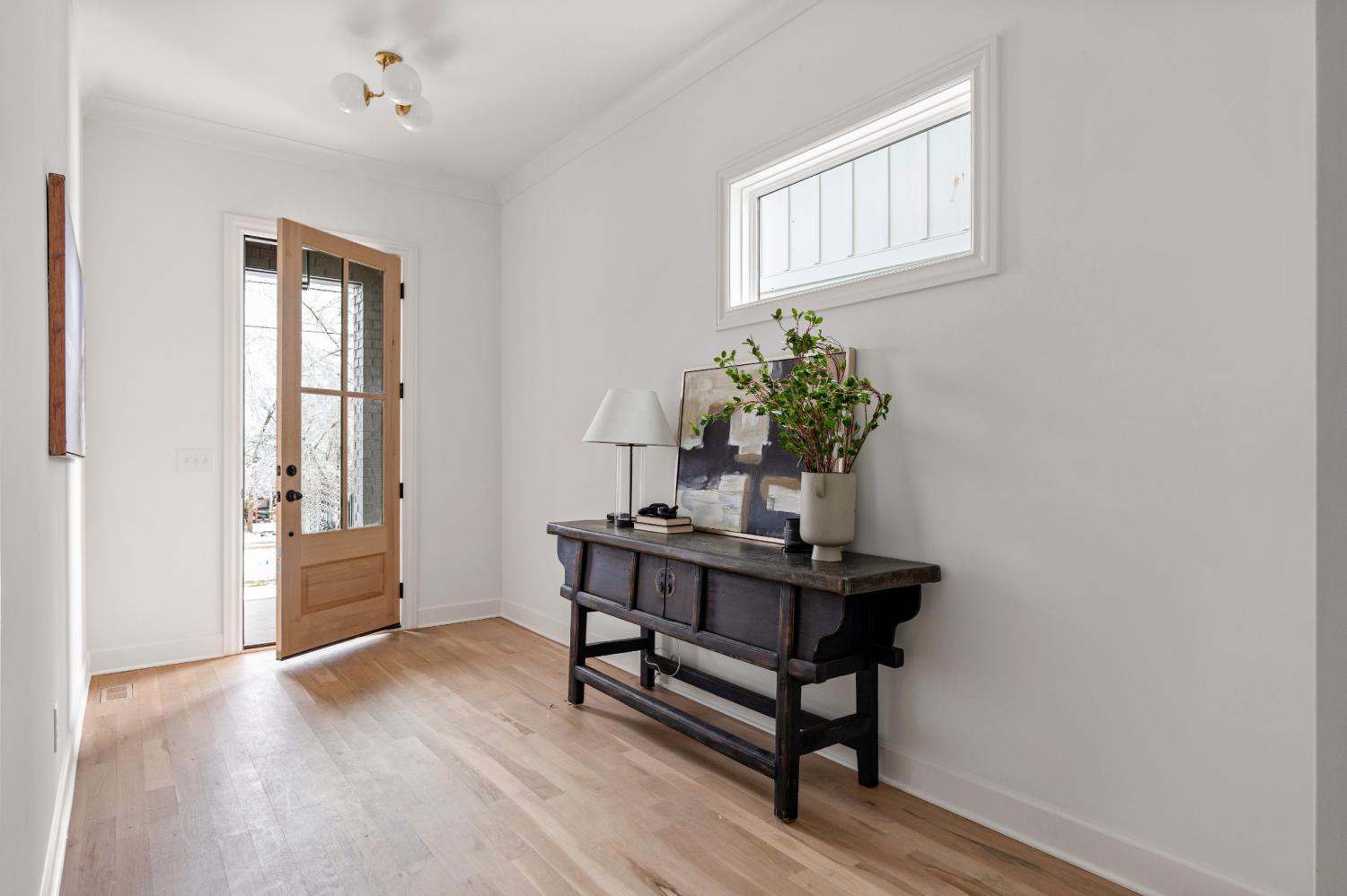A striking black exterior sets a confident tone for this thoughtfully designed new construction home, offering a quiet contrast to the warmth and restraint found inside. The interiors feel composed and intentional, with vaulted ceilings and wide-plank white oak floors that bring softness and balance to the modern architecture. Natural light moves easily through the main living spaces, creating an inviting rhythm between the kitchen, dining, and living areas. The kitchen is both refined and functional, featuring generous prep space, a built-in wet bar, and an intuitive layout that supports daily life as comfortably as it does gathering. From the main living area, doors open to a covered porch and a fully fenced backyard, providing a surprising amount of outdoor space and a sense of privacy that feels rare in this setting. The yard offers flexibility for entertaining, play, gardening, or quiet evenings outdoors, allowing the exterior spaces to function as a true extension of the home. Upstairs, private bedroom suites are thoughtfully separated to create a sense of retreat, while a versatile bonus space allows room to adapt for work, media, fitness, or leisure. Storage is well considered throughout, and a two-car garage adds ease and practicality without disrupting the home’s flow. The design choices throughout prioritize longevity and livability, blending clean lines with warmth and texture rather than leaning into trend-driven finishes. Located near East Nashville’s dining scene, greenways, and neighborhood amenities, and zoned for Lockeland Elementary School, the home offers a balanced lifestyle with access to both community and nature. This residence brings together strong architectural presence, carefully considered interiors, and generous indoor and outdoor living, offering a composed and distinctive opportunity for modern living.