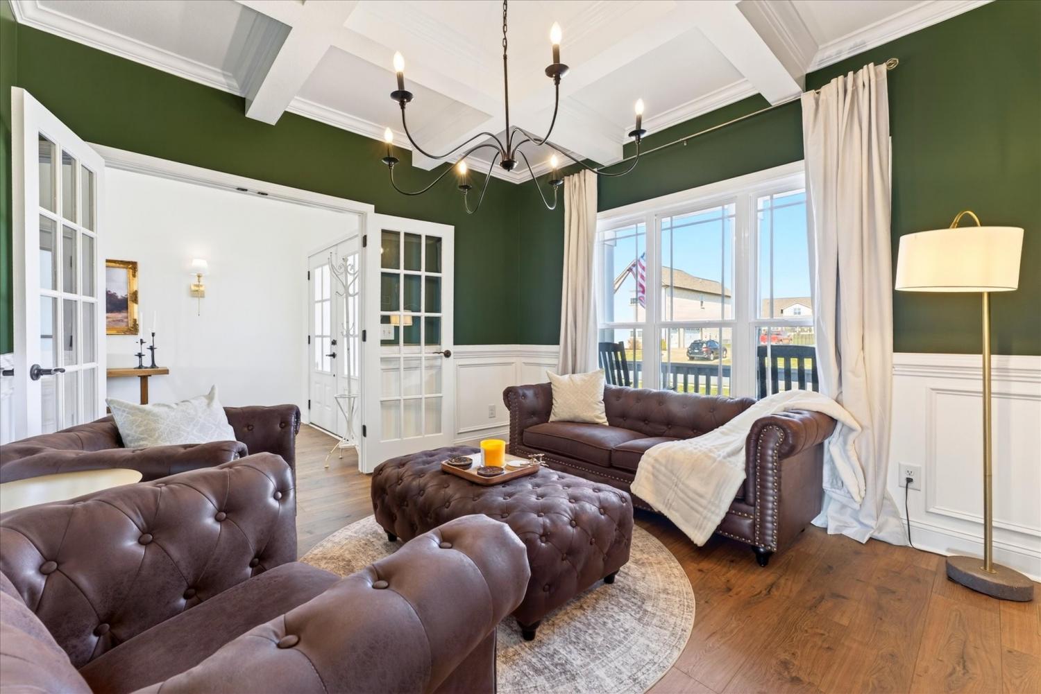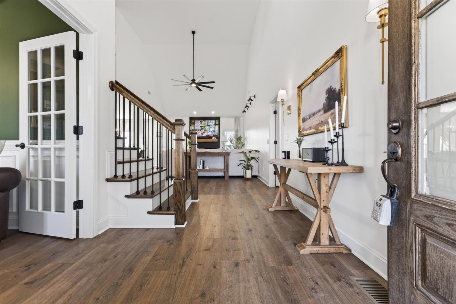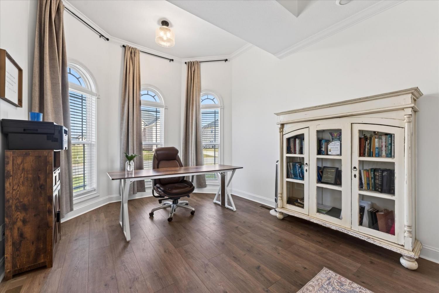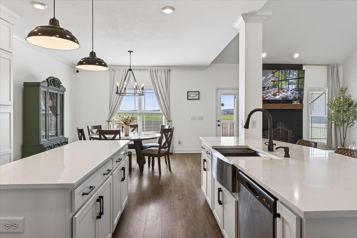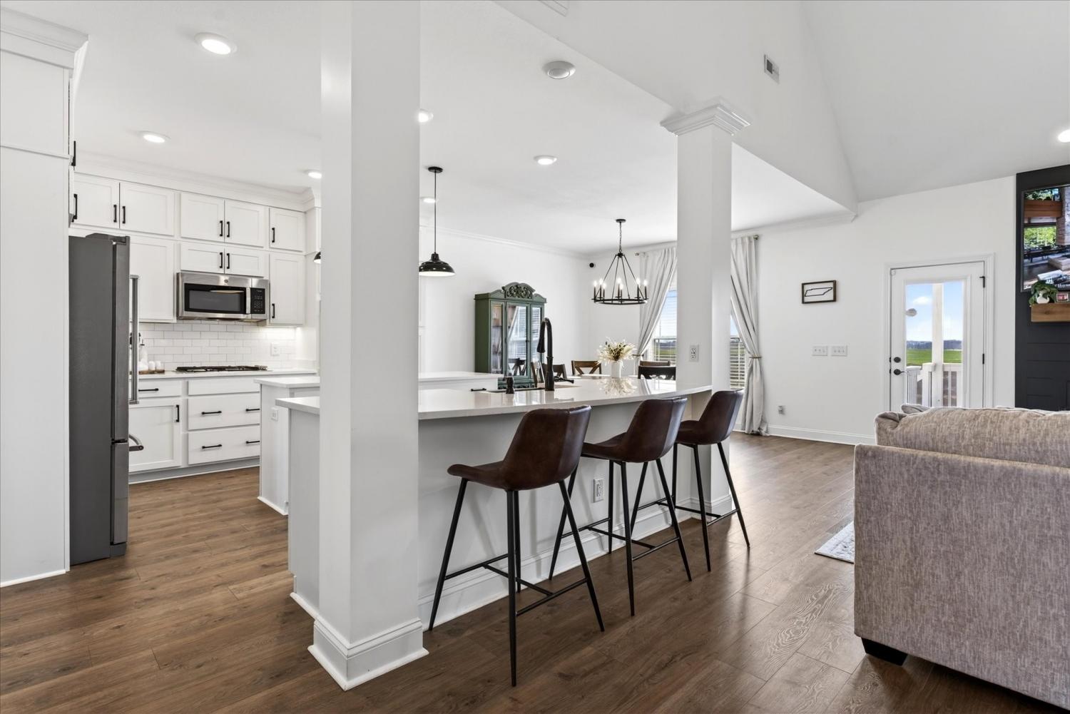 Elegant all-brick home with soaring ceilings, rich wood-tone floors, and designer finishes throughout! Complete with a chef’s kitchen featuring double ovens, an oversized island, soft close custom cabinetry with under-cabinet lighting. The stunning owner’s suite includes a fireplace, sitting area, and spa bath. This home offers peaceful views with no backyard neighbors and beautifully manicured landscaping, all in a prime location close to dining, shopping, Ft. Campbell, and I-24.