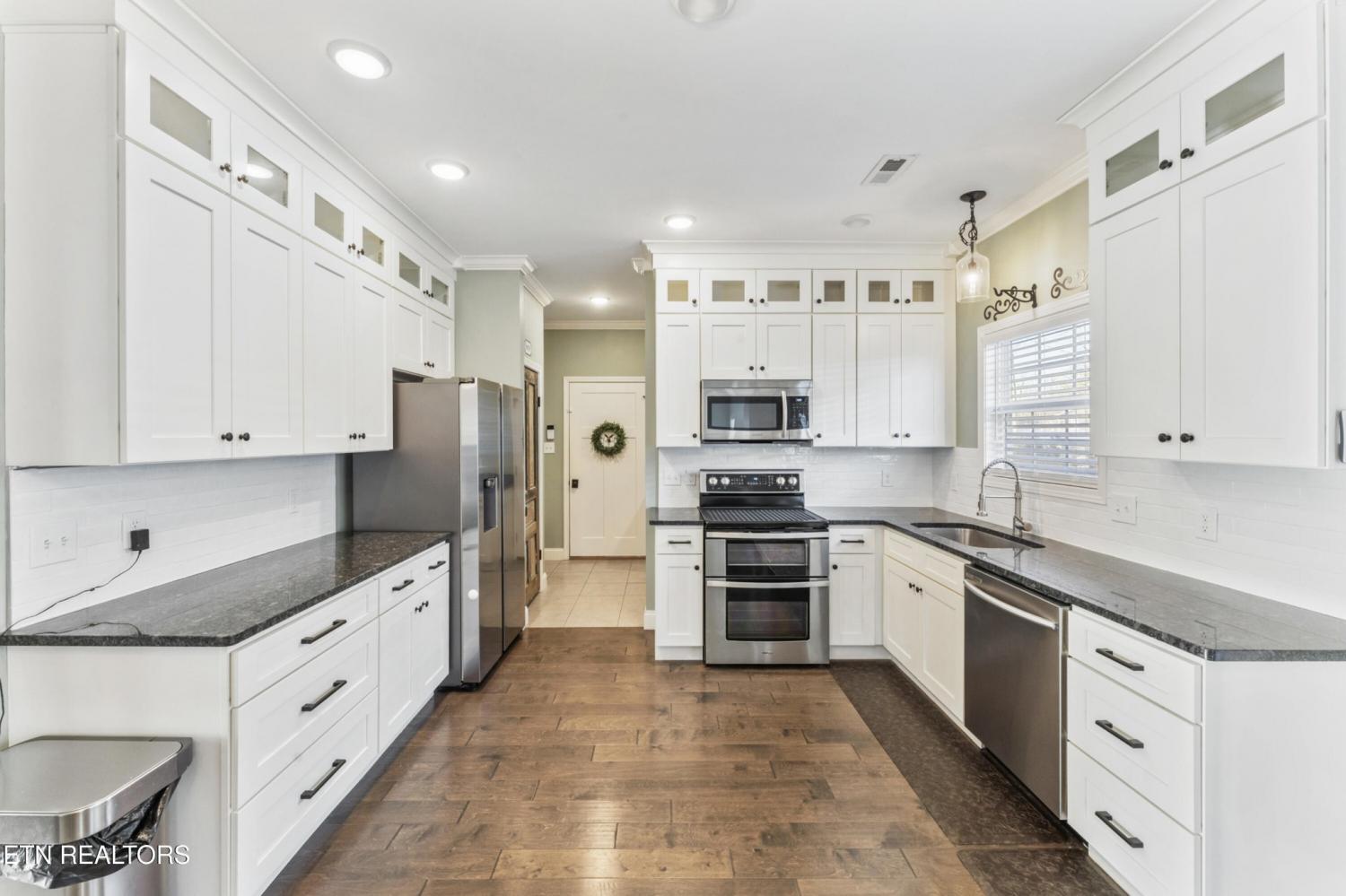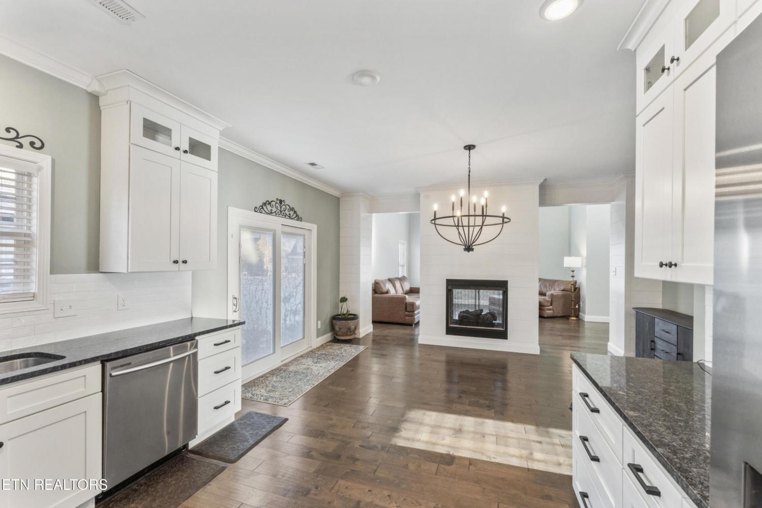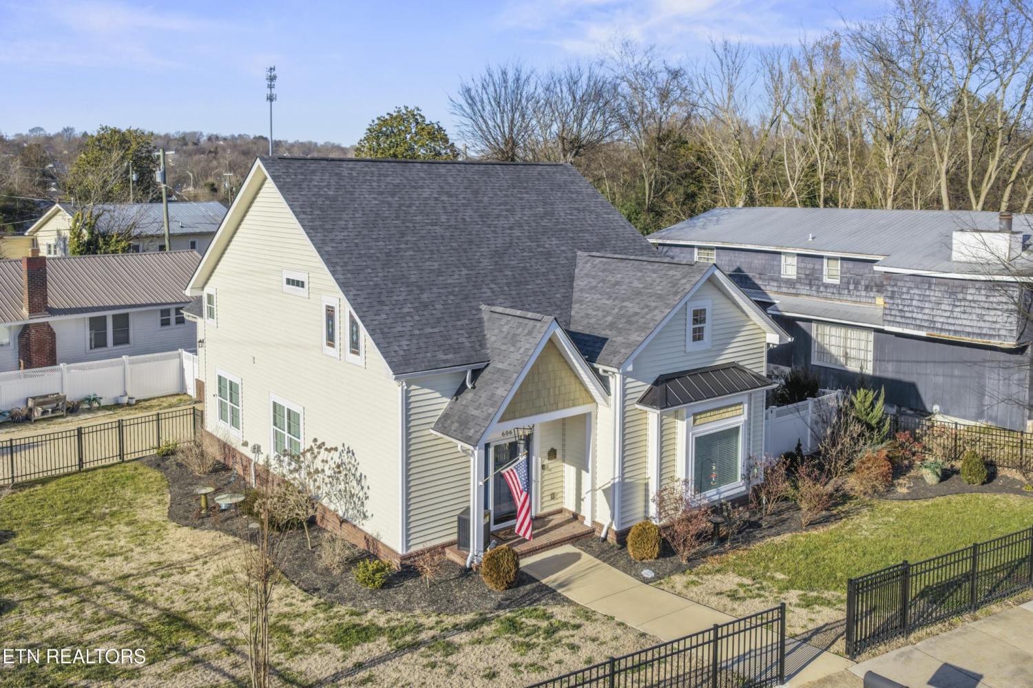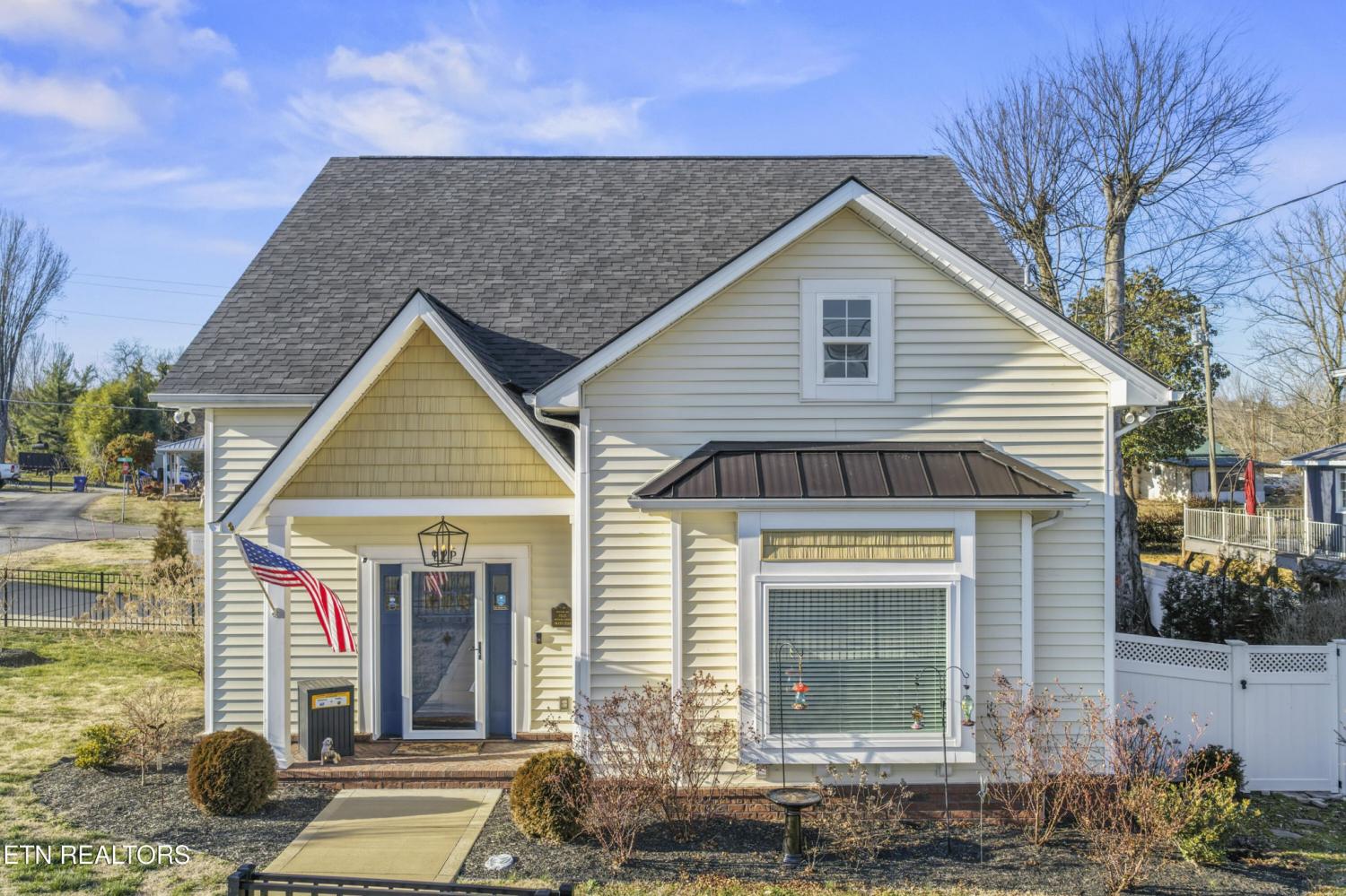 Welcome to 606 Eagle Bend Rd — a beautifully maintained Craftsman-style home built in 2020 and perfectly situated on a corner lot across from the Clinch River in Clinton. This 3-bedroom, 2-bath home with a loft offers timeless design, modern comfort, and thoughtful upgrades throughout. Step inside to an open floor plan filled with natural light, cathedral ceilings, and a striking double-sided glass gas log fireplace that anchors the main living spaces. The staircase is accented by two stunning stained glass windows above, creating a unique focal point and filling the space with colorful natural light. The kitchen features granite countertops, stainless steel appliances (all convey), a pantry, and a special touch of history — the pantry door is original to the home built on this site in 1930. The main level offers two bedrooms, one full bathroom, and a convenient laundry area, along with a mudroom off the two-car garage for everyday functionality. Upstairs, the primary suite provides a private retreat with an en-suite bath, double vanity, and a luxury walk-in shower with dual shower heads, plus additional storage and loft space. Recent updates include a freshly painted exterior completed approximately four months ago, a mostly repainted interior, whole-house blinds, a new picture front window, and a new sliding glass door leading to the backyard. Outdoor living shines with a covered front porch, black aluminum fencing in the front, and a fully fenced backyard with new vinyl fencing—perfect for pets, play, or entertaining. Set on approximately .20 acres, this home combines Southern Living-inspired design, modern efficiency, and a peaceful setting with river views nearby. A rare blend of character, comfort, and location—this one truly stands out.