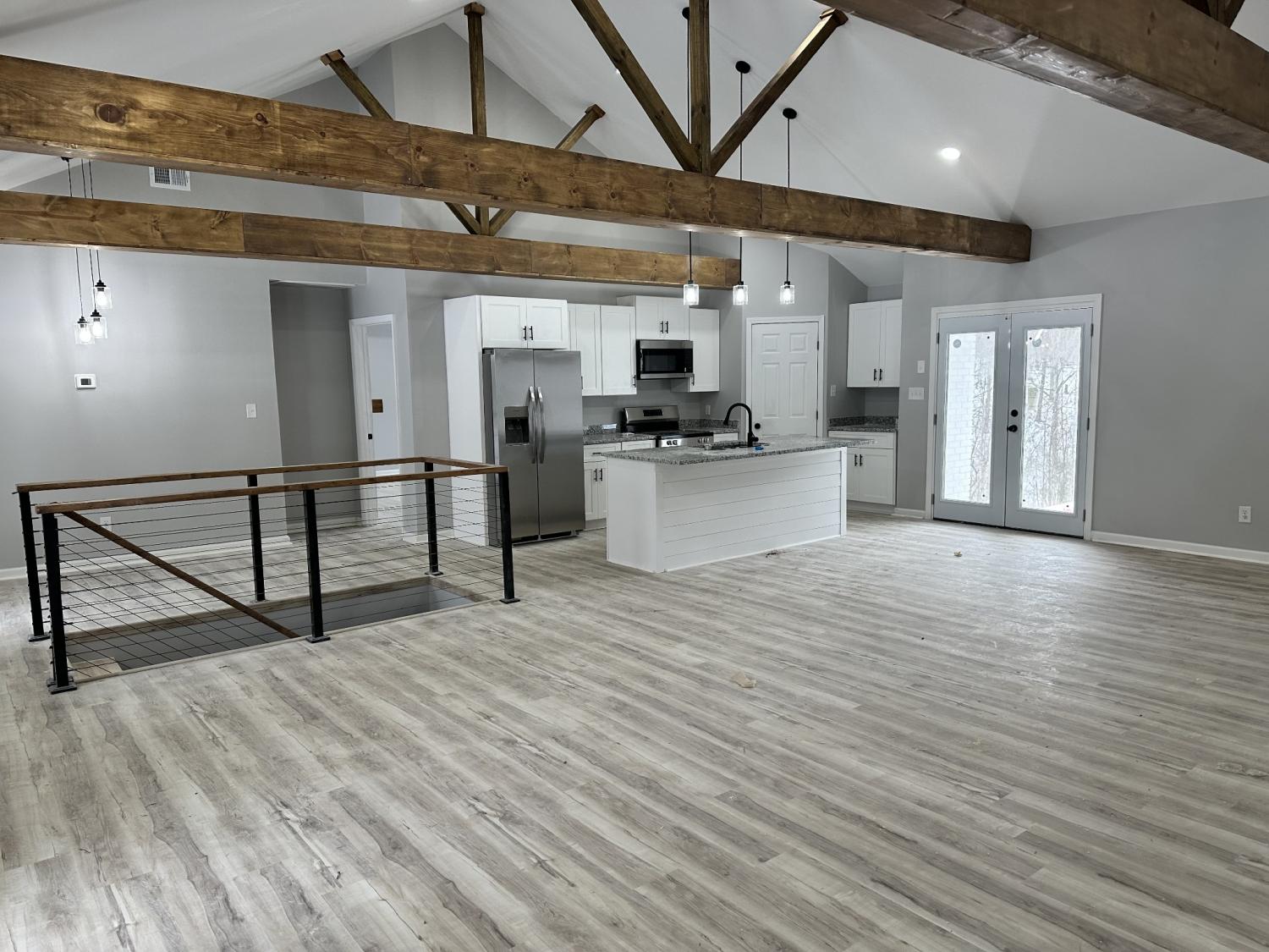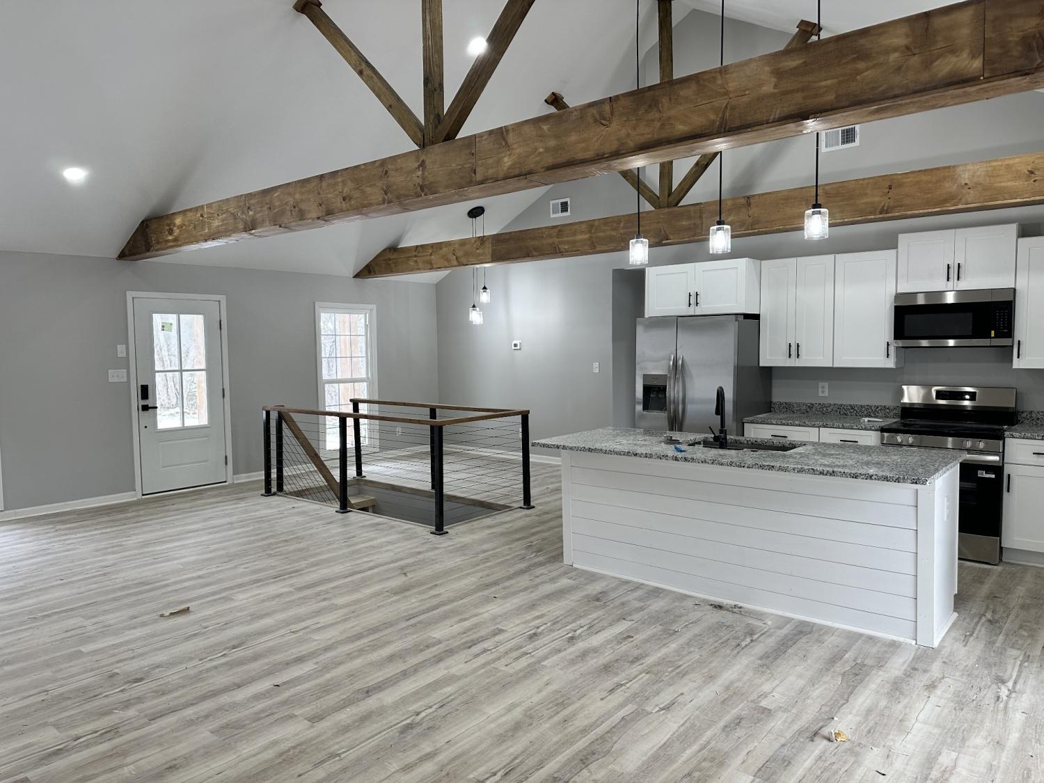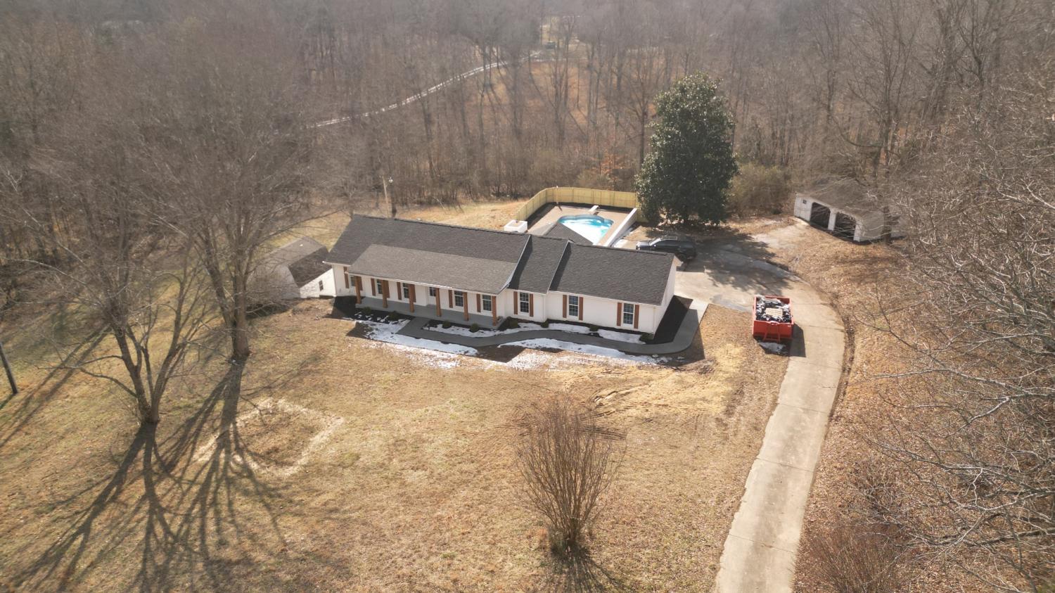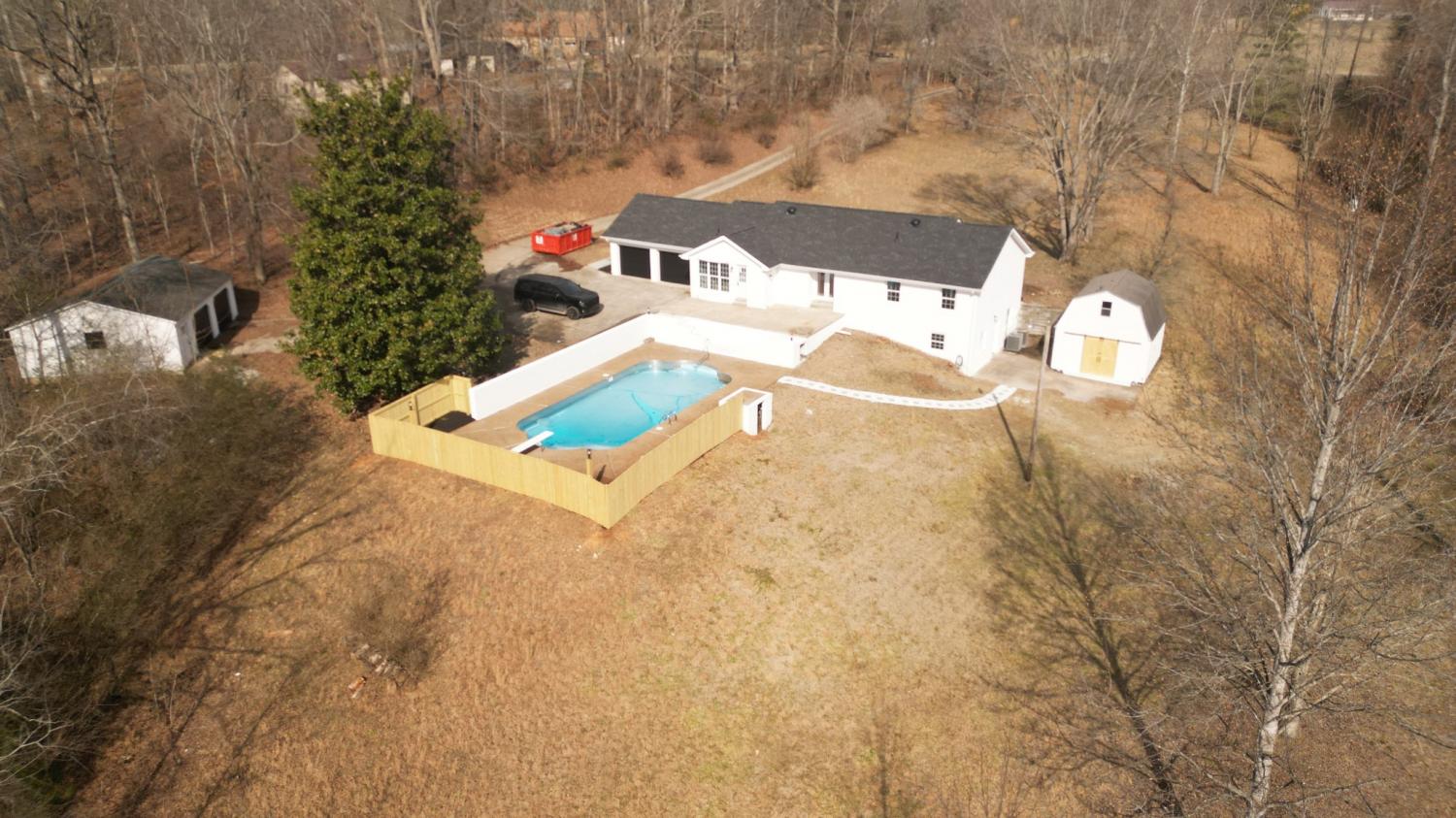 ***PROFESSIONAL PHOTOGRAPHY COMING SOON*** | This fully renovated 4-bedroom, 3-bath luxury estate sits on 4.5 private acres just minutes from Clarksville and has been taken down to the studs with a completely new custom floor plan. The open-concept main living area features soaring ceilings with wrapped beams, LED recessed lighting, and an electric fireplace. The kitchen offers granite countertops, stainless steel appliances, a walk-in corner pantry, center island, and modern soft close cabinetry. A dedicated office with oversized windows fills the space with natural light and overlooks the in-ground pool. The main-level primary suite is a private retreat with its own electric fireplace and a spacious en-suite bath. The fully finished basement includes a large rec room with a third electric fireplace, trey ceiling, a bar-ready area with a full bar build-out available as an upgrade, and a built-in finished storm shelter for added peace of mind. Additional highlights include inground pool with brand new pool pump, new HVAC, new roof, new ductwork, new drywall, luxury vinyl plank flooring, tile, and soft modern carpet in select areas, a cedar-wrapped front porch, full concrete driveway, oversized 625 sqft attached 2-car garage, and a 720 sqft finished detached heated and cooled 2-car garage/shop with power. Every detail has been carefully curated for luxury, comfort, and privacy.