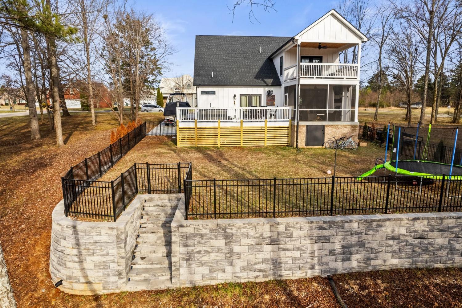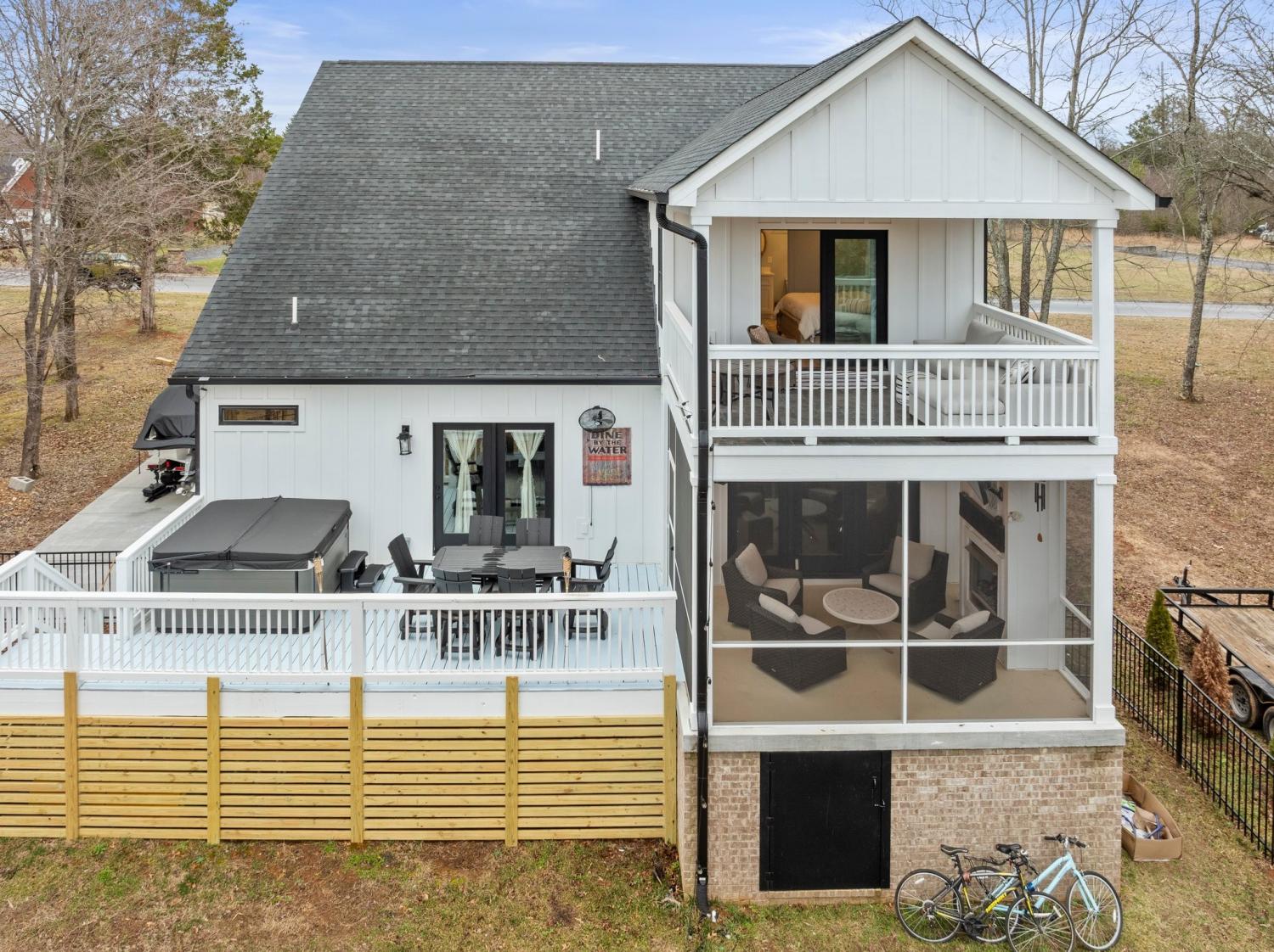 Welcome to Cypress Point! Lake Front Living! 2nd FLOOR (First 10 pictures above): WHAT if these 3 upstairs bedrooms were what your home offered for your children, parents, friends, or even yourself? You could step out on the covered balcony from the blue bedroom for morning coffee or the setting of the evening sun. Oh and the added bonus of an upstairs living room/rec room (13x18 sq ft), or whatever you need it for! The upstairs is a retreat with two full baths, 3 spacious bedrooms, walk-in closets, extra closets and a living room/rec room! Add a kitchenette and it is self-contained with 1412 sq ft! I think they would love it! 1st FLOOR: Step inside to a beautiful foyer that opens into open concept living designed for relaxation and entertaining! The first floor features a screened-in back porch with a gas fireplace perfect for cozy evenings. Adjacent is the open deck perfect for grilling, dinner, soaking in the hot tub and outdoor entertaining. The primary suite is located on the first level and offers plenty of privacy and opens to the back deck. The main level features the living room with gas fireplace, kitchen, dining room, laundry, half bath and primary suite with full bath. Screened porch, deck, covered porch, fenced in backyard...so much space for outdoor entertaining on Tims Ford Lake! The newly leveled, fenced-in backyard not only enhances your outdoor living experience but also features a newly constructed retaining wall, giving you a secure and beautiful space to play and relax. With easy steps leading from your backyard directly to the lake, pull your boat or wave runner up and walk up to your home! Weekend adventures are just a stone's throw away—whether it's boating, fishing, or simply enjoying nature! Don’t miss your chance to own lakeside living in Cypress Point. Deeded community dock. Seasonal water.