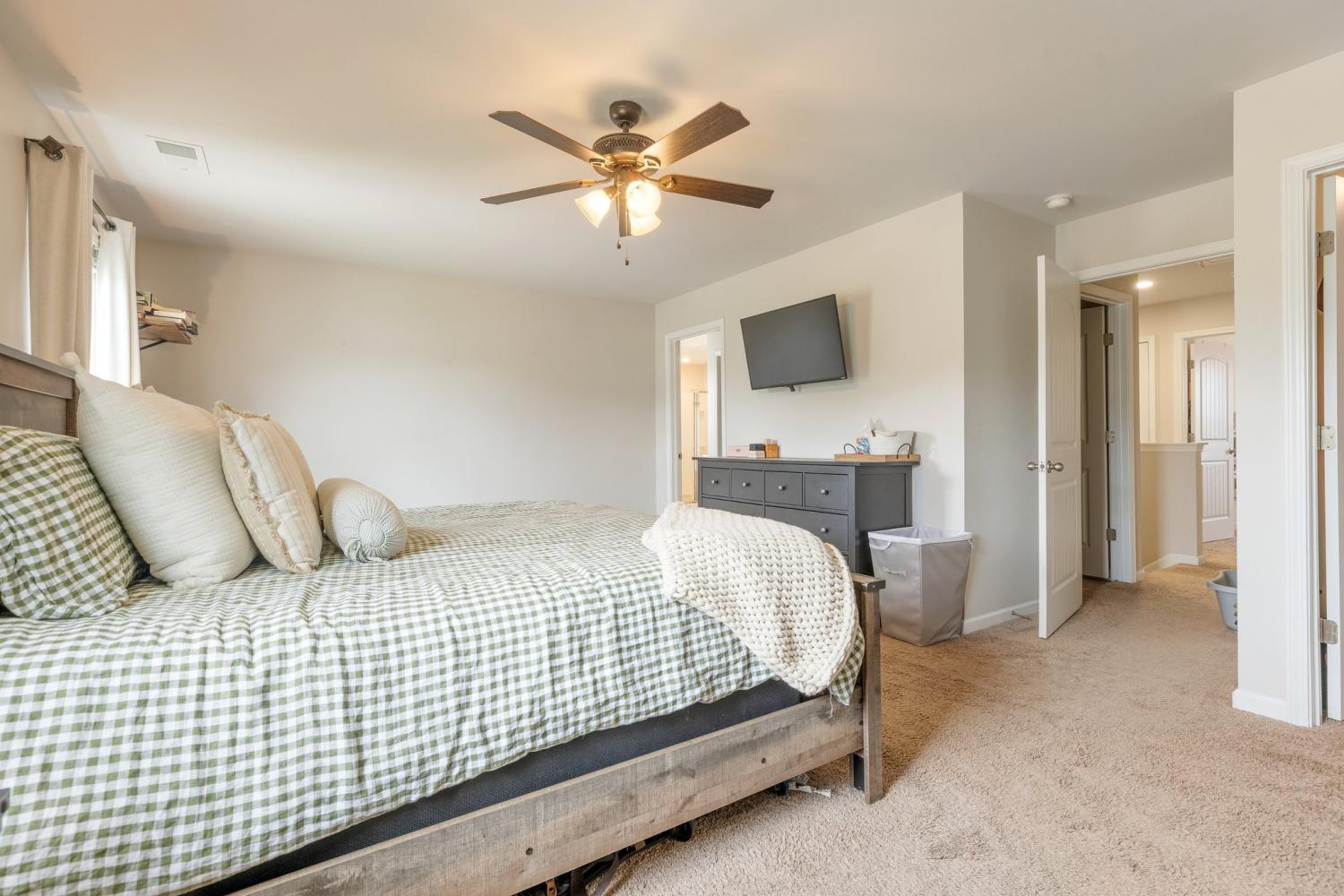 MOVE IN READY! COME SEE THIS GREAT PROPERTY IN COLUMBIA TN! Stunning 5 bed home with modern upgrades and inviting outdoor space! Welcome to your dream home in Highlands at Bear Creek! This beautifully updated residence boasts a range of modern features and amenities. Step into a spacious foyer that leads to a large living great room area adorned with LVT flooring, creating a warm and inviting atmosphere in lots of natural light. The heart of the home is the large eat-in kitchen, featuring gorgeous granite countertops and stainless steel appliances. A large island is the centerpiece of the kitchen and has barstool seating in addition to ample room for a large eat-in dining area. Enjoy easy access to the extended deck, ideal for entertaining off the kitchen, while overlooking the fenced yard, perfect for pets and outdoor fun. Great views of the rolling hills and Tennessee sunrises and sunsets! This home includes a convenient laundry room with a utility sink and Samsung washer and dryer that will remain with the home. The primary suite is a true retreat, offering a walk in closet and bath / shower separate areas with double vanities. All bedrooms are upstairs leaving the main floor perfect for entertaining. Additional features include a full bathroom in the basement, a charming half bath off the foyer, and ample storage throughout (so much storage!). The walk-out fully finished basement offers flexibility for guests or recreation, while barn doors add a touch of farmhouse charm! A full bedroom or flex space is also in the basement with extra closets and storage. Enjoy the convenience of a dog door, pantry and newer HVAC (age 2019), along with a roof that has been recently replaced on the back half (2023). With stunning Tennessee hills visible from the upper-deck level, this home is truly a gem! SPRING HILL H.S. ZONING. A must see!