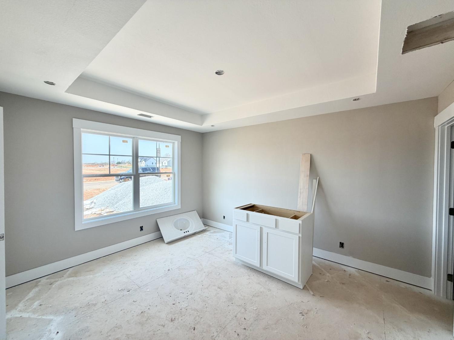 BEAUTIFUL RANCH HOME IN CUL-DE-SAC with TREE-LINED BACKYARD! ~ Looking for a sleek & modern Ranch home, near Ft. Campbell and I-24, UNDER $300,000, with 4% of Purchase Price in Seller Concessions? On top of that...NO HOA's! HERE IT IS! ~ Introducing you to ECHO RIDGE SUBDIVISION! This beautiful Carter Floor Plan features an open concept design with 3 large bedrooms and 2 full bathrooms. You will love the extra-large living space, natural light, and gorgeous, high-vaulted ceilings that open up into your kitchen. Chef's kitchen features stainless-steel appliances, custom cabinets and beautiful granite counter tops. Luxury plank flooring in main living area and kitchen. Carpet in all bedrooms. Primary ensuite features high trey ceilings, double vanity, walk-in shower and large walk-in closet. Covered front-porch and deck with Tree-Lined backyard...perfect for unwinding after a long day! Sodded yard. Epoxy garage. Welcome home to the beautiful, ECHO RIDGE Subdivision! EXAMPLE FINISHED PHOTOS SHOWN HERE. Luntz Construction LLC.