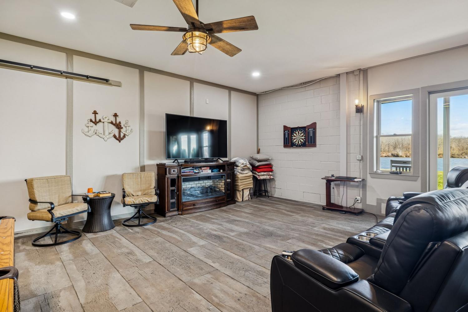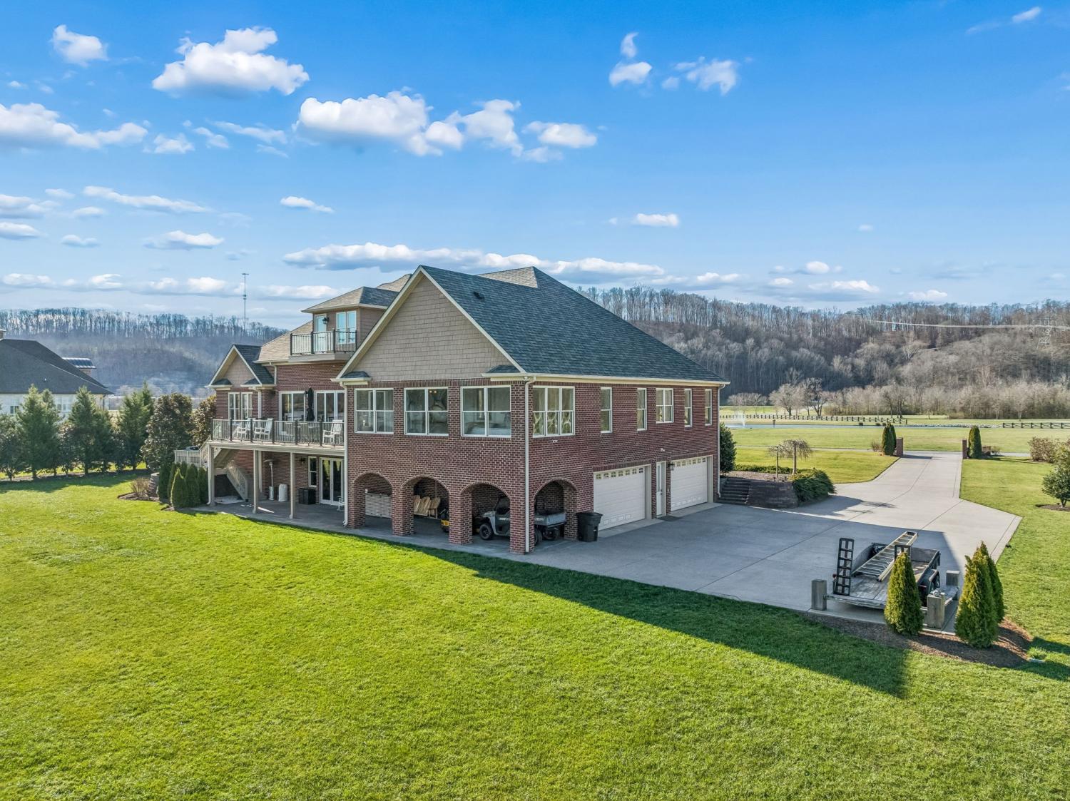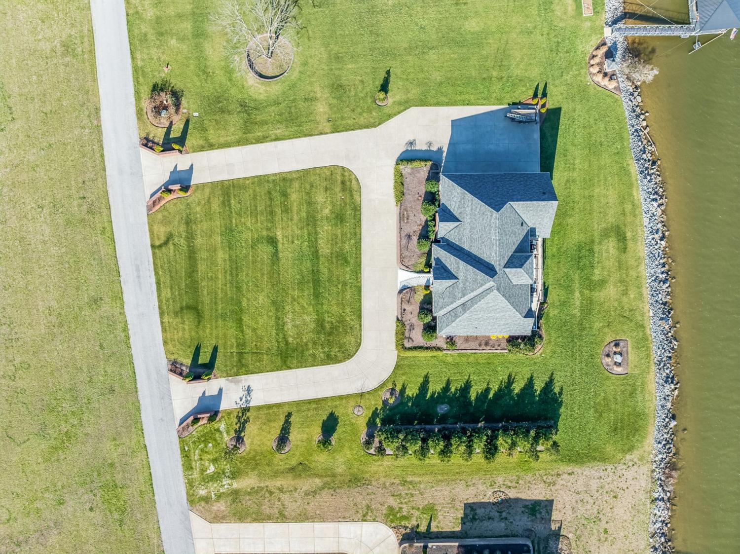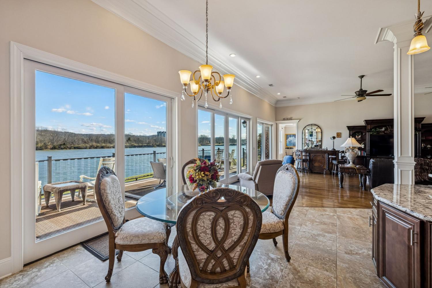 This exceptional custom riverfront estate offers timeless architecture, refined craftsmanship, & breathtaking water views from nearly every room. Set on a manicured lot w direct river access, the home features a stately brick & stone exterior, expansive patios & balconies, & a private covered dock perfect for boating, entertaining, or peaceful sunset evenings. The grand foyer welcomes you w arched double doors, gleaming hardwood floors, & elegant millwork throughout. The home seamlessly blends formal & casual living w a private office, elegant dining room, & an open-concept living area designed for both comfort & entertaining. The gourmet kitchen is a showpiece w custom cabinetry, premium appliances, oversized island, & intricate detailing, flowing effortlessly into the main living spaces. The primary suite is a true retreat, offering spa-inspired finishes, a luxurious bath, & a custom walk-in closet. Additional bedrooms & living areas provide ample space for family and guests. A dedicated fitness room, private elevator, & thoughtfully designed storage add both convenience & versatility. Designed to embrace the waterfront setting, the home’s sunroom w hot tub overlooks sweeping river views, creating a year-round oasis. Multiple outdoor living spaces, mature landscaping, and gently sloping grounds lead to the dock, making this property ideal for entertaining or quiet relaxation. Some of the other great features are a steel front door, Monogram kitchen appliances, Sub Zero Fridge, 8 person indoor jacuzzi, 4 person sauna, wood exterior ceilings, boat dock WITH LIFT, 8' interior doors, giant stocked pond with light/water fountain~4 BEDROOM SEPTIC~A rare opportunity to own a distinguished riverfront estate offering privacy, elegance, & unmatched views—this is luxury living at its finest and only 15 minutes from Briley Parkway and 25 minutes from Downtown Nashville and by BOAT only 15 minutes to my favorite BLUE MOON CAFE