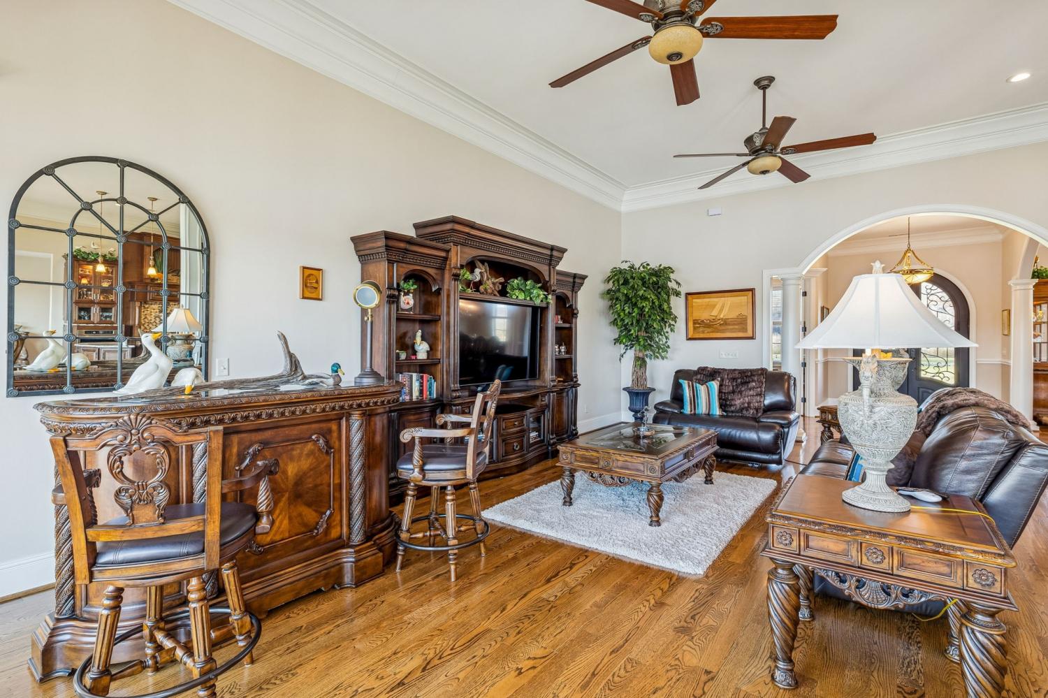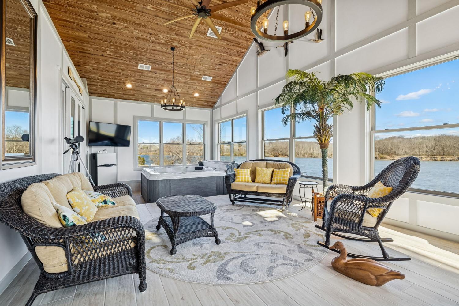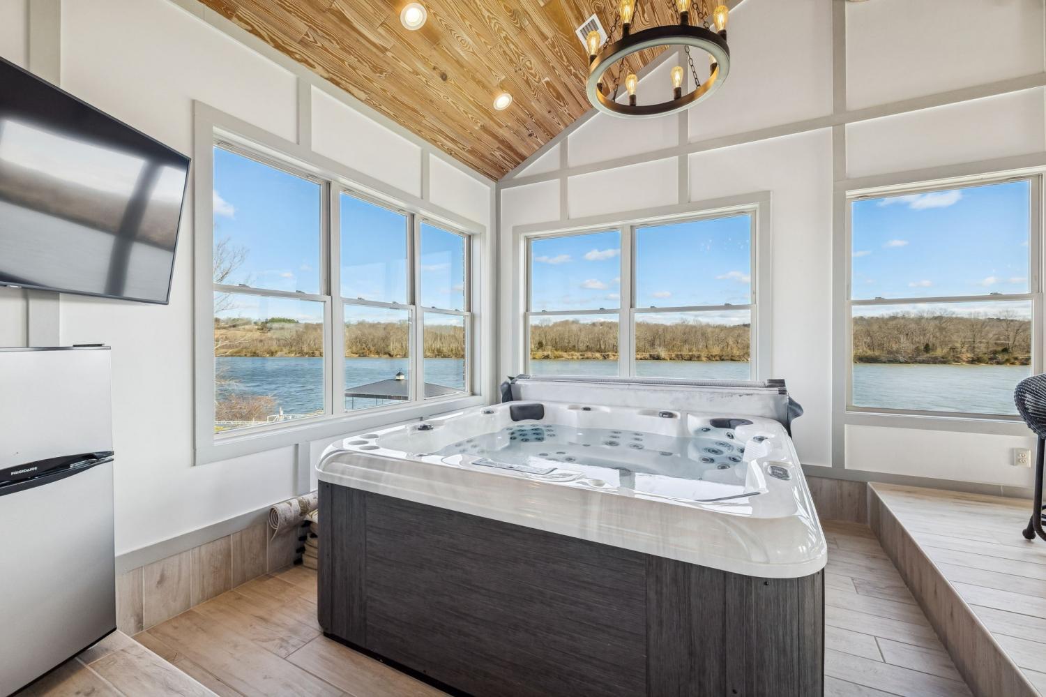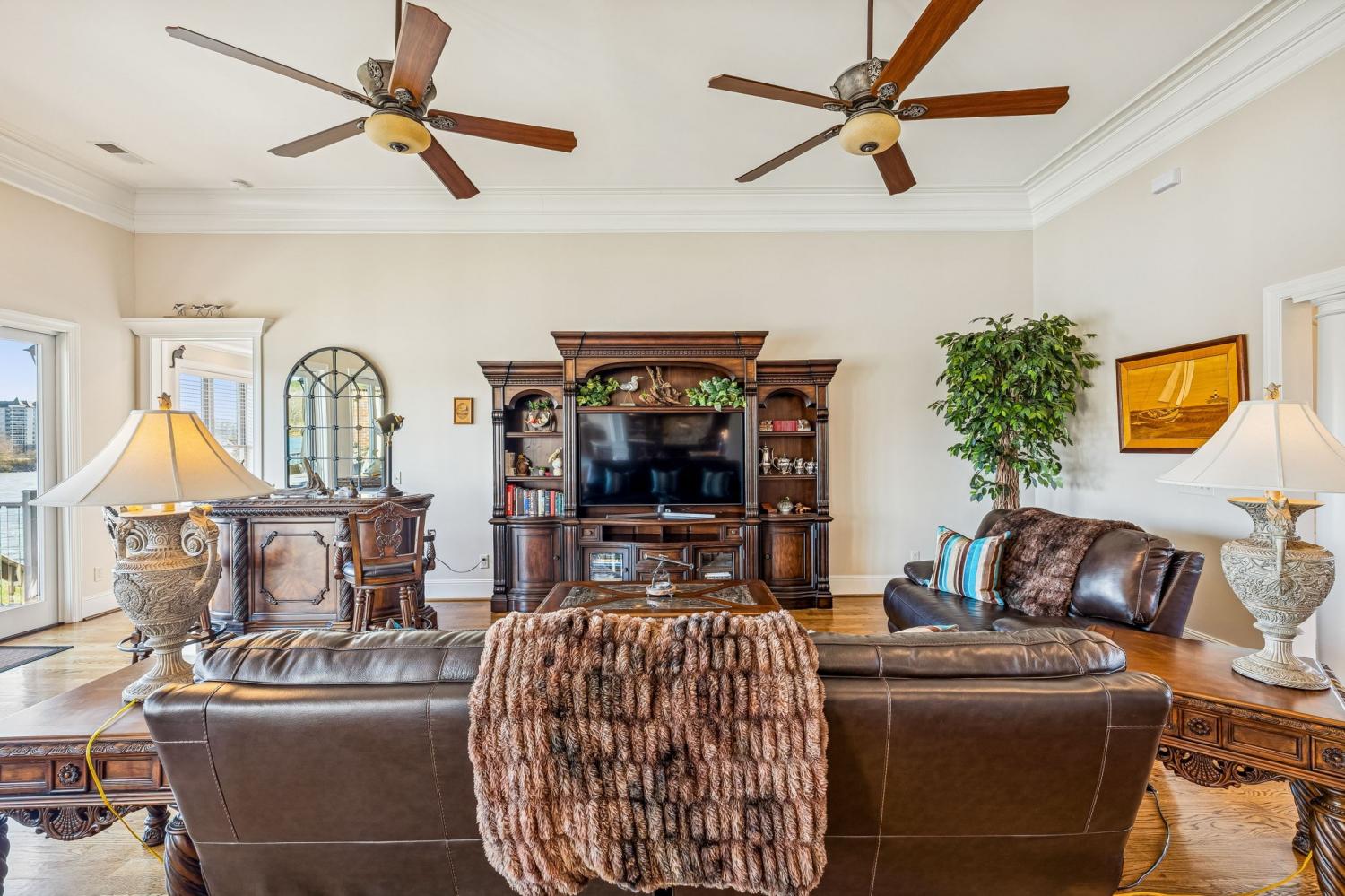 This exceptional custom riverfront estate offers timeless architecture, refined craftsmanship, & breathtaking water views from nearly every room. Set on a manicured lot w direct river access, the home features a stately brick & stone exterior, expansive patios & balconies, & a private covered dock perfect for boating, entertaining, or peaceful sunset evenings. The grand foyer welcomes you w arched double doors, gleaming hardwood floors, & elegant millwork throughout. The home seamlessly blends formal & casual living w a private office, elegant dining room, & an open-concept living area designed for both comfort & entertaining. The gourmet kitchen is a showpiece w custom cabinetry, premium appliances, oversized island, & intricate detailing, flowing effortlessly into the main living spaces. The primary suite is a true retreat, offering spa-inspired finishes, a luxurious bath, & a custom walk-in closet. Additional bedrooms & living areas provide ample space for family and guests. A dedicated fitness room, private elevator, & thoughtfully designed storage add both convenience & versatility. Designed to embrace the waterfront setting, the home’s sunroom w hot tub overlooks sweeping river views, creating a year-round oasis. Multiple outdoor living spaces, mature landscaping, and gently sloping grounds lead to the dock, making this property ideal for entertaining or quiet relaxation. Some of the other great features are a steel front door, Monogram kitchen appliances, Sub Zero Fridge, 8 person indoor jacuzzi, 4 person sauna, wood exterior ceilings, boat dock WITH LIFT, 8' interior doors, giant stocked pond with light/water fountain~4 BEDROOM SEPTIC~A rare opportunity to own a distinguished riverfront estate offering privacy, elegance, & unmatched views—this is luxury living at its finest and only 15 minutes from Briley Parkway and 25 minutes from Downtown Nashville and by BOAT only 15 minutes to my favorite BLUE MOON CAFE