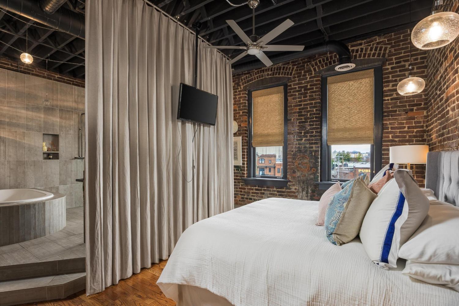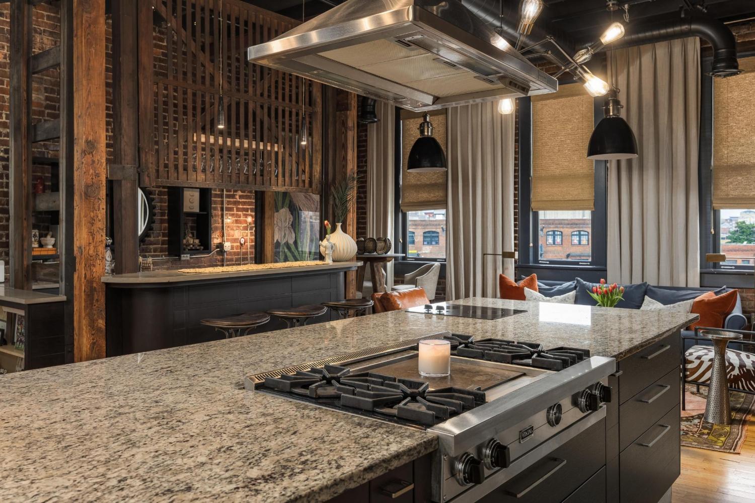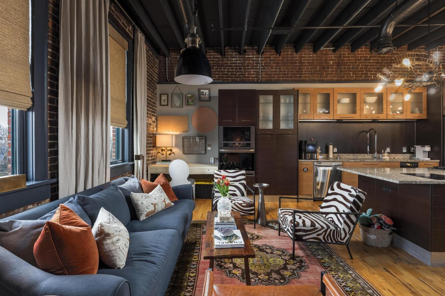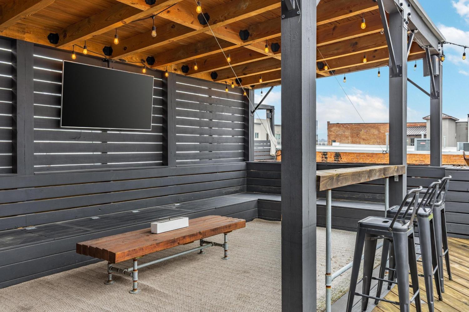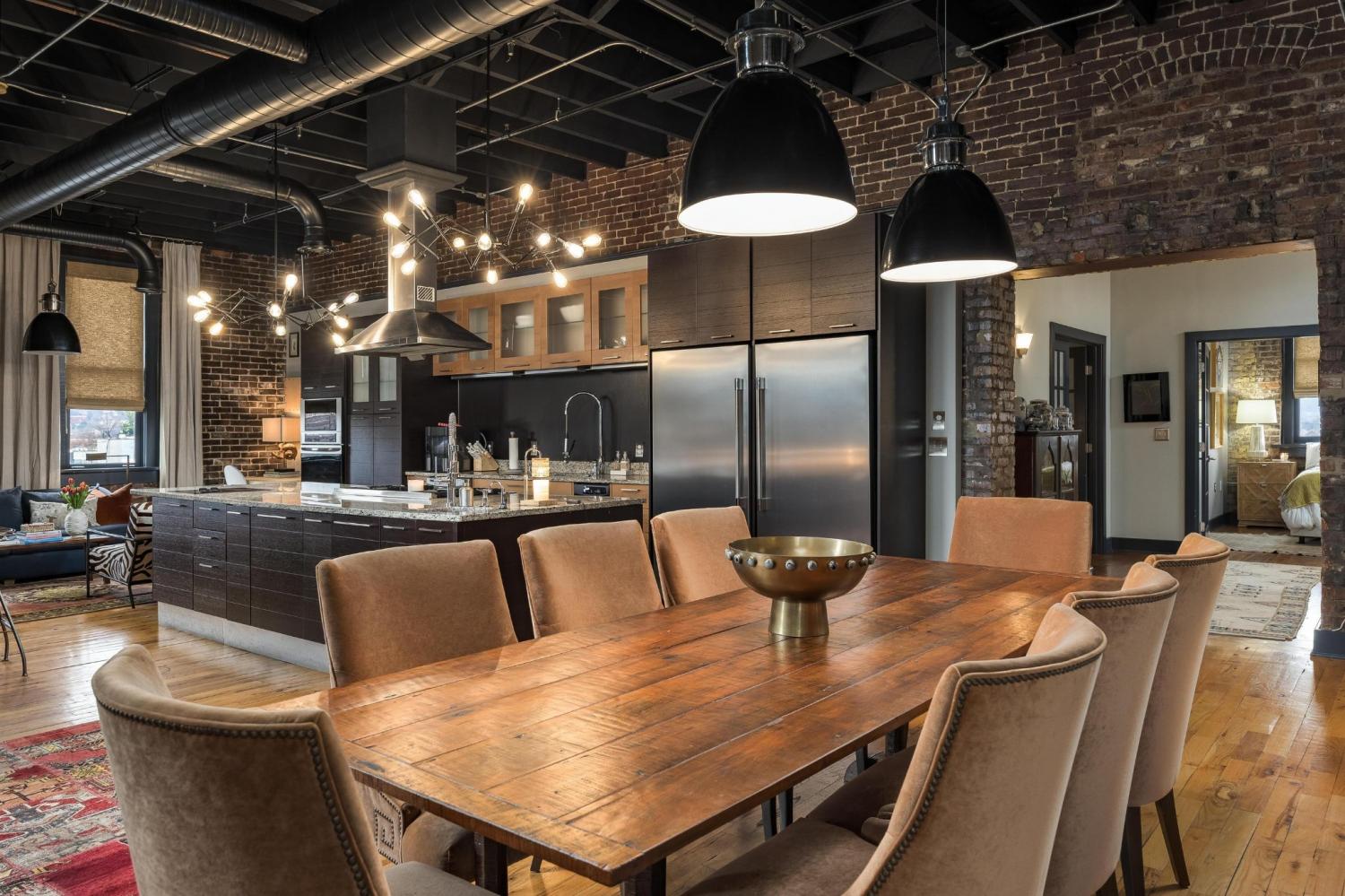 Stunning 3BR/2BA Loft in Sought-After Lofts on Main | 3rd Floor | Rooftop Living Experience upscale urban living in this beautifully designed 3 bedroom, 2 bath loft located on the third floor of Lofts on Main. This spacious residence blends historic character with modern finishes, featuring exposed brick walls, soaring ceilings, and an open-concept layout ideal for both entertaining and everyday living. The stylish kitchen flows seamlessly into the living and dining areas and is outfitted with sleek cabinetry, stainless steel appliances, and striking statement lighting, creating a true loft aesthetic. Generously sized bedrooms offer excellent natural light, while two well-appointed bathrooms provide comfort and functionality. One of the standout features of this home is the rooftop retreat, offering upscale city views and an exceptional space for entertaining. The rooftop includes an outdoor kitchen, multiple seating areas, and ambient lighting—perfect for hosting guests, unwinding at sunset, or enjoying vibrant downtown evenings. The prime third-floor location enhances privacy while keeping you connected to the energy of the city. Located in the heart of downtown, this loft offers walkable access to dining, shopping, and entertainment, all while enjoying the charm and style of a boutique loft community. Urban luxury meets effortless entertaining—this is loft living at its finest.