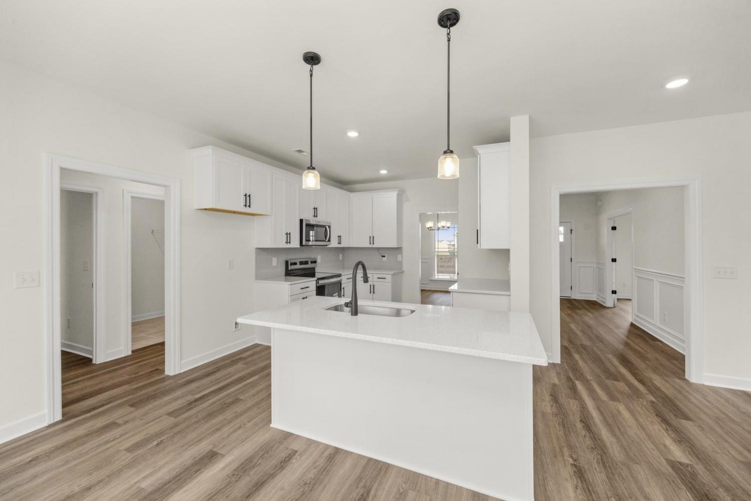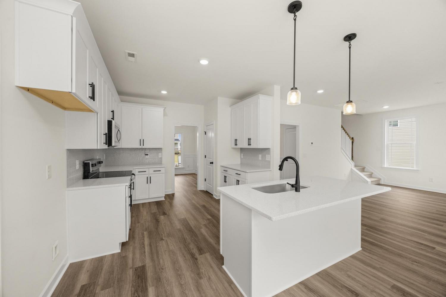 Welcome home to the Lockwood 3, a stunning, move-in-ready home offering over 3,000 square feet of thoughtfully designed living space. The main floor features beautiful luxury vinyl plank flooring and modern matte black fixtures throughout, creating a sleek and cohesive look. You'll find a private home office behind elegant French doors, as well as a guest bedroom and full bath perfect for visitors. The heart of the home is the chef-inspired kitchen, complete with 42" white shaker soft-close cabinets, stainless steel appliances, and an oversized island that overlooks both formal and informal dining areas. Upstairs, the expansive loft provides a flexible second living area, playroom, or additional workspace. The primary suite serves as a true retreat, featuring an upgraded tray ceiling, recessed lighting, and a massive walk-in closet, alongside four additional spacious bedrooms. Step outside to your 10x12 concrete patio and enjoy a large, flat, useable lot. This home perfectly balances style and functionality—be sure to ASK ABOUT OUR SPECIAL BUYER INCENTIVES WHEN YOU USE OUR PREFERRED LENDER AND TITLE COMPANY.
