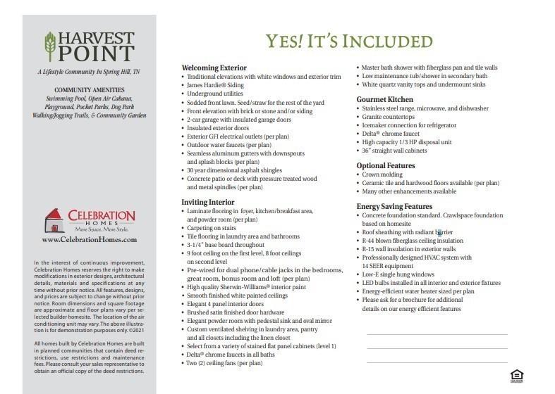 Customize your dream villa in Harvest Point Heights with Celebration Homes. This to-be-built townhome offers a rare opportunity to personalize your space by selecting your home’s finishes at the Celebration Homes Design Center, allowing you to create a look that truly reflects your style. Designed for modern living, this open-concept floor plan is filled with natural light and flows seamlessly from the foyer through the dining area, kitchen, and Great Room—ideal for both everyday living and entertaining. The main-level Primary Suite provides comfort and convenience, featuring a tiled walk-in shower with bench seat, dual vanities, and a spacious walk-in closet. Celebration Homes offers hardwood stair treads leading to the upstairs, where a versatile loft offers the perfect space for a home office or secondary living area, along with two well-appointed bedrooms that share a full bath. Additional storage is plentiful, including a generous 14’ x 9’ unfinished storage room. This home includes an impressive selection of upgrades, such as thoughtfully placed enhanced trim, 42” upgraded soft-close cabinetry, Whirlpool stainless steel appliances, upgraded lighting, upgraded vanities in all bathrooms, and premium plumbing fixtures and hardware throughout. Outside, enjoy the ease of a two-car garage and relax on the concrete patio overlooking scenic common areas and walking trails. Harvest Point Heights residents enjoy access to outstanding community amenities, including a resort-style pool, open-air cabana, playground, dog park, community garden, nearby shops, and miles of walking trails. Don’t miss this opportunity to make a Celebration Home uniquely yours.