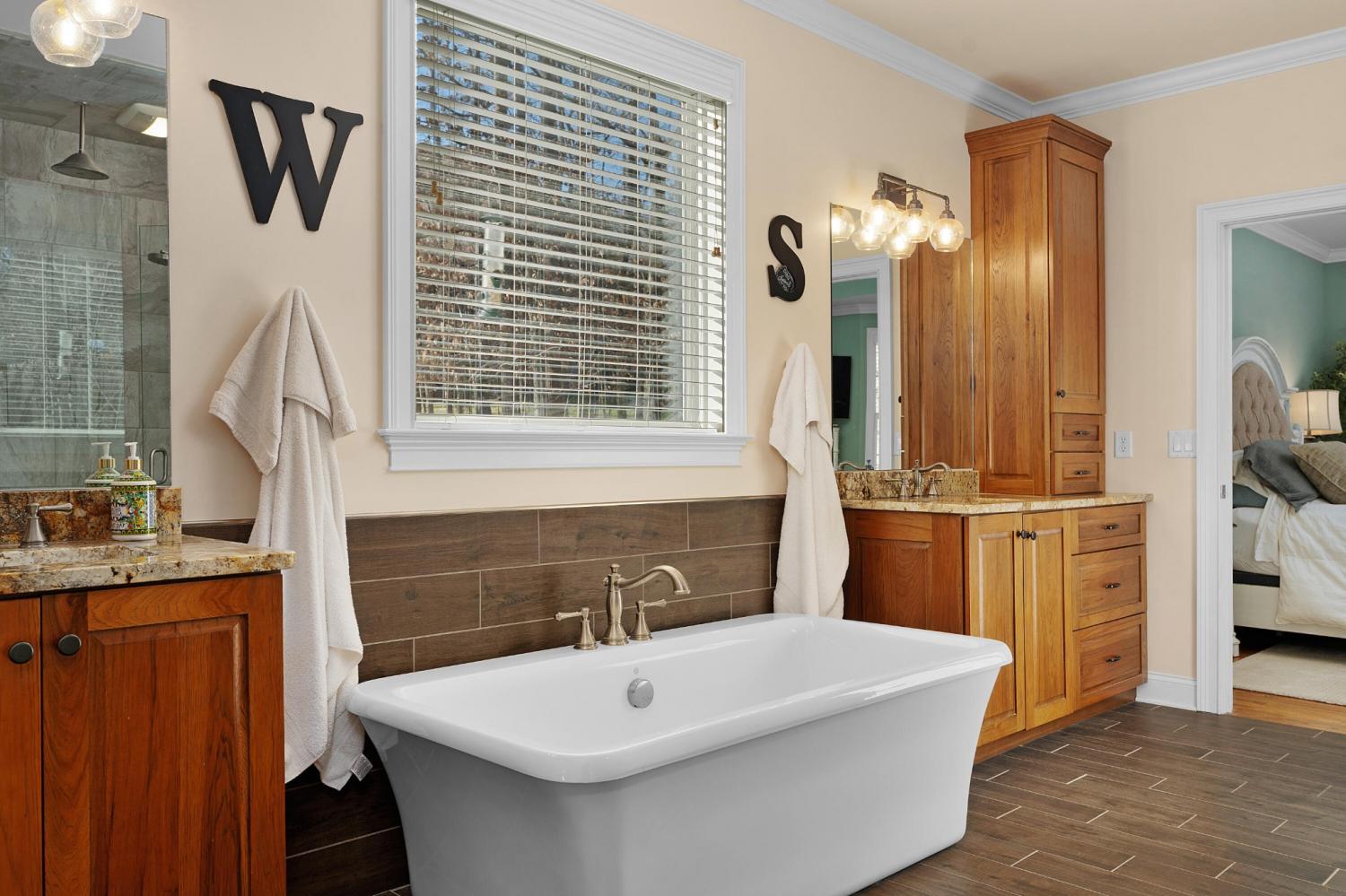 Fantastic opportunity in the desirable Crystal Brook neighborhood just minutes from schools, shopping, restaurants, medical facilities and more! This versatile, 4 bedroom, 3/5 bath home is beautifully positioned at the end of a cul-de-sac on a .75 +/- acre lot. The back is partially wooded for privacy but also has a level yard area with a creek as your natural rear border. The sellers have recently painted the exterior completely changing the look, and the exterior appeal is heightened by the new water features in both front and back. They have also just painted the screened in porch which has a vaulted ceiling & fan and is a favorite spot to enjoy the wooded setting, installed a new irrigation system, and a new 26 KW Generac generator. The inside is equally as impressive as the outside with the hardwoods and tile throughout, specialty ceilings, recessed and decorative lighting, an open floor plan, 3 bedrooms on the main level, a 2-bay garage, and a basement workshop area. Your tour of the main level begins with entry from the covered porch to the dedicated foyer. The foyer has access to the office on the right, the formal dining room on the left and the great room and kitchen beyond. The office has a double door entry, a vaulted ceiling, and a closet and could easily be used as a bedroom if desired. The great room also has a vaulted ceiling, a gas fireplace with built-ins on either side and French doors to the screened in porch which provides a wonderful flow for indoor to outdoor entertaining and everyday living. The kitchen is spacious and has a raised dining bar, granite countertops, tile backsplash, soft-close cabinetry, pull-out drawers, stainless appliances, a pantry and is open to the breakfast room. It is also just steps from the laundry room and garage where you will find two deep bays and a new steel storm shelter.