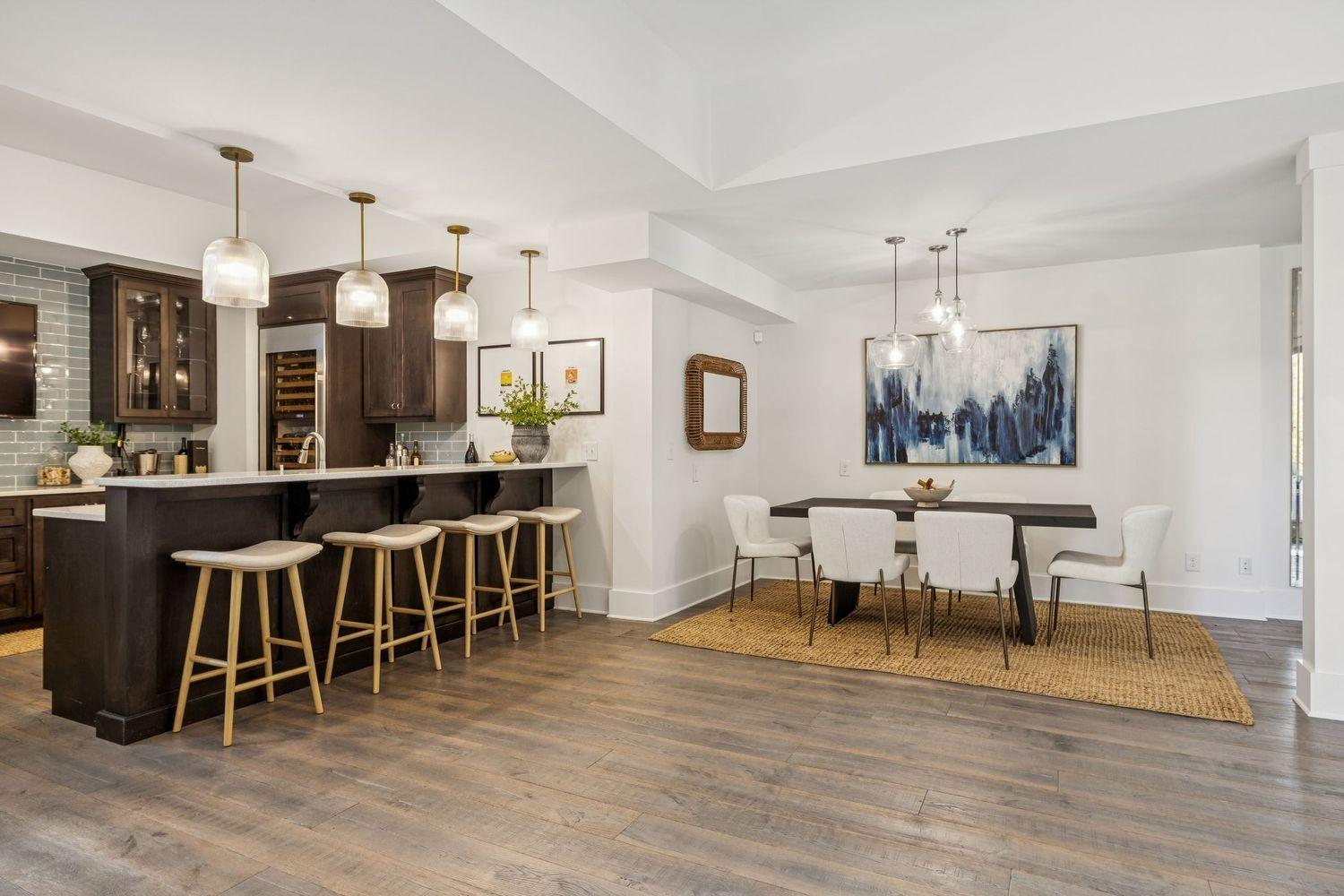 Nestled in one of Brentwood’s most prestigious neighborhoods, this timeless Tudor-style residence perfectly blends architectural character with modern sophistication. The home’s refined exterior gives way to an inviting open floor plan filled with natural light and enhanced by custom millwork and thoughtfully designed details throughout. The newly remodeled kitchen serves as the heart of the home, featuring a large center island, chef’s appliances, and custom coffered ceilings that elevate the space for both cooking and entertaining. A dedicated main-level office with built-ins provides a private workspace, while the generous primary suite offers a peaceful retreat with a spacious ensuite bath and ample closet space. Upstairs you will find three secondary bedrooms, each with walk-in closets and easy access to a large recreation room that provides an ideal space for relaxation, play, or gathering with family and friends. The finished basement adds even more versatility, offering a second recreation area with a fireplace, a movie room, gym, ensuite bedroom, and a well-appointed kitchenette perfect for guests or extended stays. Outdoors, the property backs to a large HOA-maintained green space that is available for homeowners to enjoy and is perfect for entertaining, outdoor activities, or quiet evenings surrounded by nature. With dual staircases, abundant natural light, and an unbeatable Brentwood location close to shopping, dining, and top schools, this home offers both elegance and comfort in one of Williamson County’s most desirable settings.