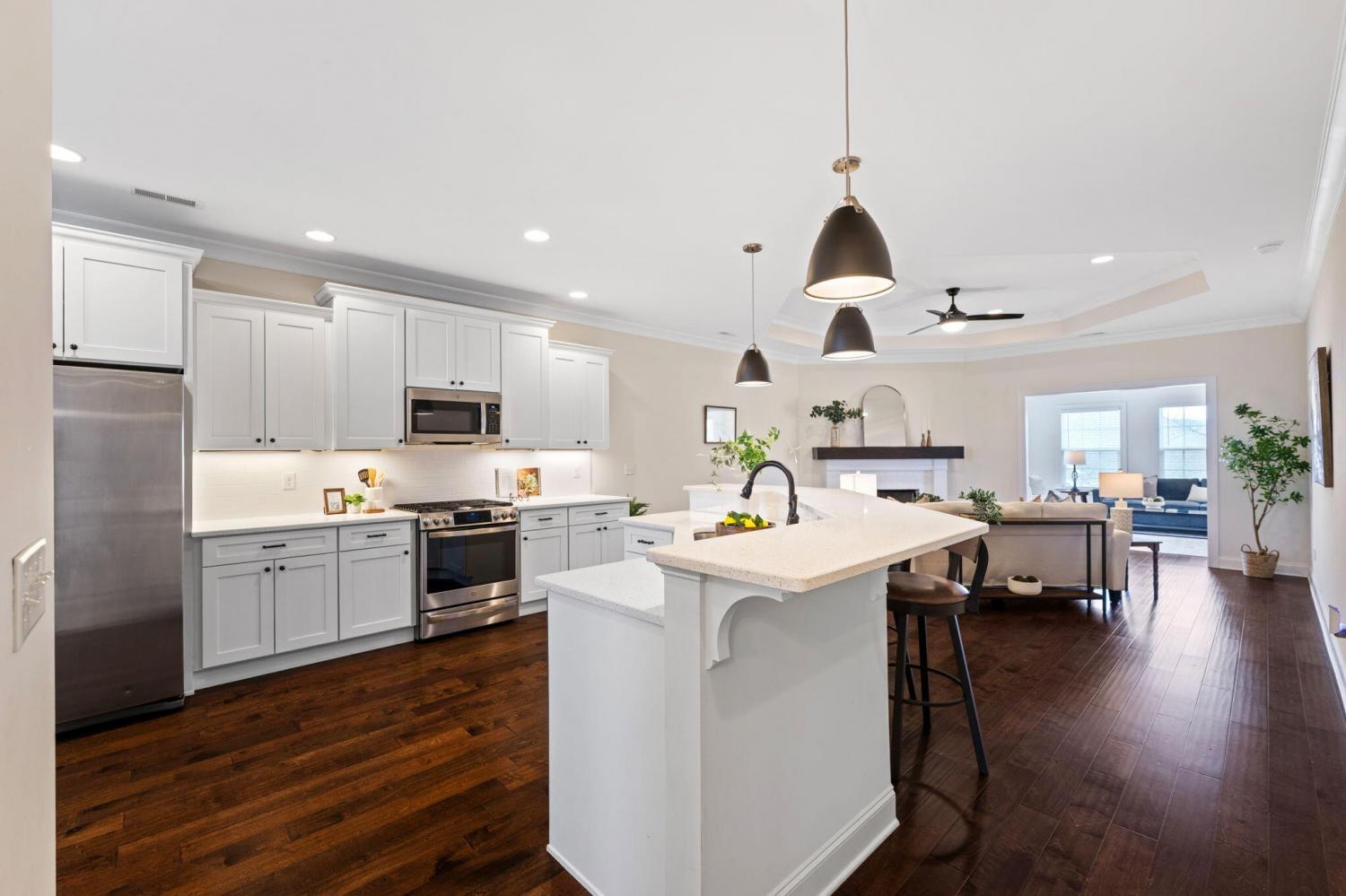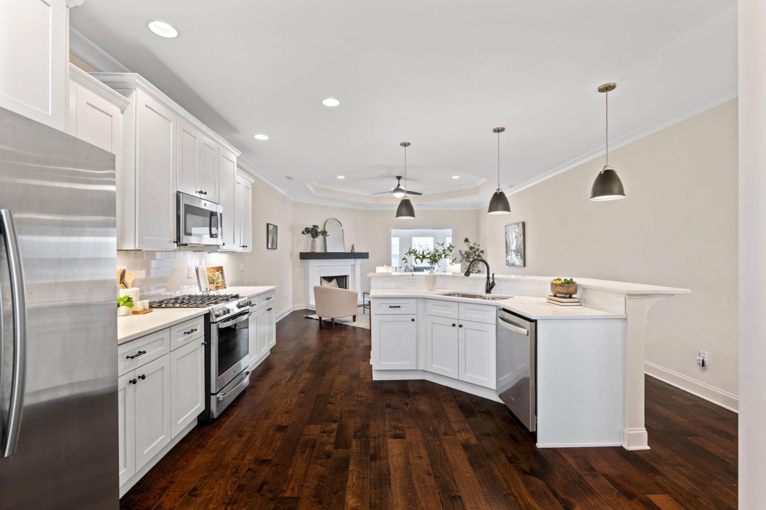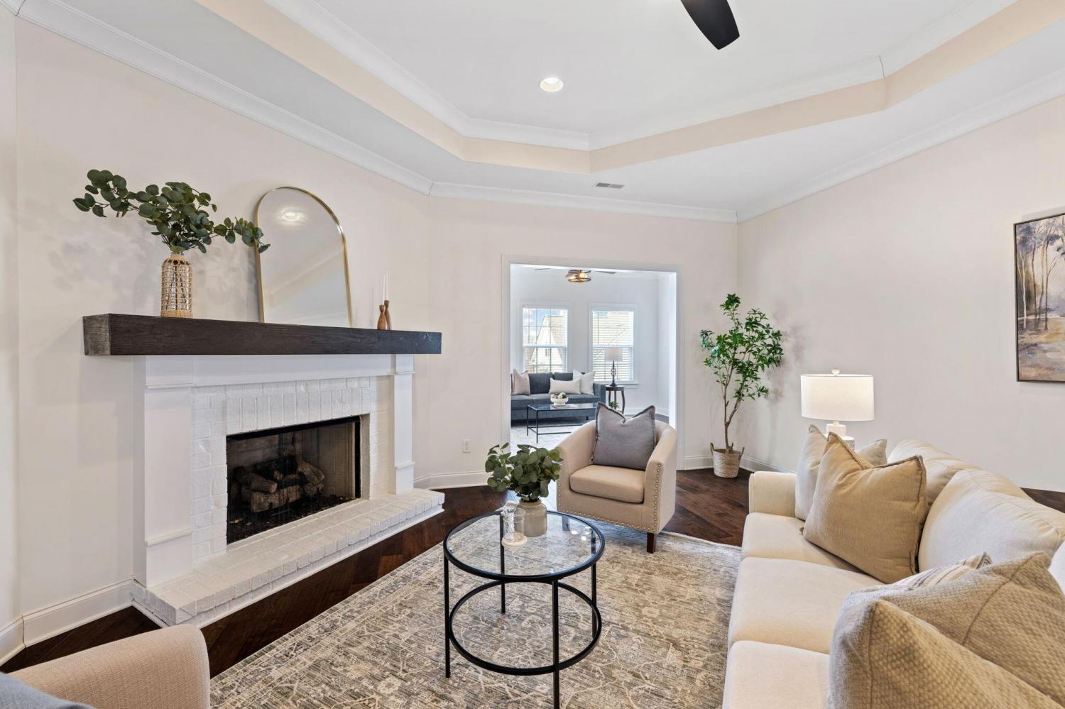 Welcome to 7149 Potomac River Drive, a home that feels inviting the moment you step inside. Designed for easy one-level living, this townhome offers comfort, functionality, and thoughtful details throughout. As you enter the open foyer, you're welcomed by a beautiful board-and-batten accent that sets the tone for the rest of the home. To the left, the kitchen is bright and welcoming with white cabinets, quartz countertops, and a large island — the perfect gathering place for morning coffee or casual meals. A separate dining area makes hosting effortless while still feeling connected to the heart of the home. With ample storage, the kitchen is both stylish and practical. The living room is warm and cozy, centered around a gas fireplace with a custom removable faux mantle — ideal for relaxing at the end of the day. Just off the living room, a sun-filled sunroom provides a peaceful space to unwind, read, or enjoy the natural light year-round. The main level features three comfortable bedrooms and two full bathrooms, offering privacy and convenience without stairs. Upstairs, a versatile bonus room gives you the flexibility to create a home office, guest space, or additional living area, along with a walk-in attic for extra storage. An attached two-car garage offers everyday ease with just one step into the home, making coming and going simple and accessible. Step outside to the open back patio and take in the beautiful mountain views — the perfect setting for quiet mornings or evening gatherings. Located in a highly convenient Hixson location, this home offers close proximity to Chickamauga Lake, Chester Frost Park, and everyday shopping and dining at Northgate Mall, the Publix shopping center, and the new BJ's. Whether you're enjoying time outdoors or running errands, everything you need is just minutes away. With its warm layout, thoughtful upgrades, and peaceful setting, this home is designed for easy living and meaningful moments.