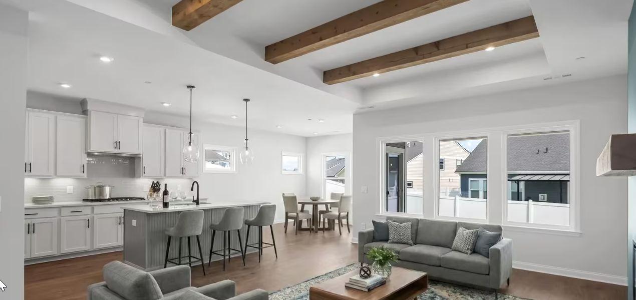NEW DREES Community. Wellsley Plan 4 beds, 3 baths. 2 Car Side Entry Garage with Optional 3 Car. Optional Independant Living Suite, Optional Bed 5. KITCHEN.42" Kitchen Cabinets with crown molding. Quartz Countertops, Tile Backsplash, Combo Microwave and Wall Oven. Gas Cooktop. Under Cabinet Lighting, Soft Close doors and drawers, Kitchen Pendant Pre-wires, Wood Pantry Shelving. PRIMARY Primary suite with ceramic tile shower glass door and oversized drop in tub w/ceramic tile and wood closet shelving. SECONDARY baths have ceramic tile and quartz countertops, tile bath surrounds and elongated comfort height commodes. FLOORING Mohawk Revwood Flooring in main living areas, Tile in baths and laundry and carpet in bedroom. EXTERIOR 8' Stained wood front door, fully sodded yards with landscape package, covered rear porches and broom finished drives and sidewalk. ADDITIONAL FEATURES Hardwood Stairs with spindles or iron balusters, Tankless Water Heater, Lighting/Electrical Allowance. Smart Thermostats. Zwave lock and video doorbell. Capped wireless access point pre-wire. Sealed and conditioned crawl space with insulated foundation walls.