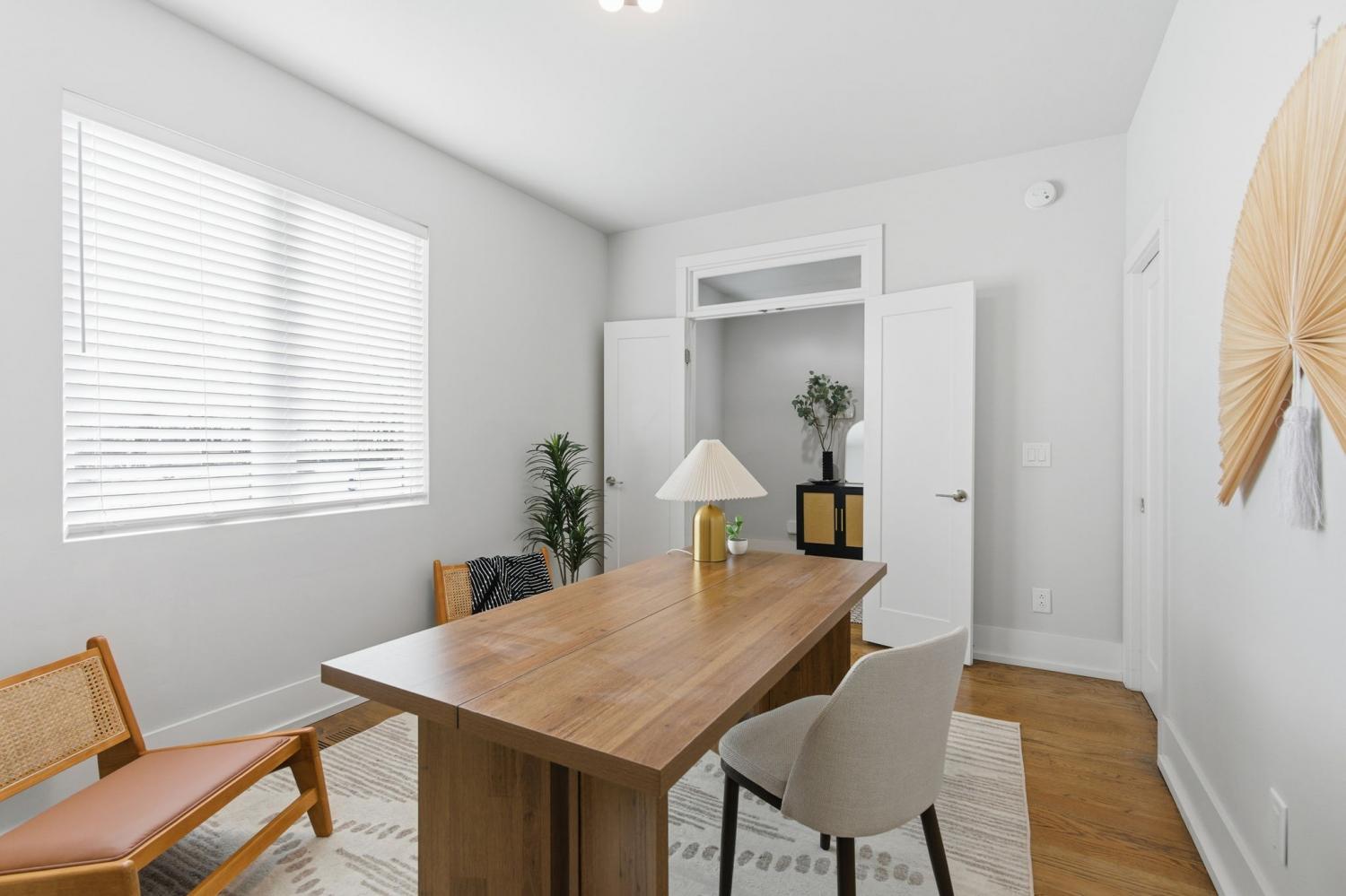 Located minutes from Woodbine and Berry Hill, this 4-bedroom 3-bathroom home offers quick access to downtown Nashville. Set on a deep lot with alley access, it features a large backyard with plenty of room for your dog to run and play. Inside, the open floor plan is ideal for entertaining and opens to a screened back deck off the main living area. The upstairs patio shared between the loft and primary bedroom offers even more outdoor living space. Eco-friendly and design-forward with input from a feng shui specialist and local designer, featuring locally sourced hardwood, locally made tile, artisan metalwork, quartz countertops, designer LED lighting, and wood shelving in all closets and the pantry. No HOA. Not an HPR. All appliances remain.
