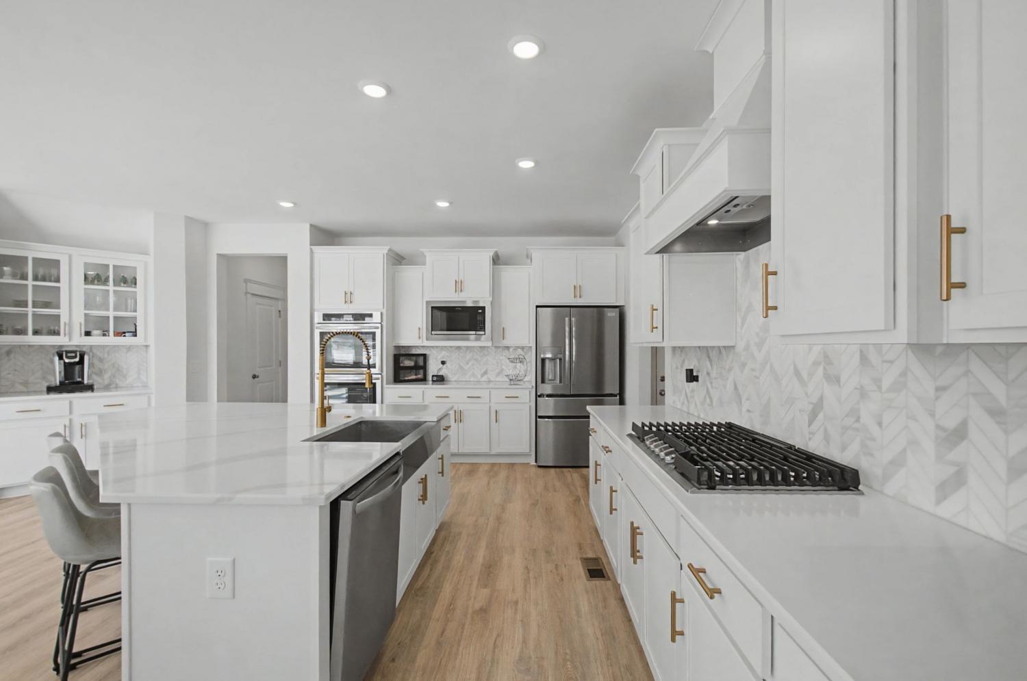 Luxury abounds in this beautiful 5 bedroom/4.5 bath home in one of Williamson county's newest communities, Belvoir! Built in 2025 so you don't have to wait to build! The 2 story open family room has a wall of windows that highlights the beautiful surroundings, and opens to a dream kitchen featuring double ovens, quartz countertops and extra large island-Just outside the kitchen the Owners have thoughtfully made the deck a screened porch-Primary bedroom is on the main floor & the primary bath has large shower and freestanding tub! There is another bedroom/bath on the main level-Great for your overnight guests or a nursery! The Rec Room upstairs is so spacious and extra storage has been finished out for hobbies! Professional pics coming, but this home is a must-see on your list! Convenient to Nashville & Franklin!