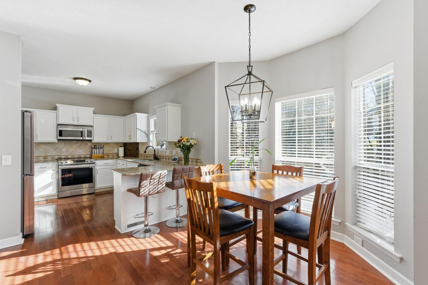 Sat 3/7 1-3PM. This home is a beautifully maintained brick two-story home filled with natural light and thoughtful upgrades throughout. The timeless exterior and inviting entry open to a dramatic two-story foyer, creating an immediate sense of space and openness. The main level offers both elegance and flexibility, featuring a formal living room or flex space and a dedicated dining room—perfectly suited for entertaining, working from home, or everyday living. The eat-in kitchen with breakfast nook anchors the home and flows seamlessly into an additional living area, creating multiple light-filled spaces that feel both connected and private. The kitchen has been enhanced with all new, high-end appliances, including an induction range with air-fry functionality, delivering modern performance with clean, streamlined design. Upstairs, brand-new plush carpeting leads to a generous bonus room and three spacious bedrooms. The owner’s suite is a true retreat, offering a large, light-filled bedroom and a spa-inspired bath complete with dual vanities with under-cabinet lighting, a soaking tub, and a glass-enclosed tiled shower. The expansive walk-in closet connects directly to the bathroom for effortless daily living, while the laundry closet is conveniently located just outside the suite. Two additional bedrooms provide excellent storage—one with dual closets and another with a walk-in—along with a well-appointed full bath. Additional improvements include a new crawlspace vapor barrier and a fully integrated smart home system featuring smart lighting, thermostats, carbon monoxide monitoring, and a security system. A two-car garage and private rear deck extend the living space outdoors, offering a peaceful backdrop that feels especially secluded when the trees are in full bloom. With quick access to I-24 and nearby shopping and dining, this home pairs comfort, functionality, and elevated finishes in a setting that feels both polished and welcoming.