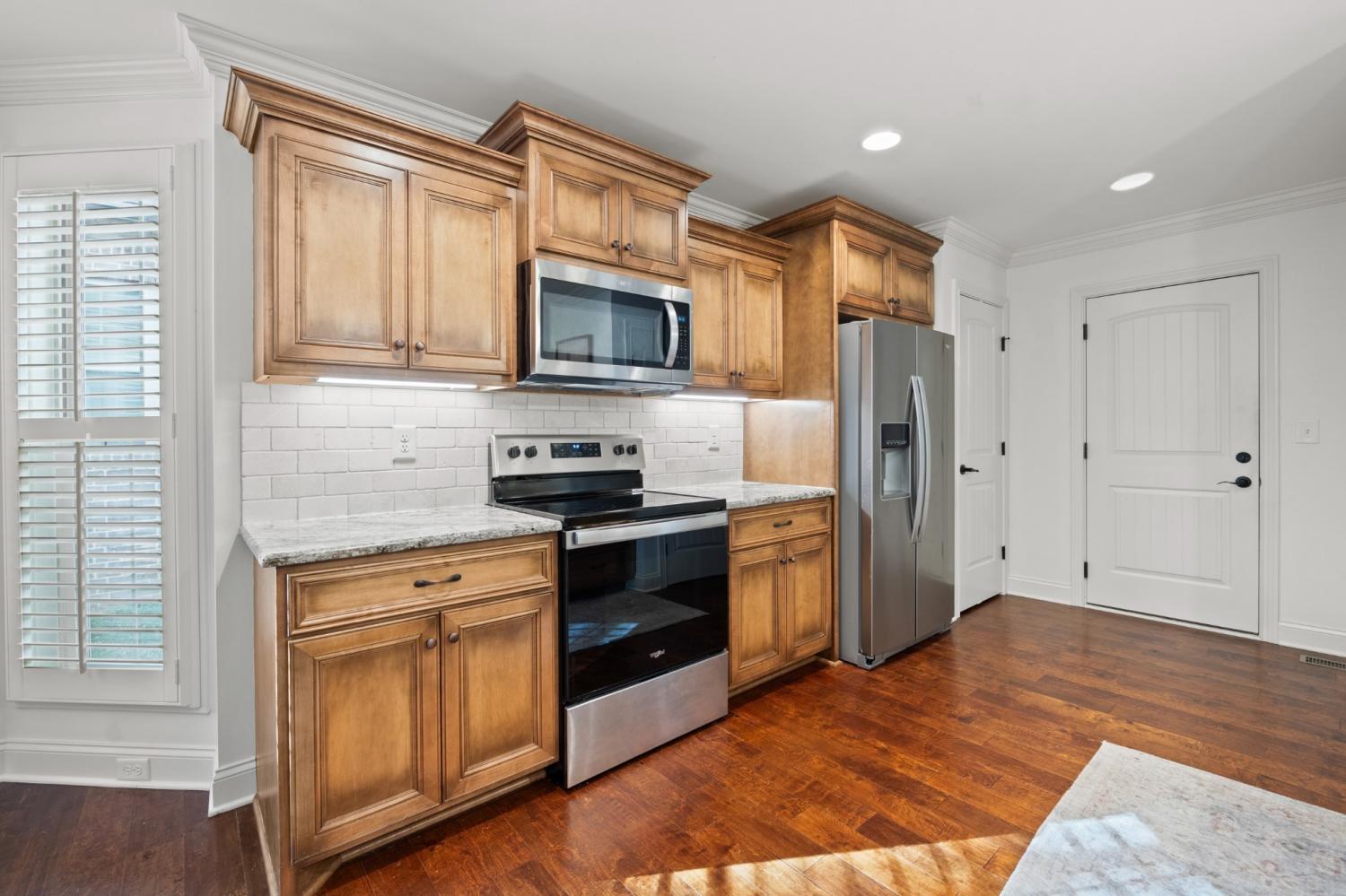 This beautiful Eastland Construction home is located in the desirable Timber Ridge neighborhood and offers thoughtful design and custom finishes throughout. The inviting living room showcases a cozy gas fireplace, while the open-concept kitchen includes granite countertops, a pantry, and a stylish backsplash. The primary suite has tray ceilings, a custom walk-in closet, and an en suite bathroom with a tiled shower, soaking tub surrounded by tile, and dual vanities. All 3 bedrooms are on the main level and there is also a flex room off the bonus area above the garage, perfect for an office, fitness space, or hobby room. Washer/dryer and refrigerator remain with the house. Enjoy outdoor living on the covered front porch or the spacious back patio, which includes both covered and uncovered areas. The home sits on a lovely, tree-lined lot with a great backyard. Conveniently located only 25 min to Nashville International Airport (BNA) and 10 min to the Historic Lebanon Town Square with wonderful shops and restaurants. **Preferred lender incentives available- 1% of the loan amount as a lender credit or a free 1/0 temporary buydown**