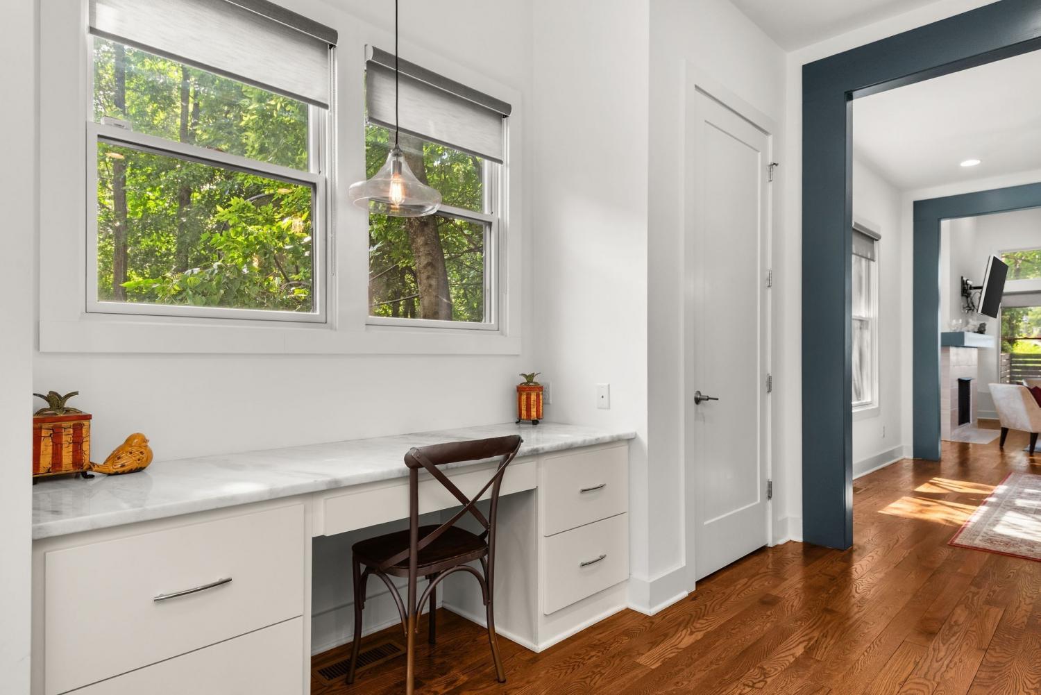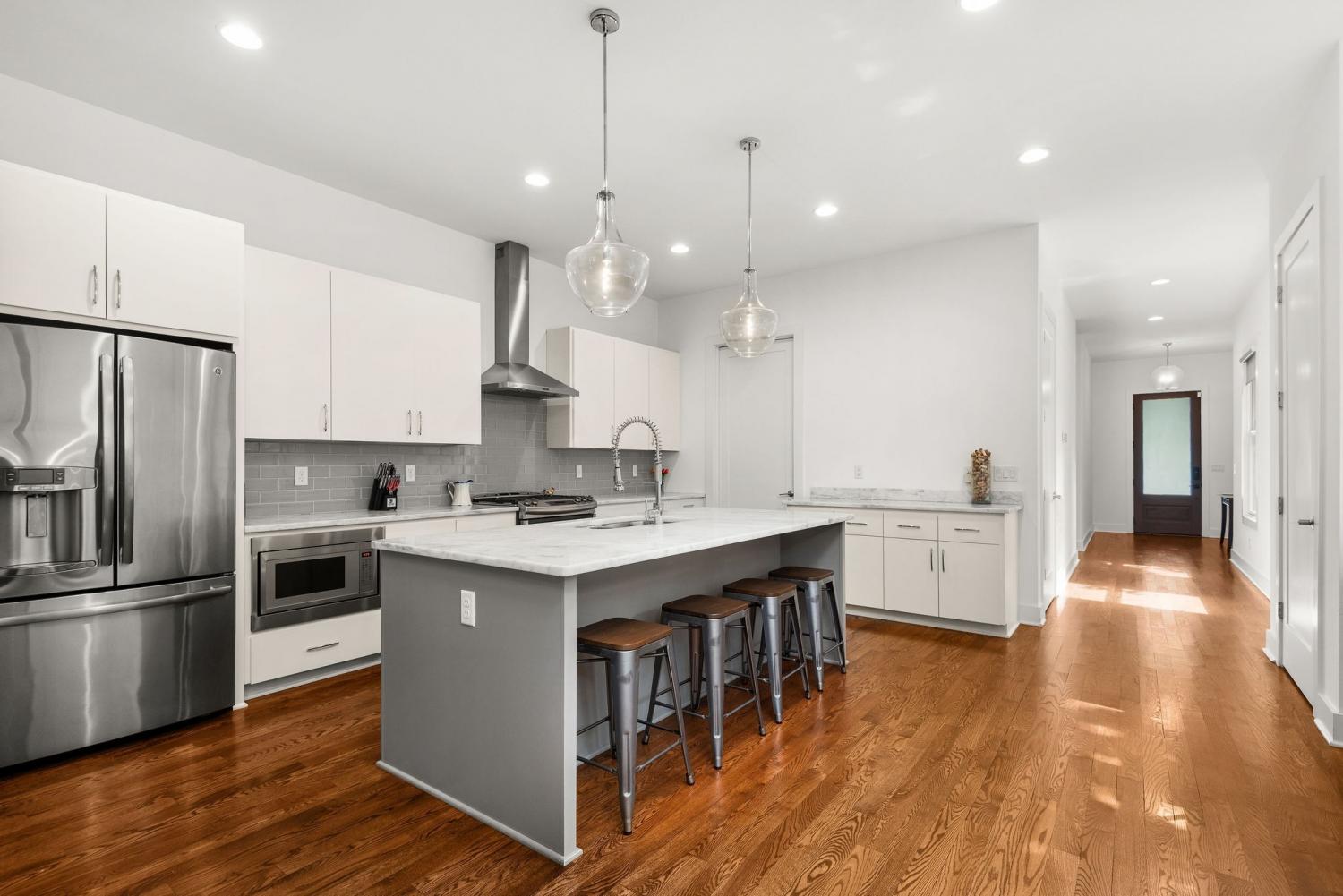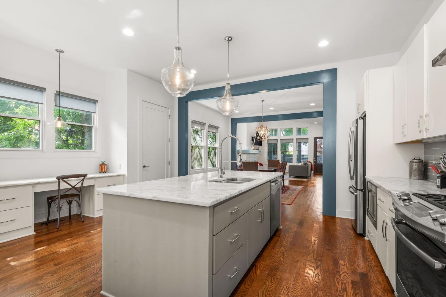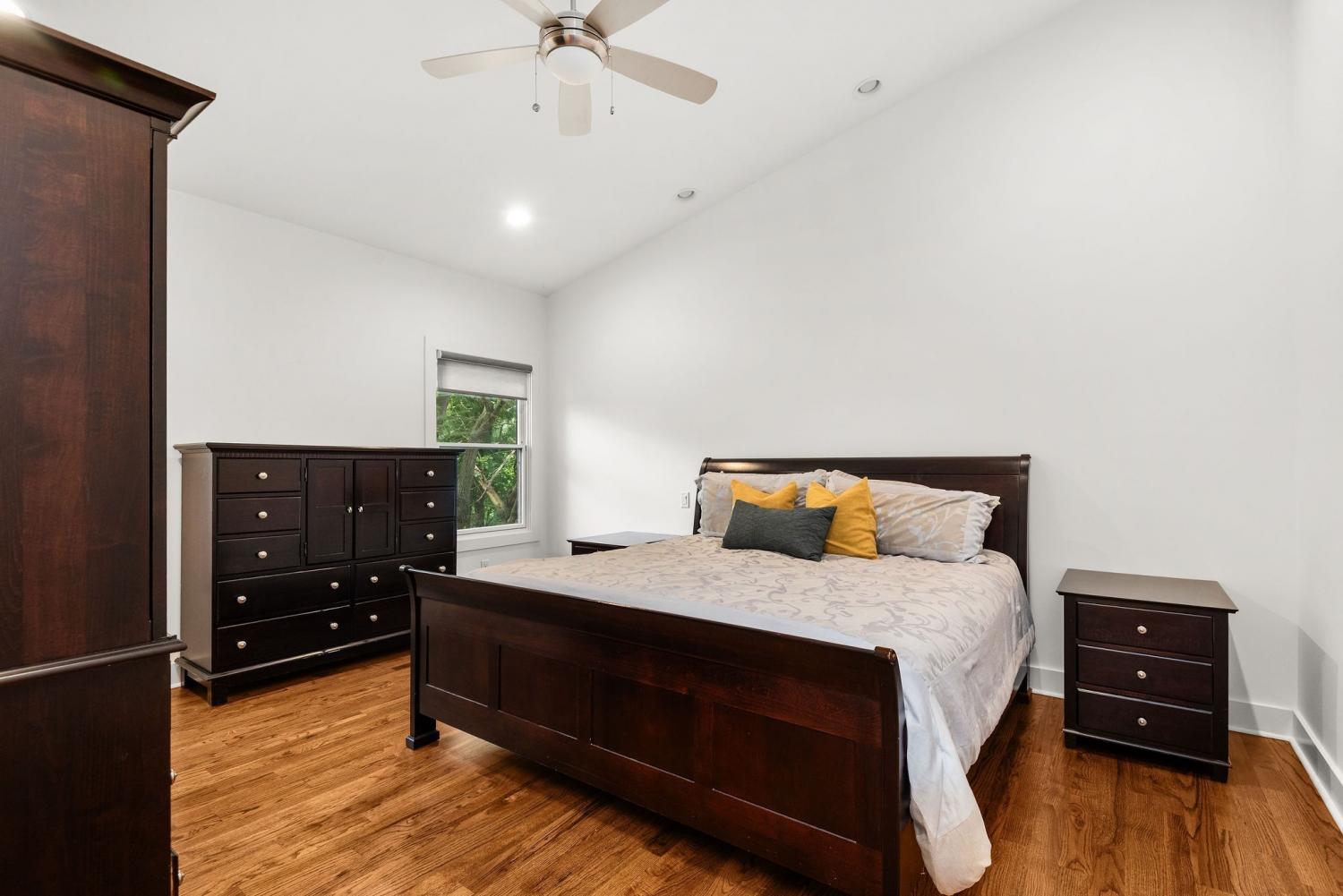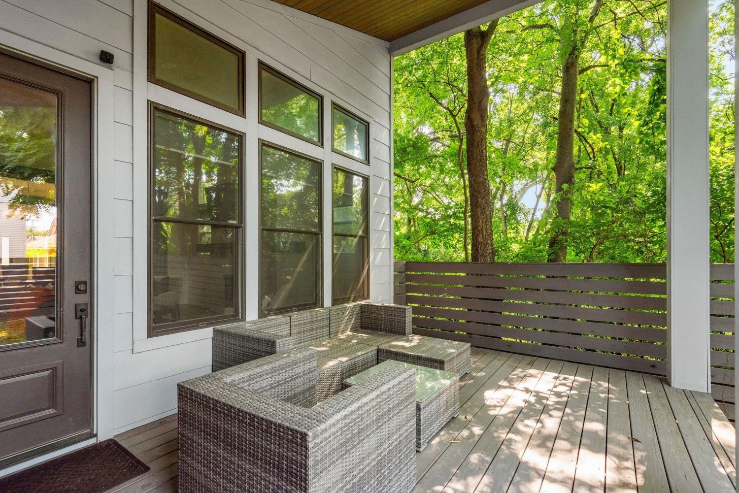 Renovated, modern home in the ultra convenient Edgehill neighborhood with a fenced yard, private parking and elite walkability to The Gulch, Music Row, Midtown, Vanderbilt, Belmont and Edgehill Village’s restaurants and retail. Inside, the 1st floor showcases an open-concept with soaring 12’ ceilings, a working gas fireplace and large windows filling the space with natural light. The kitchen features a gas range, 2 pantries (exceptional storage) and a versatile desk station ideal for work or serving as a coffee or cocktail bar. Upstairs, you’ll find a spacious bonus room, guest bedroom and the primary suite featuring freshly installed hardwood floors. All 3 bedrooms include a full bathroom and walk-in closet, ensuring comfort and privacy for all. Enjoy the outdoors on the large, covered deck overlooking the fenced backyard, with a 2 car parking pad conveniently accessed from the alley. Laundry machines included. No pets. Furnished option available.