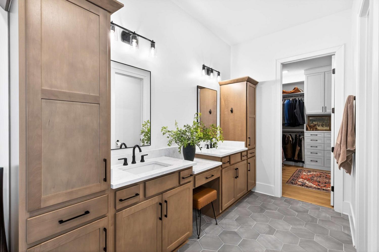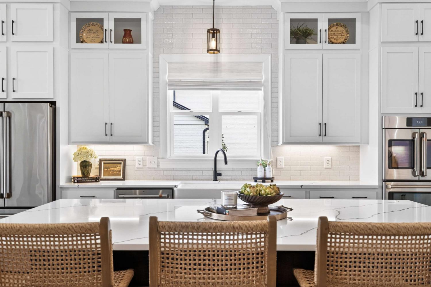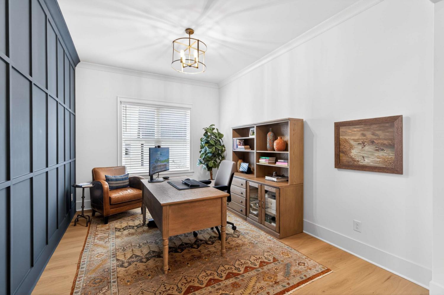 Better than new! Move-in ready with lots of UPGRADES* Impressive 2-Story Entry foyer* Separate Office* Chef's Kitchen with soaring beamed ceiling and is equipped w/GE Cafe appliances* Butler's pantry plus walk-in pantry that would make The Home Edit organizers envious*Open Living room with fireplace and built-in cabinets* Two main level bedrooms, including the Primary Suite* Impressive dual boutique style custom closets with display shelves*New 9" plank flooring~11/2025* Covered Porch with fireplace* Large Utility room with sink & folding table* Home backs up to common area* Full yard irrigation* Fenced backyard* Uplighting + path lights* Security system w/exterior cameras* Plantation shutters* Neighborhood amenities include activity center with gathering rooms to host events, fitness center, resort-style beach-entry pool, playground, walking trail, and pickleball courts