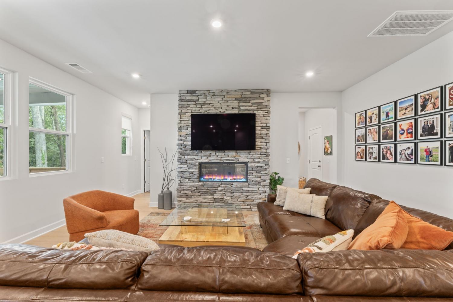 Completed in Spring 2024, this four-bedroom, three and a half-bath home offers 3,066 square feet of well-designed living space on a quiet cul-de-sac, just minutes from I-24, shopping, and dining. The open-concept layout features a flexible room off the entry, a spacious great room ideal for gatherings, and a stylish kitchen with modern finishes and clean, contemporary design. Secondary bedrooms are generously sized and share a full bath, while the owner’s suite provides a private retreat with dual vanities, a spa-like bath, and a large walk-in closet. Outdoor living is just as impressive, with a large deck and concrete patio overlooking a wooded backyard where local wildlife is often seen. The property also includes private access to a walking trail leading to the West Fork of the Stones River, creating a peaceful setting for everyday living.