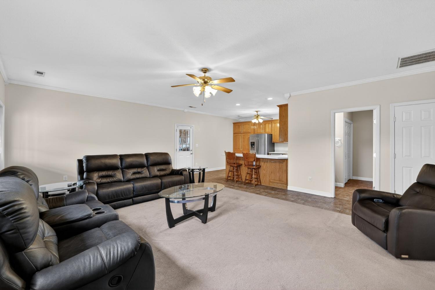 A charming two-bedroom barndominium in a quiet country setting, featuring an open-concept living space and high ceilings. The design blends rustic character with modern finishes, offering comfortable bedrooms and efficient living. A two-car attached garage adds everyday convenience, making this home ideal for simple, relaxed country living.