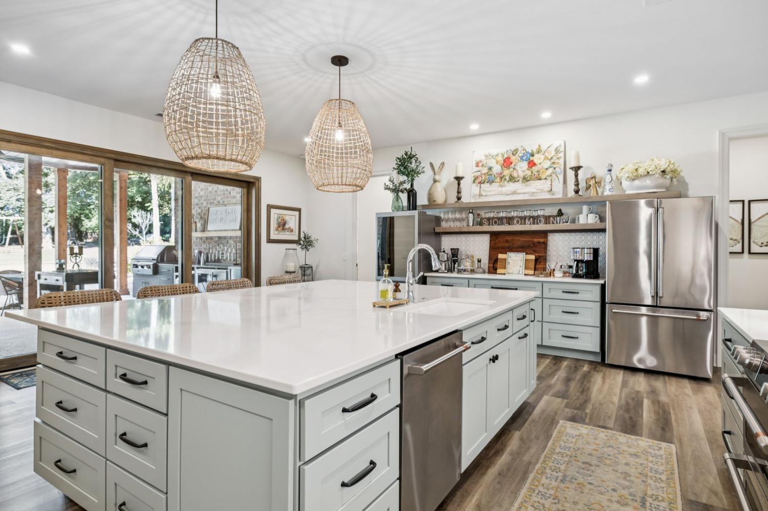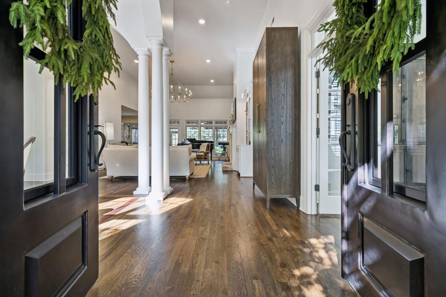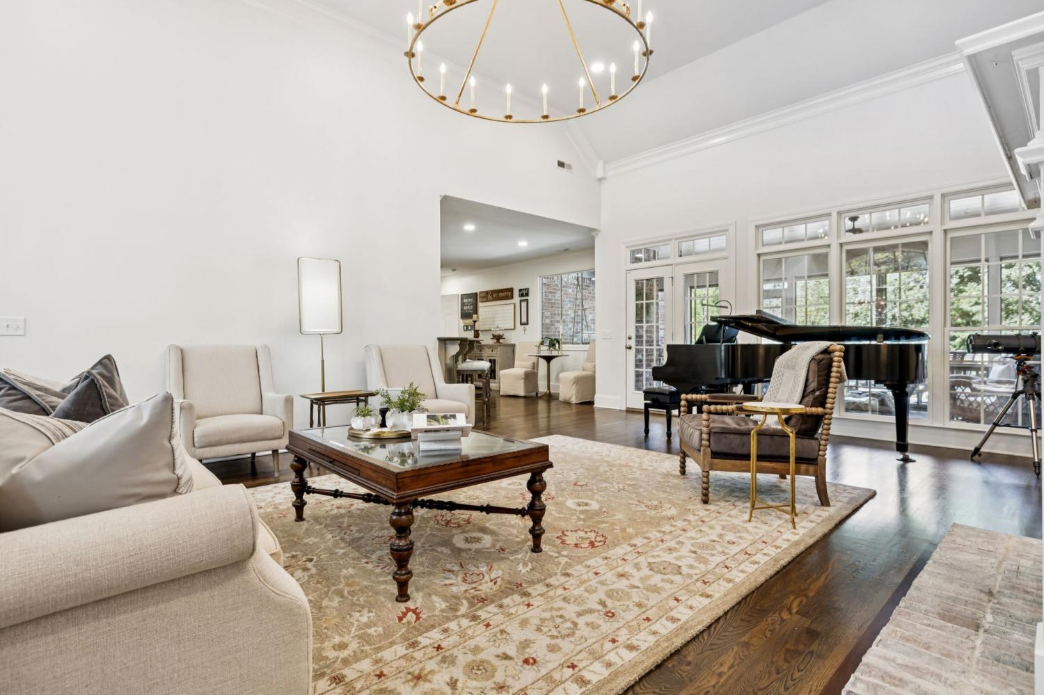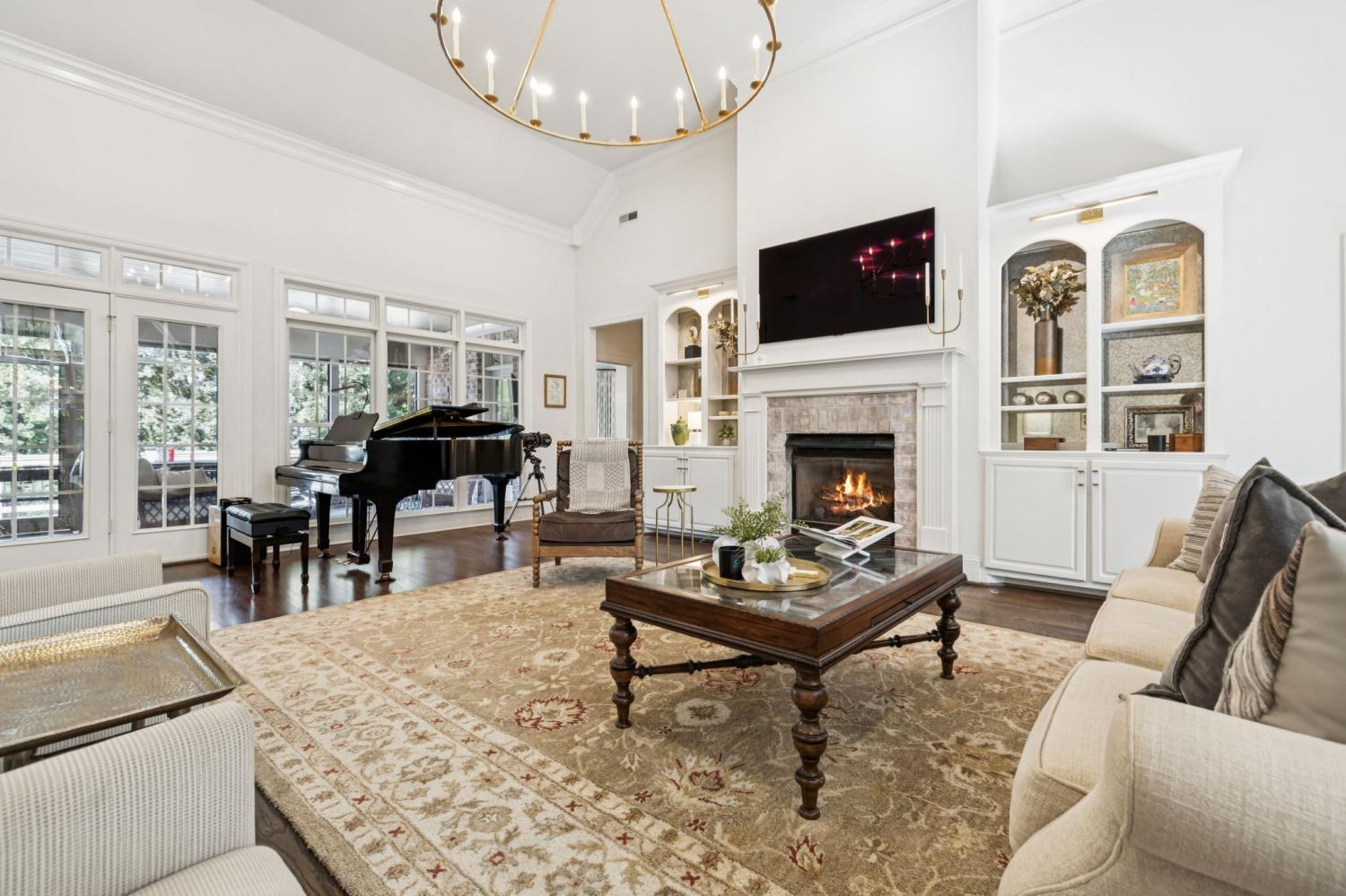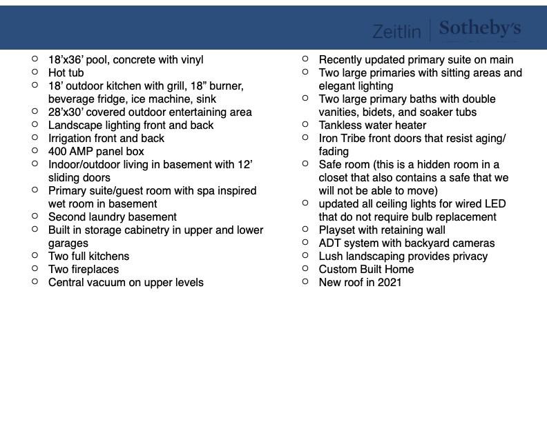 This exceptional luxury home is designed for comfort, entertaining, and multi-generational living. Located in the Highgrove Custom Built section of River Landing, the main level features a recently updated primary suite that provides a serene retreat, along with spacious living and dining areas enhanced by elegant finishes and a fireplace. A full chef’s kitchen makes daily living both effortless and refined. There are 3 additional bedrooms on the main level of this home. The lower level is a destination of its own, offering seamless indoor/outdoor living with 12’ sliding doors that open to the pool and entertaining spaces. A primary suite/guest retreat with spa-inspired wet room, full kitchen, and second laundry make this level ideal for multi-generational living or guests. Outdoors, the property impresses with an 18’x36’ pool, hot tub, and a 28’x30’ covered terrace. The 18-foot outdoor kitchen is equipped with a grill, 18” burner, beverage fridge, ice machine, and sink—perfect for hosting gatherings. Landscape lighting and irrigation in front and back ensure year-round beauty and ease of care. Additional highlights include: two fireplaces, two full kitchens, two laundry rooms, 5 full baths/2 half baths, built-in cabinetry in the upper and lower garages, 3 garage bays (one bay gives direct access into the finished basement), a 400 AMP panel box, a central vacuum system, and a tankless water heater. With dual primary suites, expansive entertaining areas, and thoughtful upgrades throughout, this home offers a rare combination of luxury, comfort, and versatility. Dining room chandelier does NOT convey.