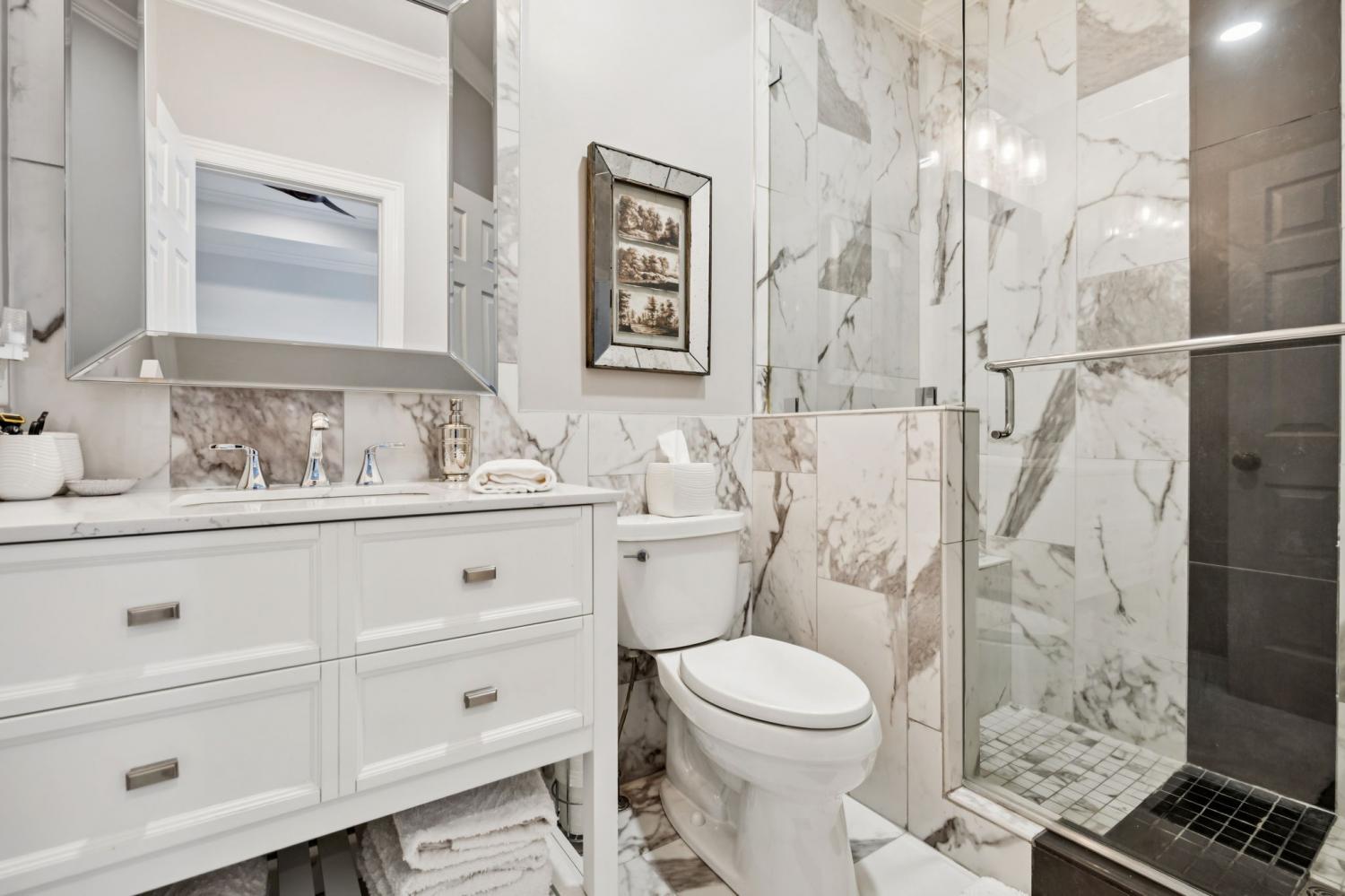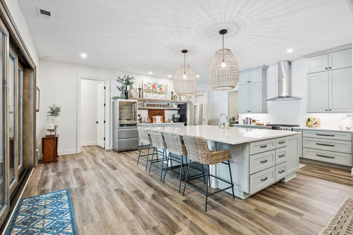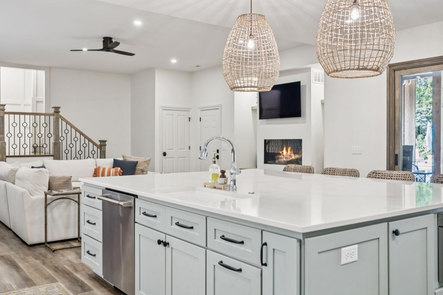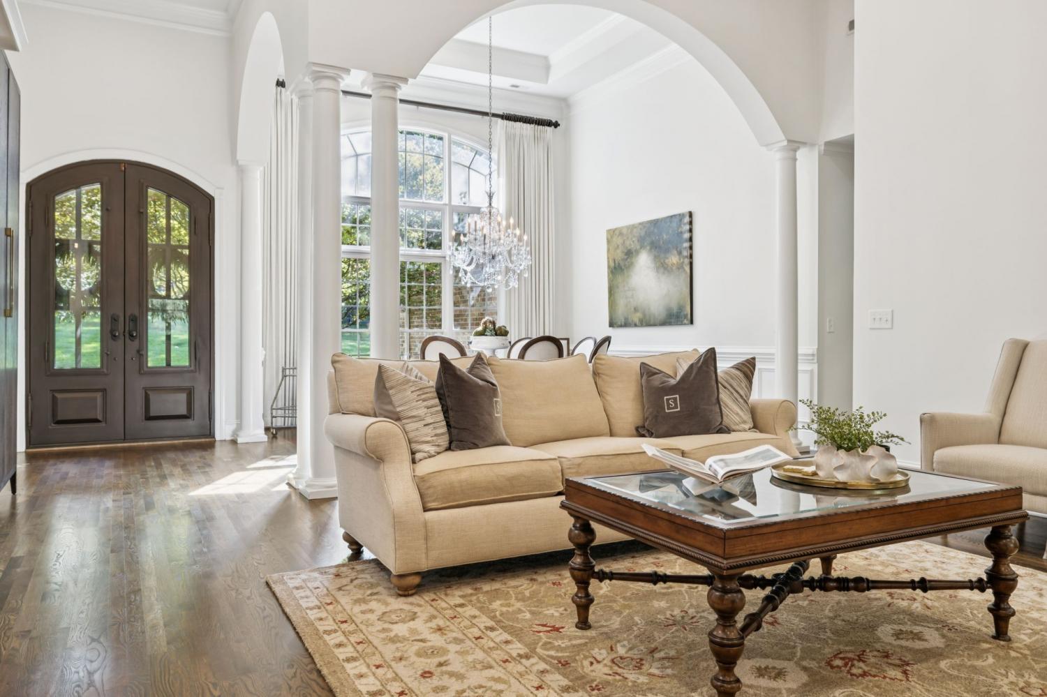 This exceptional luxury home is designed for comfort, entertaining, and multi-generational living. Located in the Highgrove Custom Built section of River Landing, the main level features a recently updated primary suite that provides a serene retreat, along with spacious living and dining areas enhanced by elegant finishes and a fireplace. A full chef’s kitchen makes daily living both effortless and refined. There are 3 additional bedrooms on the main level of this home. The lower level is a destination of its own, offering seamless indoor/outdoor living with 12’ sliding doors that open to the pool and entertaining spaces. A primary suite/guest retreat with spa-inspired wet room, full kitchen, and second laundry make this level ideal for multi-generational living or guests. Outdoors, the property impresses with an 18’x36’ pool, hot tub, and a 28’x30’ covered terrace. The 18-foot outdoor kitchen is equipped with a grill, 18” burner, beverage fridge, ice machine, and sink—perfect for hosting gatherings. Landscape lighting and irrigation in front and back ensure year-round beauty and ease of care. Additional highlights include: two fireplaces, two full kitchens, two laundry rooms, 5 full baths/2 half baths, built-in cabinetry in the upper and lower garages, 3 garage bays (one bay gives direct access into the finished basement), a 400 AMP panel box, a central vacuum system, and a tankless water heater. With dual primary suites, expansive entertaining areas, and thoughtful upgrades throughout, this home offers a rare combination of luxury, comfort, and versatility. Dining room chandelier does NOT convey.