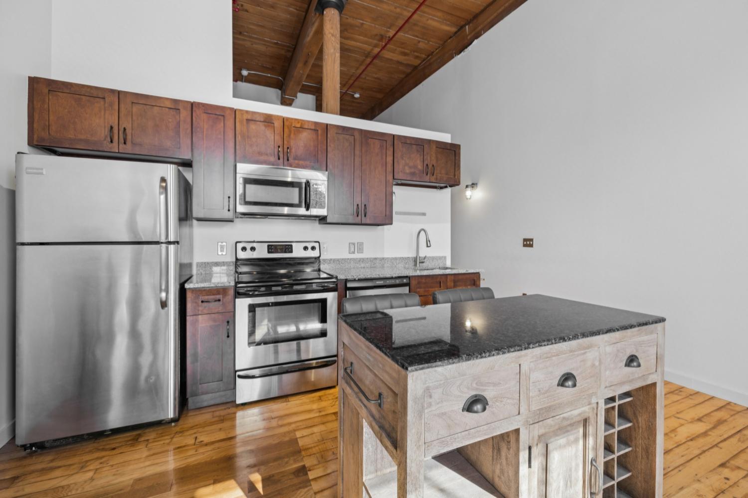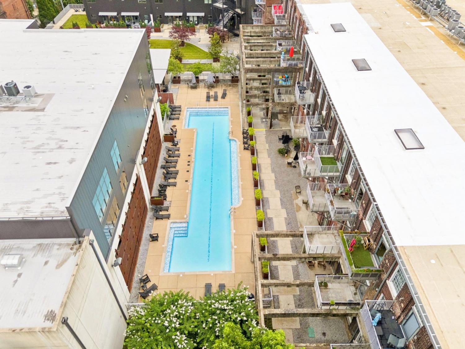 Welcome to 1350 Rosa L Parks Blvd, Unit #449 – a rare top-floor unit in the highly sought-after Werthan Lofts community in historic Germantown! Originally built in the late 1800s as part of the Werthan Bag Factory, this condo perfectly blends industrial character with modern comfort. Step inside to discover soaring ceilings, original hardwood floors, exposed brick walls, and large factory-style windows that fill the space with natural light. The open-concept kitchen features granite countertops and stainless steel appliances, opening seamlessly to the living area — perfect for entertaining or relaxing at home. The spacious bedroom includes generous closet space and a full bath. As one of the most private units in the complex, this top-floor location offers peace and quiet while still being steps away from Nashville’s best dining and coffee shops — including Rolf & Daughters, Barista Parlor, and Henrietta Red. Residents enjoy resort-style amenities such as two luxurious pools, a fitness center, rooftop terrace with skyline views, yoga studio, bocce courts, dog park, and secure gated parking. Experience the vibrant, walkable lifestyle Germantown is known for — all while enjoying the charm of Nashville’s most iconic historic loft community.