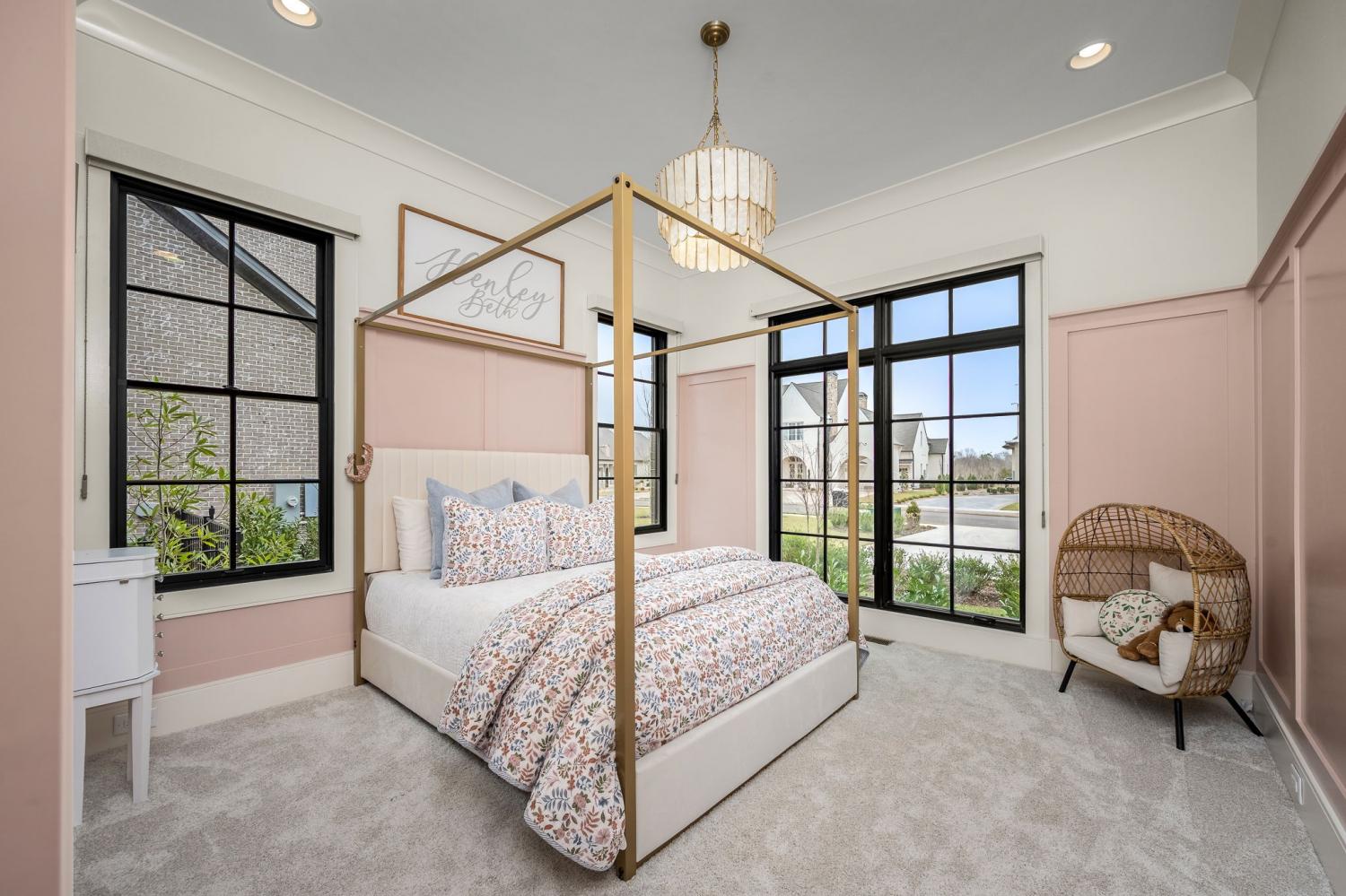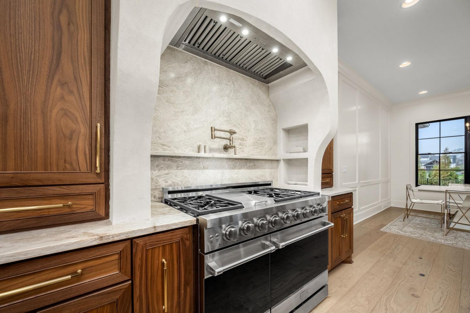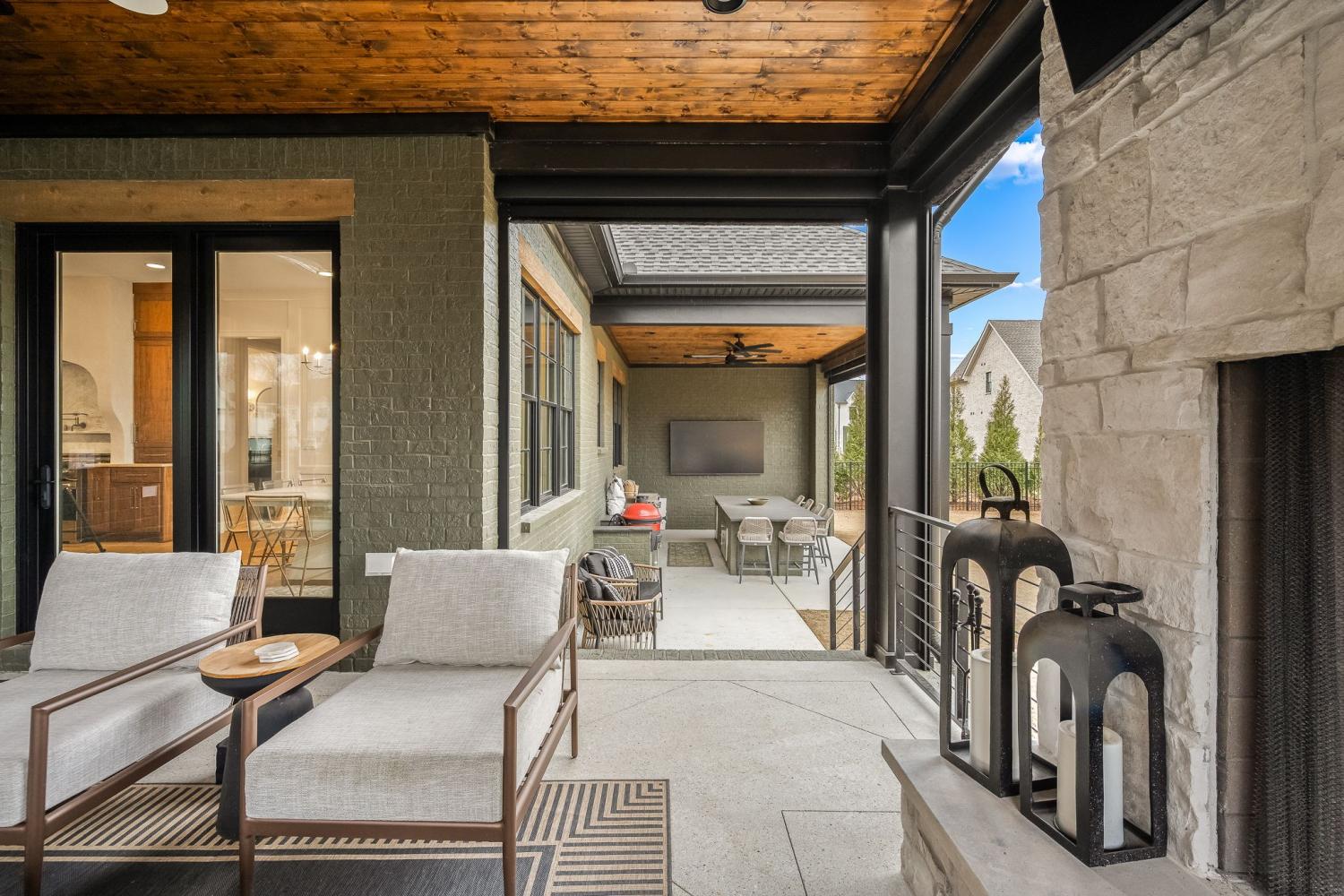 Highly sought after Riverview Cove. Step into luxury! Custom built in 2025. Painted brick w/wood accents, custom wood doors leading into entry w/herringbone wood with gold trim, step into the living room w/custom fireplace and arched builtins on both sides, luxury kitchen w/custom walnut cabinets w/builtins, Taj Mahal countertops to include backsplash, custom ArcasStone hood range. top end appliances, coffee bar builtin under the steps w/walnut glass doors, butler's pantry w/microwave, sink and custom shelves, dining room/office features walnut coffered ceiling, safe space built in dining room panel, primary bedroom down w/builtin dresser, bathroom suite w/heated tile floors, heated toilet w/niche, steam tile shower, freestanding tub w/niche, integrated sinks built into countertops in primary suite bathroom, 1/2 bath and kitchen sink, laundry w/custom cabinets, sink, built in trash cans, hanging rod. Upstairs features 3 bedrooms w/full baths, custom closets w/builtin drawers, step-down bonus room w/1/2 bath and closet. media room,Laundry room w/custom cabinet & hanging rod, huge walk in floored attic for storage, speakers in primary bedroom, primary bath,, garage, and kitchen, window shades in bedrooms, office & garage, 3 car garage w/builtin storage and electric car charging dock. Outside features covered porch w/wood stone wood burning fireplace, powered automatic screens, heaters in ceiling, Outdoor kitchen w/hibachi, grill sink and refrigerator, huge bar area for seating, built in double trash bins, powered screen and heaters in ceiling, fenced in backyard w/14ft Hetz wintergreens for privacy, landscape lighting, irrigation and mature landscaping, Turf in dog run area w/hidden dog door to home.Huge roundabout driveway for plenty of additional parking Spray foam insulation all throughout the home reducing utility expenses. Ubiquiti security cameras w/facial recognition and keypad access on garage side. Entire home water filtration system since day 1.