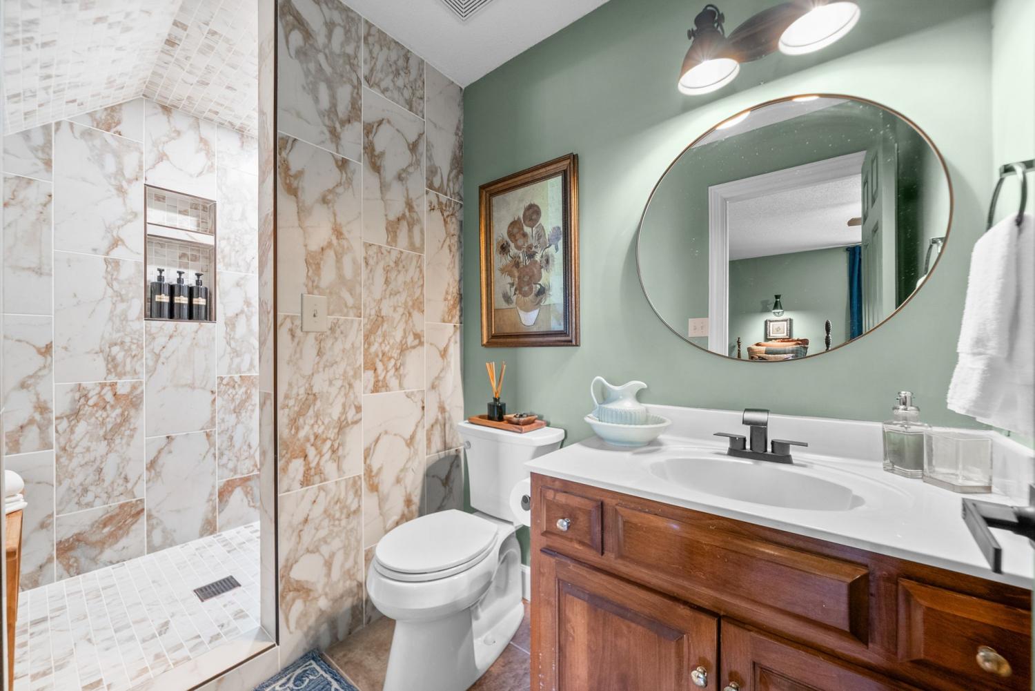 Thoughtfully curated and extensively upgraded, this stunning home offers refined living with exceptional craftsmanship throughout. Set on a spacious .95-acre lot, professional landscaping, mature trees, and timeless curb appeal create a striking first impression. Inside, nearly 3,900 square feet of living space showcases new flooring, custom stone and tile work, all-new hardware, fixtures, and designer lighting. The gourmet kitchen is a true showpiece, featuring commercial-grade appliances, an 8-burner gas range, double ovens, and premium finishes designed for both beauty and performance. The home offers 3 bedrooms (Master on the main), 3.5 baths, two bonus rooms, and an amazing private screened in porch, providing flexible living and entertaining spaces. Recent major upgrades include a new roof (2024), encapsulated crawlspace, professionally refinished garage floor, new bathrooms, and extensive interior and exterior enhancements. Outdoor living is equally impressive, highlighted by a custom pergola and meticulously designed landscaping that complement the home's elevated style. Completely move-in ready, this residence delivers luxury, functionality, and timeless appeal in a highly desirable executive setting. VIDEO WALKTHROUGH AVAILABLE!