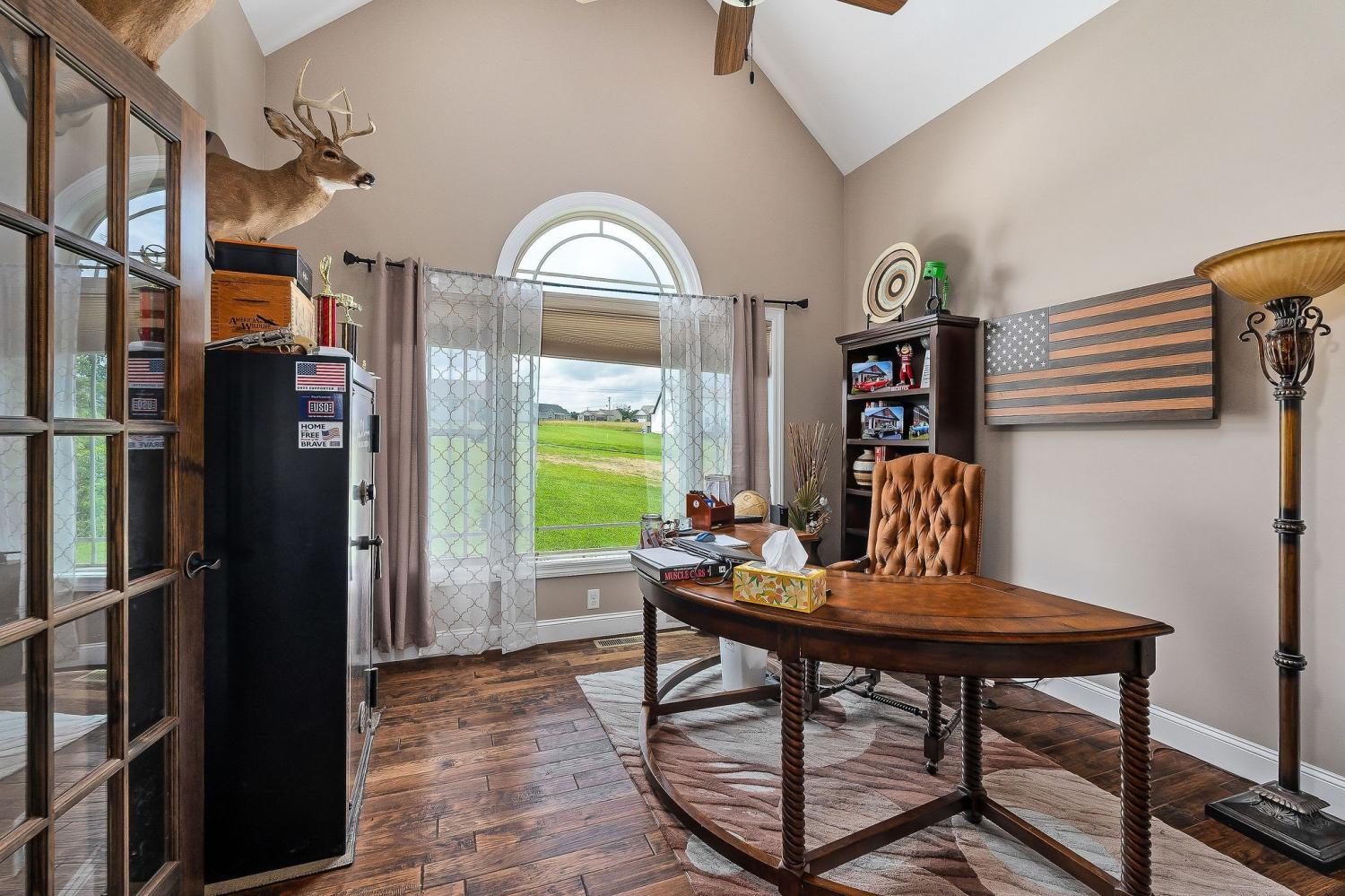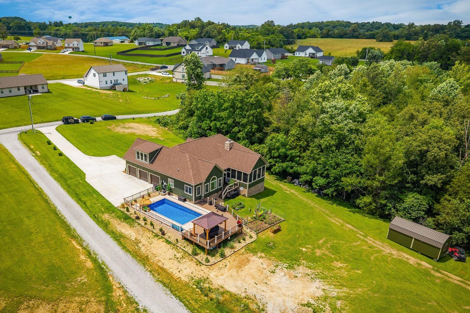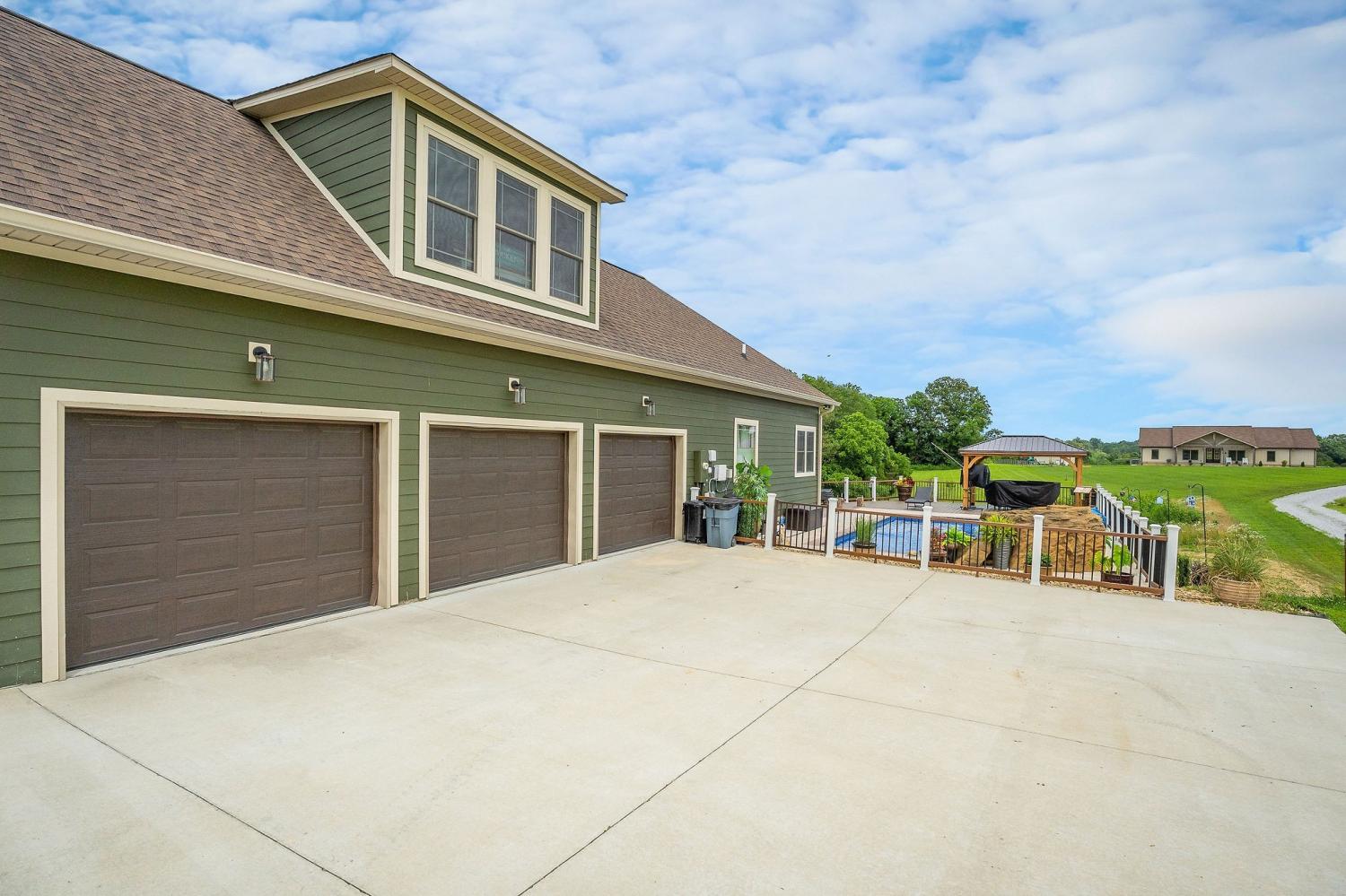 Set on just over 11 acres, this 2021-built home offers the rare combination of refined design & serene countryside living. With 2,712 square feet, 4 bedrooms (septic permit for 3), 2.5 baths, a dedicated office, and a spacious upstairs bonus room, every inch of this home was thoughtfully designed to elevate daily life. Soaring ceilings create an airy, light-filled feel in the living room and primary suite, while the open-concept layout draws you toward a show-stopping fireplace that flows seamlessly onto the covered back porch, the ultimate backdrop for outdoor dining & entertaining. Step outside and discover your own personal oasis including an in-ground pool, expansive sun deck, gazebo, and garden. A peaceful creek winds through the wooded back of the property, complete with a tucked-away fire pit area perfect for cool nights and unforgettable gatherings. With a setting that offers privacy without sacrificing modern comfort, this home truly checks every box!