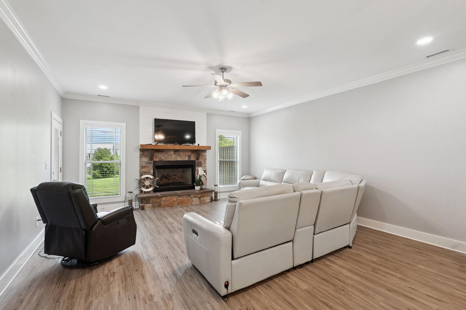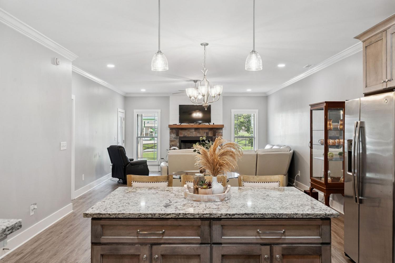This beautiful 4BR/2.5 bath townhome in Twin Creeks Village on Tims Ford Lake offers generous living space -- ideal for guests, hobbies, or weekend gatherings. Bedroom 4 offers options...either as a large bunk room or an amazing bonus room...whatever serves you best! Featuring a spacious, open floor plan and a delightful screened porch, this home is also ideal for outdoor entertaining and relaxing lake-life evenings. The kitchen features granite counters, stainless steel appliances (yes, a gas stove!), a large island, and a convenient pantry. You'll love the convenience of the community pool being just a few steps away! An attached 2-car garage and level lot offer effortless everyday convenience, while HOA-maintained lawn care frees up your time to enjoy the Twin Creeks lifestyle. Residents benefit from gated entry and an exceptional array of amenities, including three pools, a clubhouse, marina access, scenic walking paths, and a sandy swimming beach. Ideally located just minutes from downtown historic Winchester, Times Ford State Park, Sewanee, and nearby hiking, 65 Campfire Court is perfectly suited as a primary residence, second home, or flexible investment -- delivering space, comfort, and location in one beautifully balanced offering. Rent a slip for your boat at the Marina, enjoy meals and music at Drafts and Watercrafts and enjoy participating in the many community events. Long-term rentals (31+ days) are permitted; short-term rentals require HOA approval. Come and get this great opportunity in Twin Creeks in time for lake season!