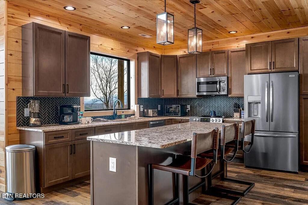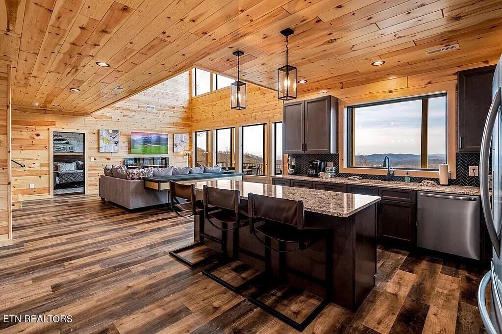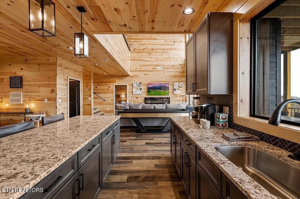 Nestled in the heart of Gatlinburg, Tennessee, this stunning property at 793 Chestnut Dr is a newly constructed single-family home that offers luxury living in a serene mountain setting. Built in 2022, this three-story home boasts modern architecture, high-end finishes, and ample living space, making it the perfect retreat for those seeking a peaceful escape in the Smoky Mountains .With a total of five bathrooms and one half bathroom, this home offers plenty of convenience for residents and guests alike. The spacious layout spans 3,746 square feet of finished area, providing plenty of room for relaxation and entertainment. The open-concept design creates a seamless flow between the living spaces, making it ideal for gatherings and socializing. Situated on a generous lot size of 0.91 acres, this property offers plenty of outdoor space to enjoy the natural beauty of the surrounding area. Whether you're looking to relax on the expansive deck, take a stroll through the lush landscaping, or simply soak in the breathtaking mountain views, this home provides the perfect backdrop for outdoor living. As you step inside, you'll be greeted by a light-filled interior that exudes warmth and sophistication. The main level features a spacious living room with a cozy fireplace, perfect for relaxing on chilly evenings. The gourmet kitchen is a chef's dream, equipped with top-of-the-line appliances, custom cabinetry, and a large island for meal preparation and casual dining. Each of the 5 bedrooms has their own en suite bathroom. Other notable features of this property include hardwood floors, high ceilings, recessed lighting. With three stories of living space, there's no shortage of room to spread out and make yourself at home in this beautiful property. In addition to its stunning interior, this home is conveniently located near all the amenities and attractions that Gatlinburg has to offer.