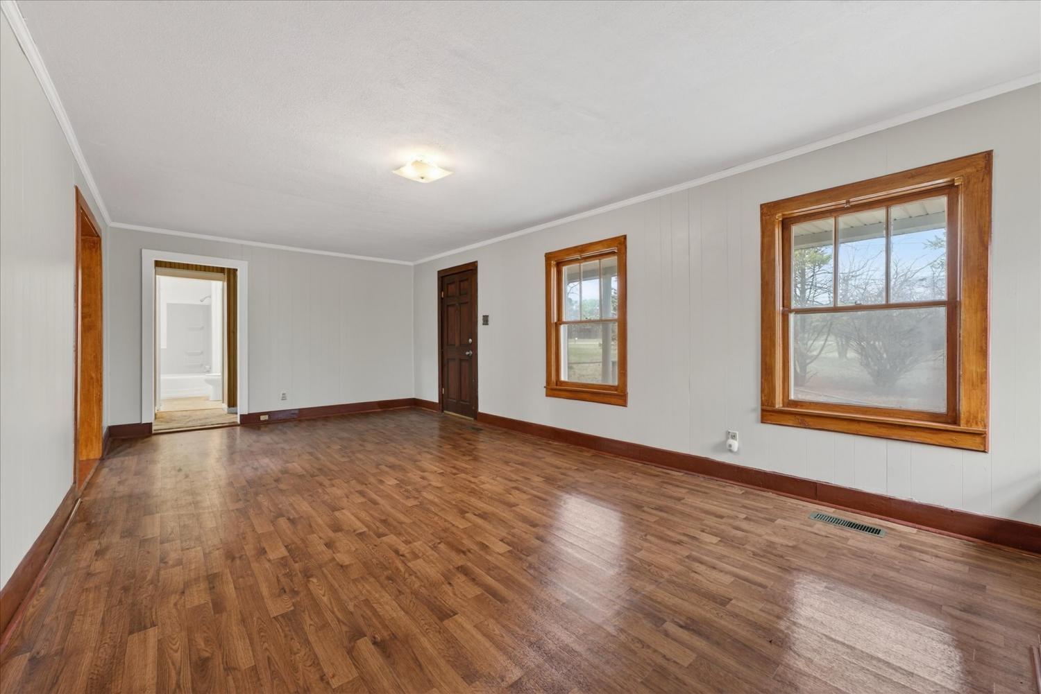 Charming home situated on approximately 12+ beautiful acres, offering privacy and a peaceful country setting. This 3-bedroom property features hardwood floors and timeless character throughout. Surrounded by mature trees with a long driveway, the setting is ideal for those seeking space, tranquility, or potential acreage use. A rare opportunity to own a classic home with land.