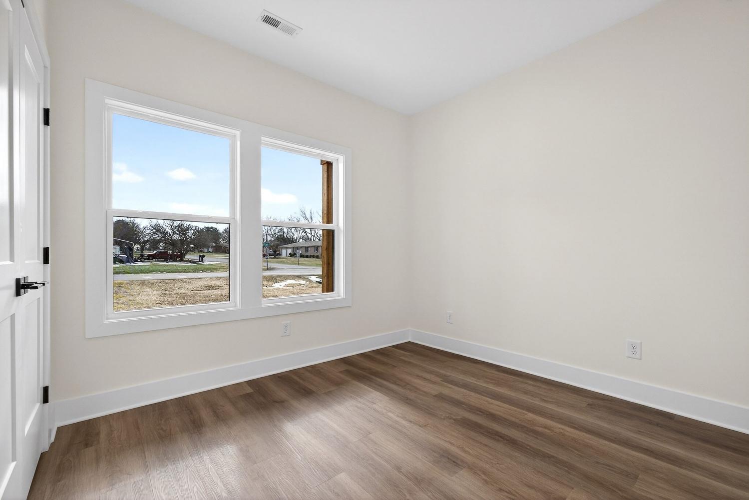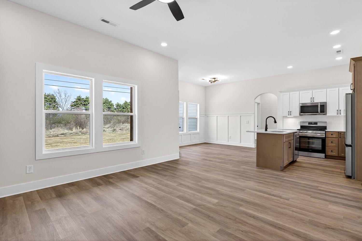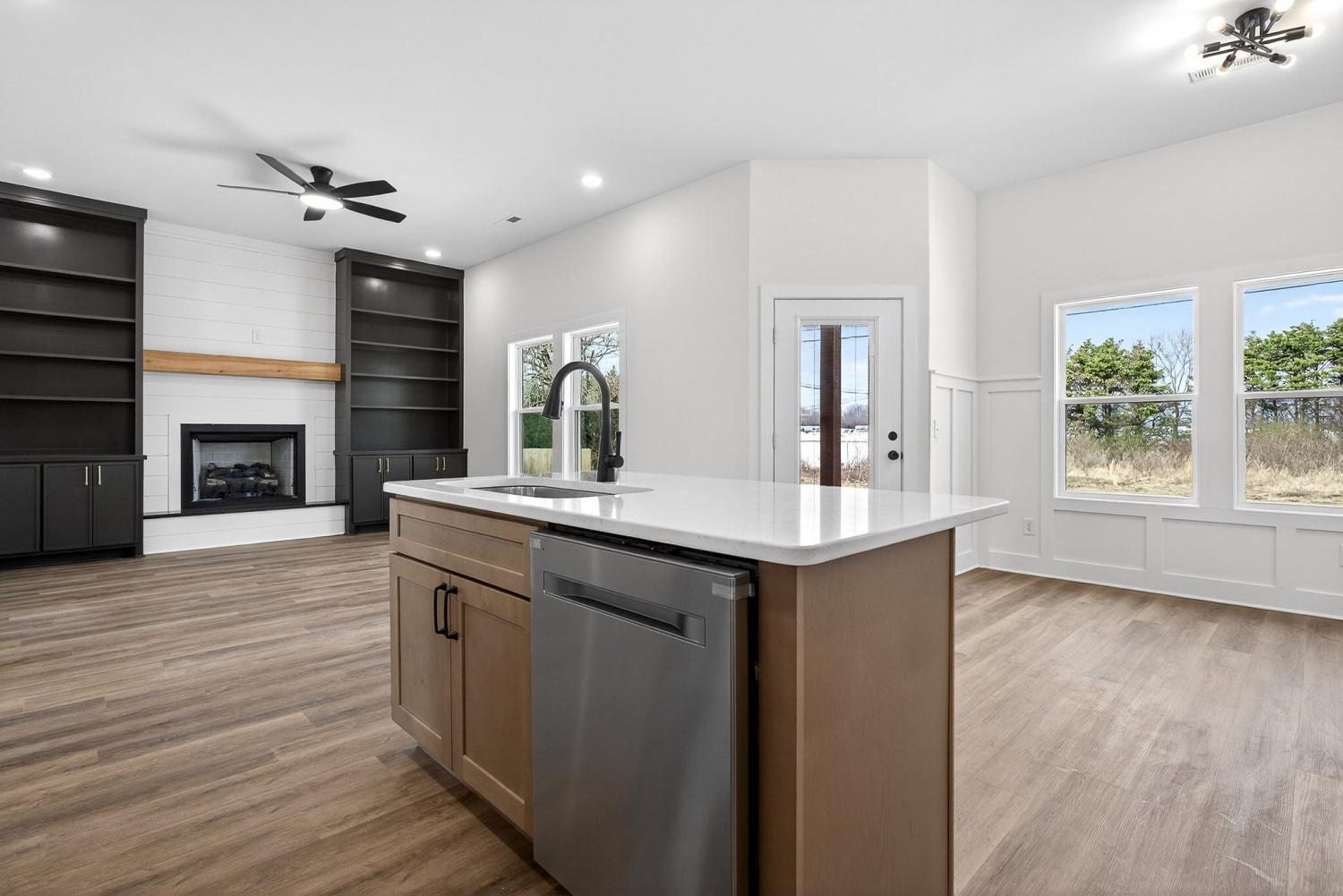 New construction home in the city limits offering true one-level living with no steps and easy access throughout. Features include durable LVP flooring, a tankless water heater, custom cabinetry, granite countertops, and built-in shelving for added storage and style. The living area is anchored by a fireplace, while the primary suite offers a trey ceiling, tile shower, soaking tub, tile flooring, and a large walk-in closet. Many custom upgrades make this home stand out from others in the area, giving it the feel of a true custom build with a touch of luxury. Enjoy a covered back porch overlooking a private backyard, plus an attached two-car garage. Includes a one-year builder warranty for peace of mind.