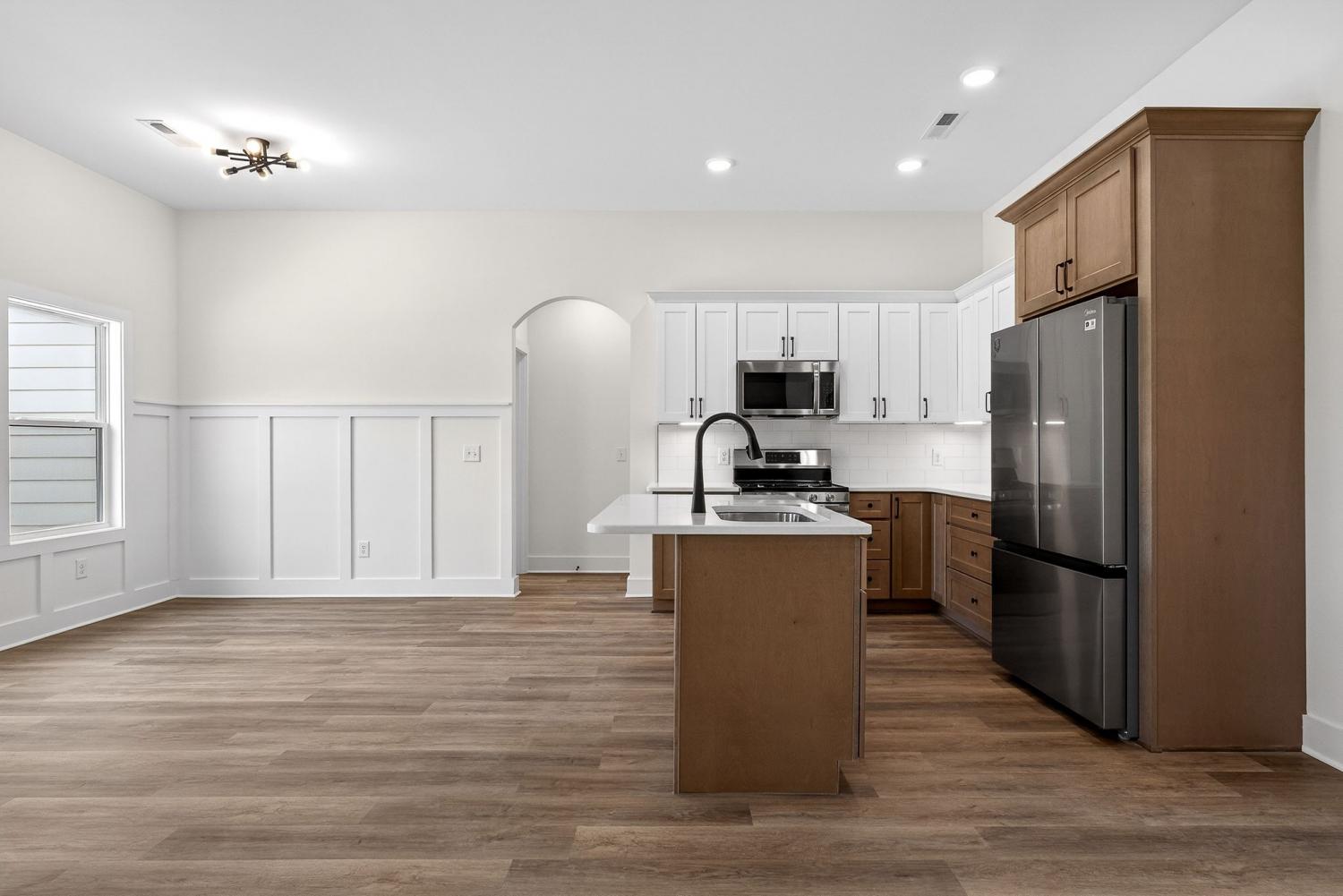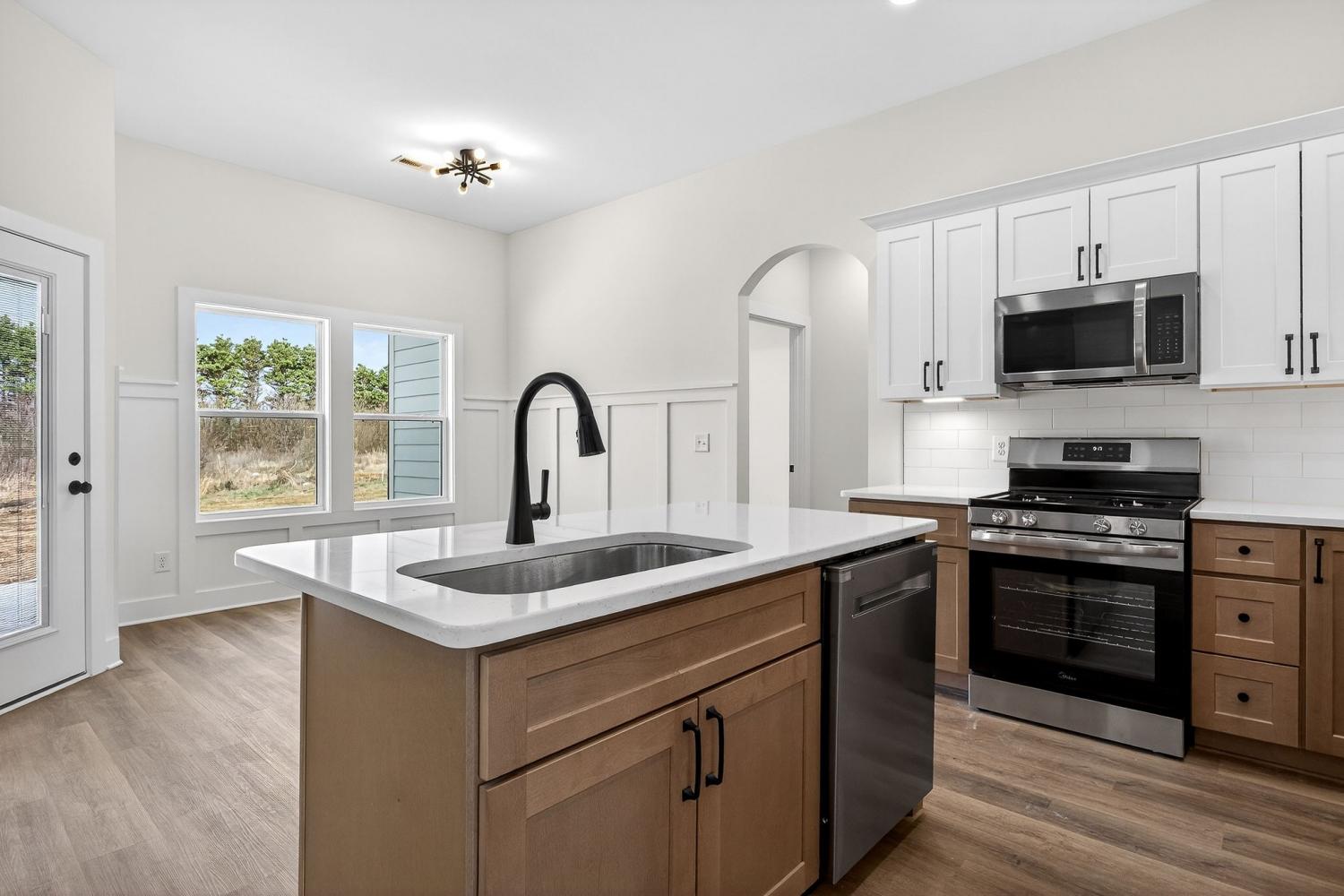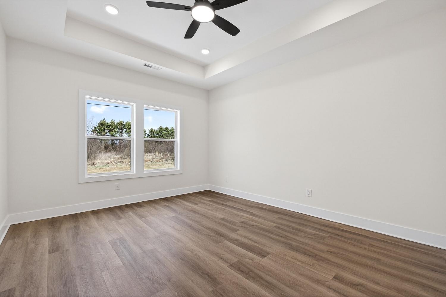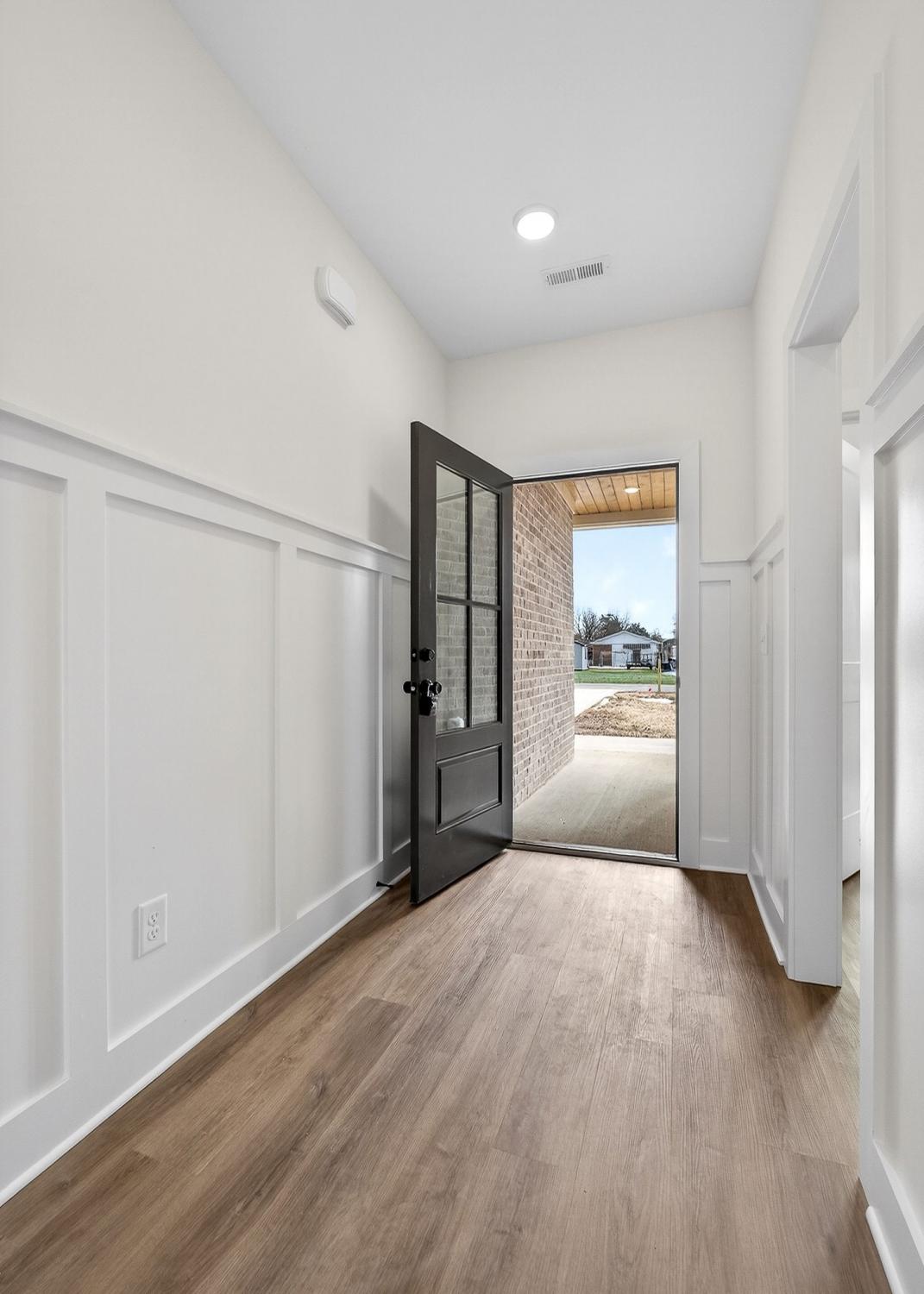 New construction home in the city limits offering true one-level living with no steps and easy access throughout. Features include durable LVP flooring, a tankless water heater, custom cabinetry, granite countertops, and built-in shelving for added storage and style. The living area is anchored by a fireplace, while the primary suite offers a trey ceiling, tile shower, soaking tub, tile flooring, and a large walk-in closet. Many custom upgrades make this home stand out from others in the area, giving it the feel of a true custom build with a touch of luxury. Enjoy a covered back porch overlooking a private backyard, plus an attached two-car garage. Includes a one-year builder warranty for peace of mind.