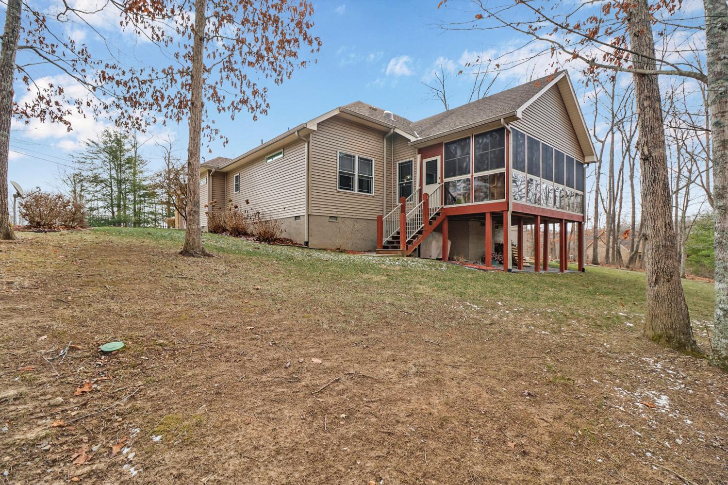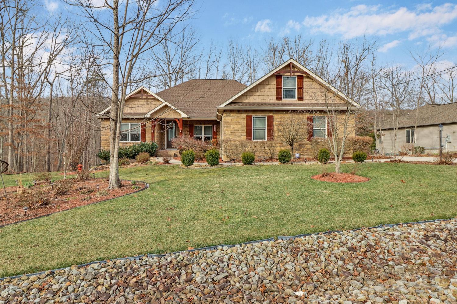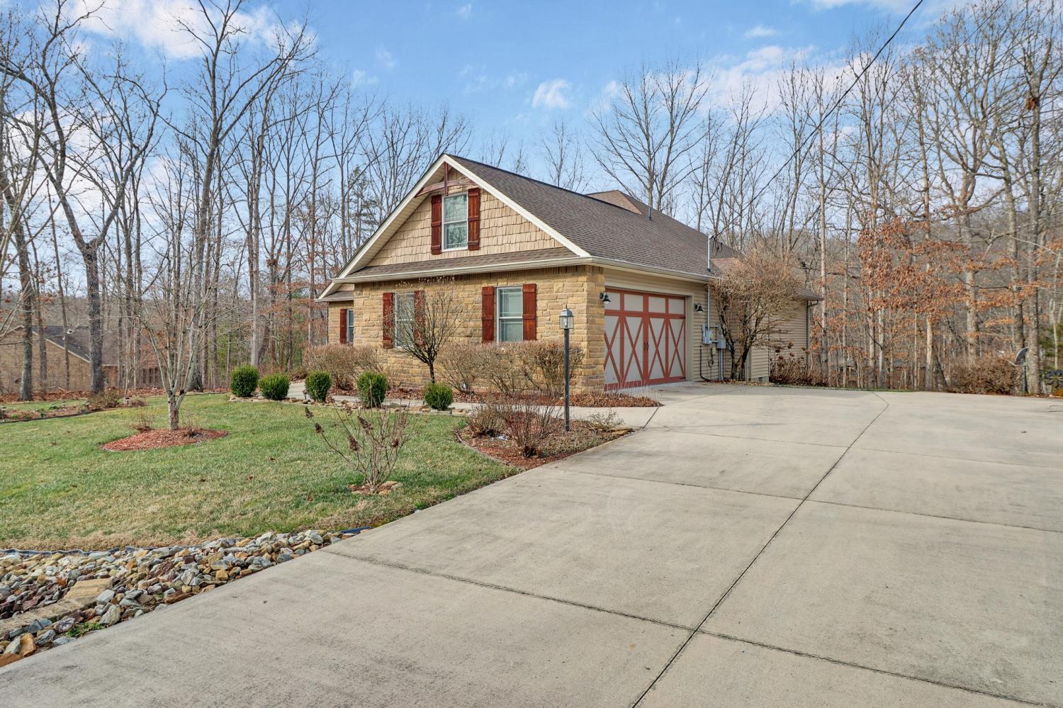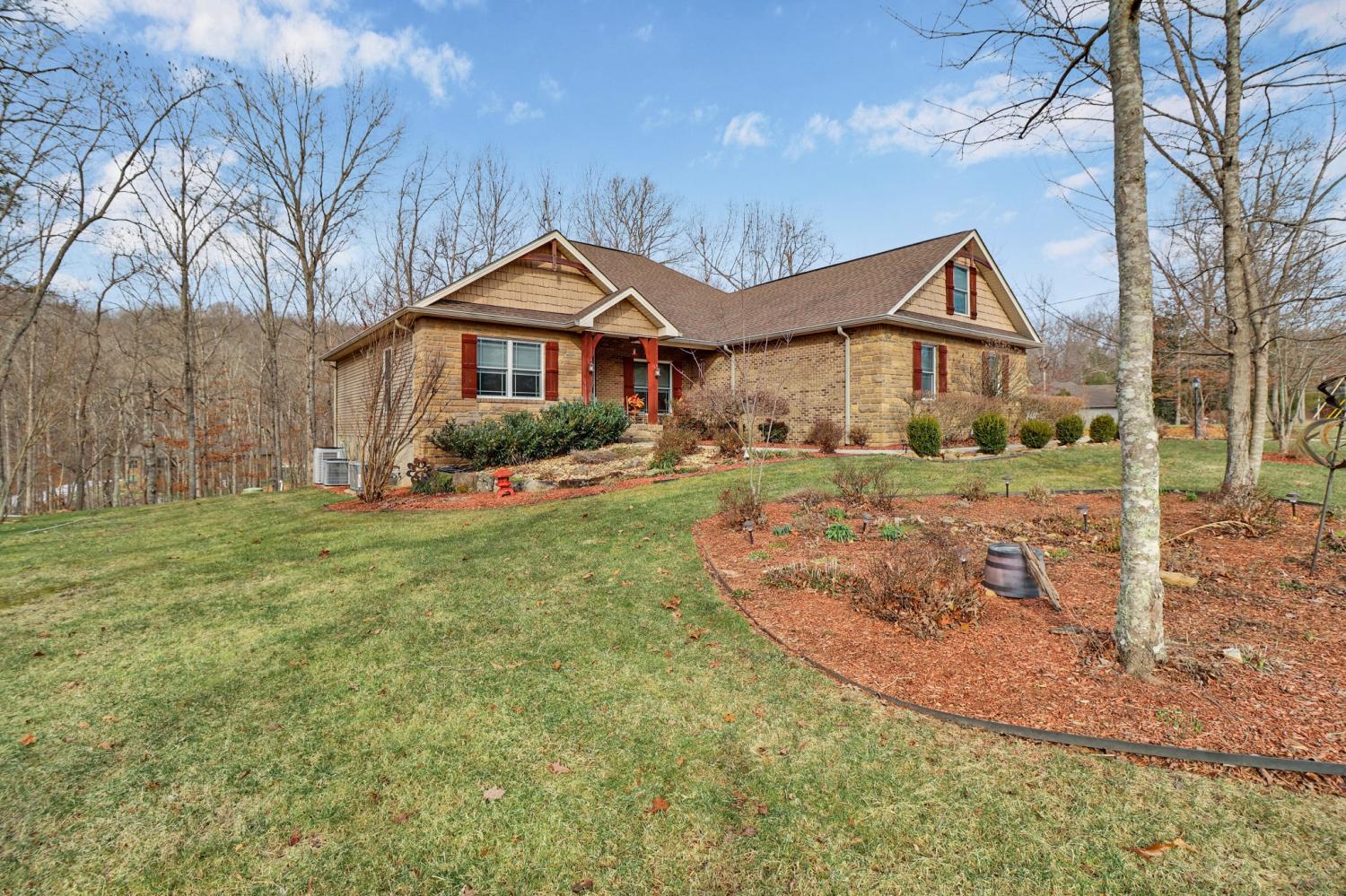 Meticulously maintained one-owner custom-built home offering 3 bedrooms, 3 full baths, and a second-floor bonus room with its own bath—ideal for guests or flexible living. Situated on 0.77 acres with natural gas and public sewer in the highly sought-after Fairfield Glade community. Level driveway provides easy access and everyday convenience. An impressive 8-foot entry door welcomes you into a bright great room featuring cathedral ceilings, a gas stone fireplace with wall-mounted heat & Glo control, and abundant natural light enhanced by three Velux sun tunnels added in 2020. Enjoy year-round relaxation in the 12x24 sunroom with PGT windows installed in 2017, waterproof carpet padding, and a split ductless heating and cooling system.The split bedroom floor plan offers comfort and privacy.Guest bedrooms are generously sized, and the guest bath features durable, low-maintenance suede countertops.The primary suite is a true retreat with a custom walk-in closet and spa-inspired bath including soaking tub, dual sinks, suede countertops, and a large walk-in shower.The kitchen is both functional and inviting with maple cabinetry, granite countertops, stainless steel appliances including a gas range, and a large walk-in pantry. A dedicated den/study with crown molding and pocket doors adds versatility.The upper-level flex space includes a full bath, new light fixture, and its own HVAC system—perfect for guests, hobbies, media room, or private office. Additional highlights include a spacious laundry room with cabinets, cubby storage, and washer/dryer with pedestals to remain; Infinity dual-fuel HVAC with gas furnace (heating component replaced January 2026), zone control thermostat, surge protection, whole-house generator, sound-dampening interior walls, security system, leaf guards, dehumidifier, and crawl space with concrete pad ideal for storage or workshop use. Convenient to shopping, dining, healthcare, and community amenities. Buyer to verify info before making offer.