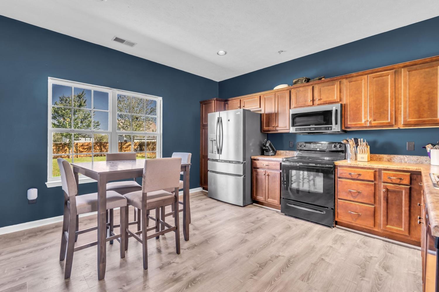 A beautifully well-maintained home in an established neighborhood, is imove-in-ready. Many upgrades including: a new Architectural shingle roof ($25k) 2024(50 year warranty), Trane HVAC 22, a Rainsoft RO system under the kitchen sink. New high quality luxury vinyl wood flooring. A new bathroom sink with plumbing upstairs and fresh paint throughout. The attractive open floor-plan boasts the Master down and 9 ft ceilings, the upgraded kitchen cabinets provide lots of storage and a Large Pantry closet. The primary bedroom features walk-in closets and private bath with double vanity. Upstairs, you'll find 3 additional bedrooms and a spacious bonus room which can easily be a 5th bedroom. The private backyard is the sweet spot! The a large level lot is partially shaded with several trees along the back yard that is fully fenced for your fur babies and includes a patio area just off the kitchen.The laundry room is also located on the first floor. This lovely neighborhood feels like country and includes; A Walking Trail, Pavilion, and access to Fall Creek for fishing.