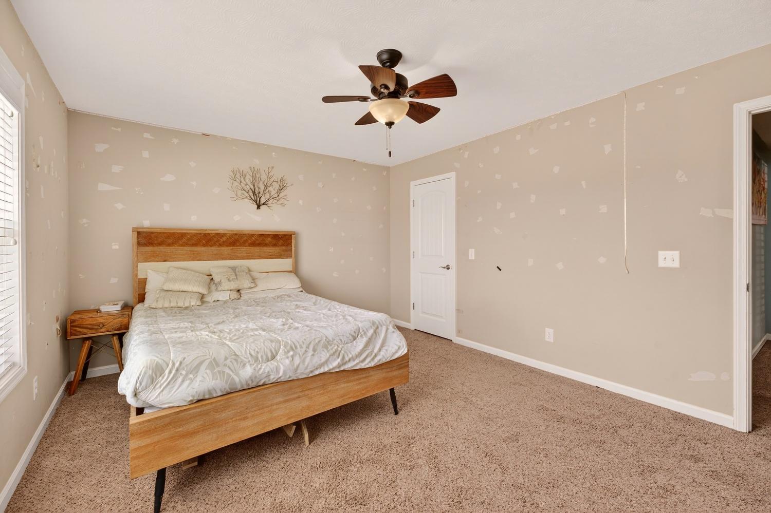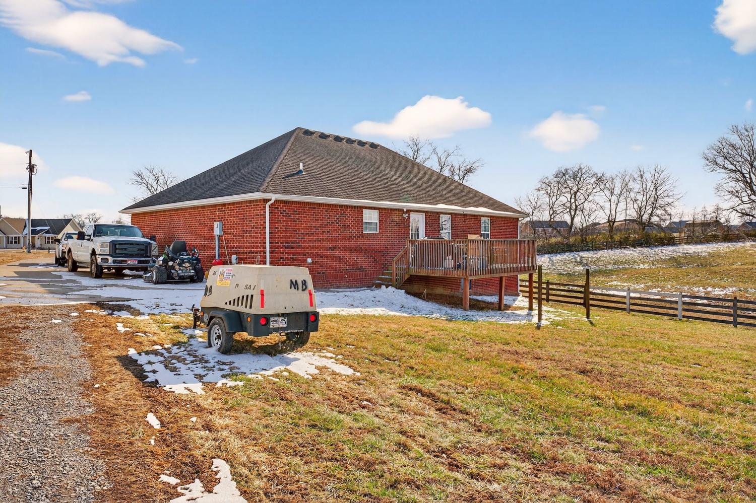 Over 5 cleared acres come with this very comfortable 3 bedroom, 2 bathroom well equipped home. NO HOA! Plenty of room for more outbuildings on this mini farm located at the end of a dead end street! Single Level Living at it's best! This home features a huge open family room, eat in kitchen, large primary bedroom with a full bathroom and large walk in closet. 2 additional bedrooms on the other side of the home share the other full bathroom. Wooden deck off the kitchen for morning coffee overlooking the five beautiful acres.