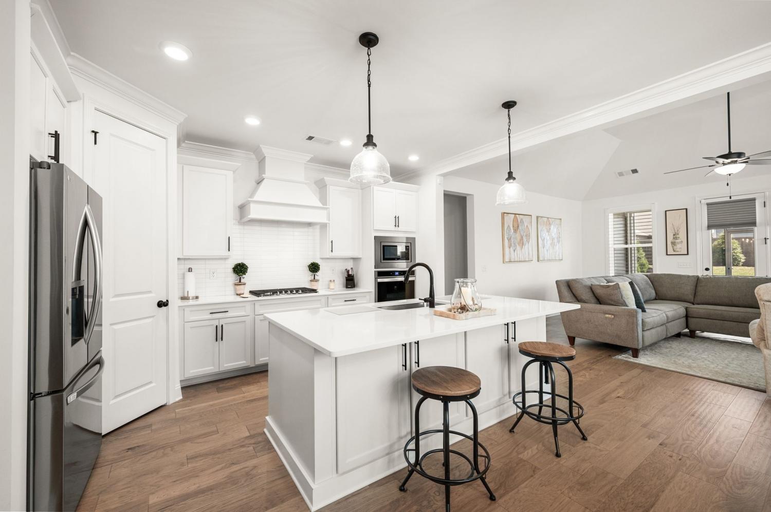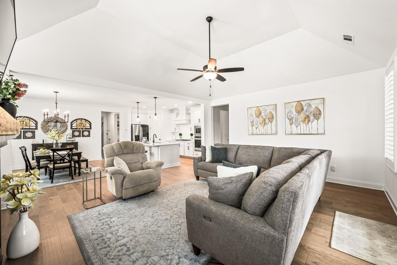 **SELLER CONCESSIONS OFFERED! HOME HAS OVER $25,000 IN UPGRADES! SELLER-PAID 1-YEAR HOME WARRANTY INCLUDED WITH ACCEPTED OFFER** Beautiful home in the highly sought-after neighborhood Harvest Point! This property offers an open-concept layout with spacious living and dining areas, an upgraded kitchen with large island, and abundant natural light throughout. The main level features three bedrooms, including a private primary suite with en-suite bath and walk-in closet. Upstairs includes an additional bedroom and full bath, ideal for guests or flex space. Outdoor living includes a screened-in porch, freshly sodded yard, and new privacy fence. Additional upgrades include a tornado shelter for safety and peace of mind, and custom Graber blinds ($8,000+ value). Harvest Point offers walking trails, green spaces, community garden, and playgrounds, all within minutes of Spring Hill’s shopping, dining, and schools, with easy access to I-65. Move-in ready with only one owner, occupied in 2024. This home combines quality construction, modern amenities, and community living.