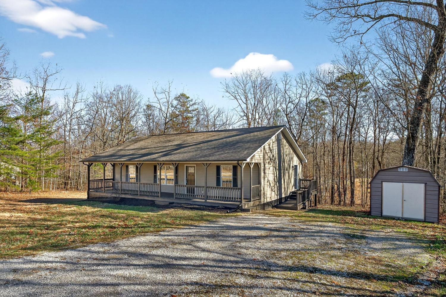 Newly renovated home offering a private, wooded setting in a well-kept neighborhood. Enjoy relaxing on the full-length covered front porch or entertaining on the oversized back deck overlooking the trees. Interior updates include new paint, flooring, fixtures, and granite countertops throughout—truly move-in ready. A storage building adds extra space for tools or equipment. Peaceful surroundings with modern updates make this a great place to call home.