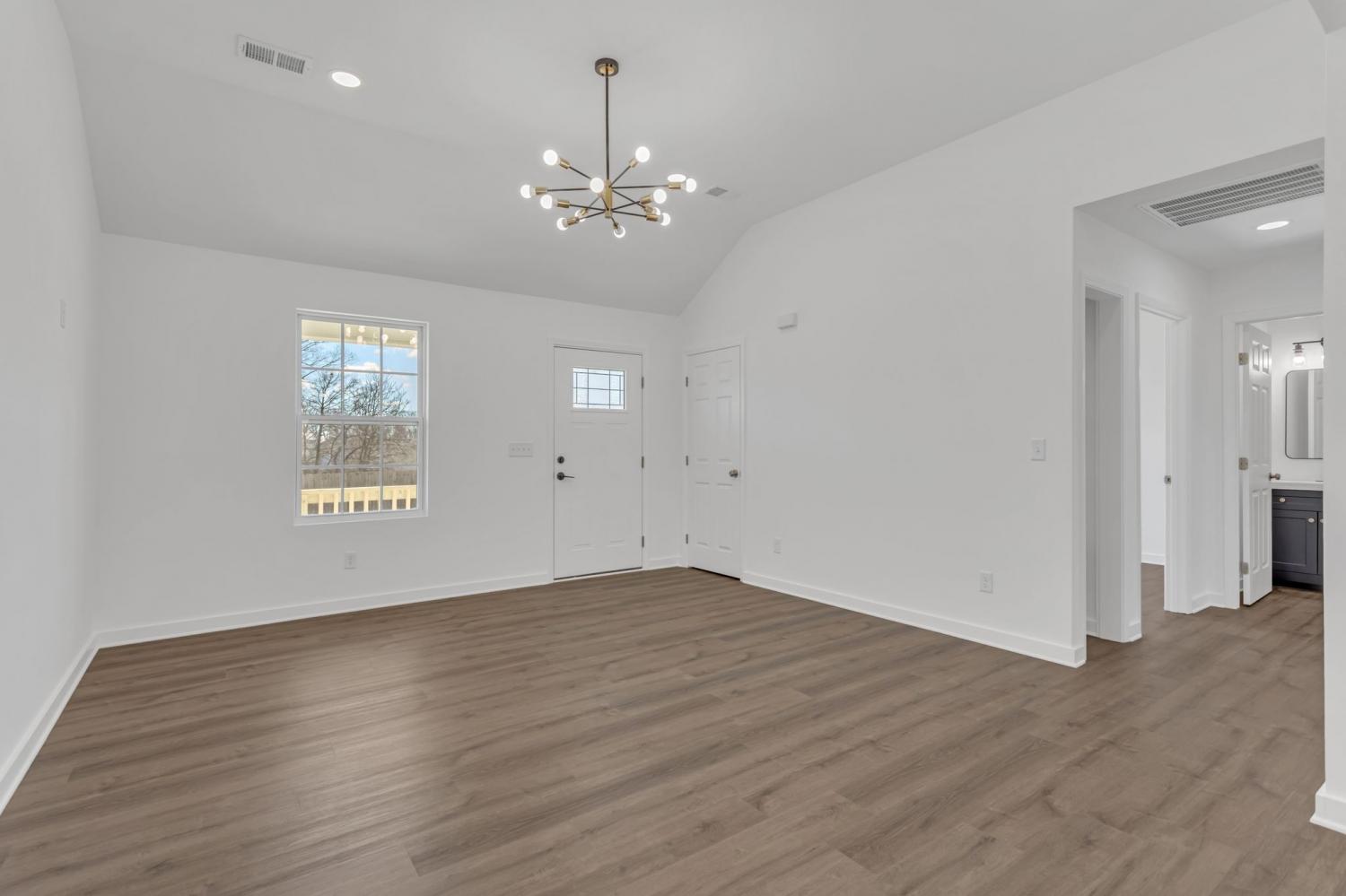 New Construction Home, 3 bedrooms, 2 full baths, open concept living and dining area seamlessly connected to the kitchen, with deck right off the dining area overlooking wooded area, kitchen comes with custom cabinets and quartz countertops, lvp flooring throughout home, high ceiling in living room, tray ceiling in master bedroom and walk-in closet, bathtubs have tiled walls up to the ceiling, recess lighting throughout. Modern design set in a peaceful country setting. Pictures coming soon!! Builder will provide 1 year warranty.