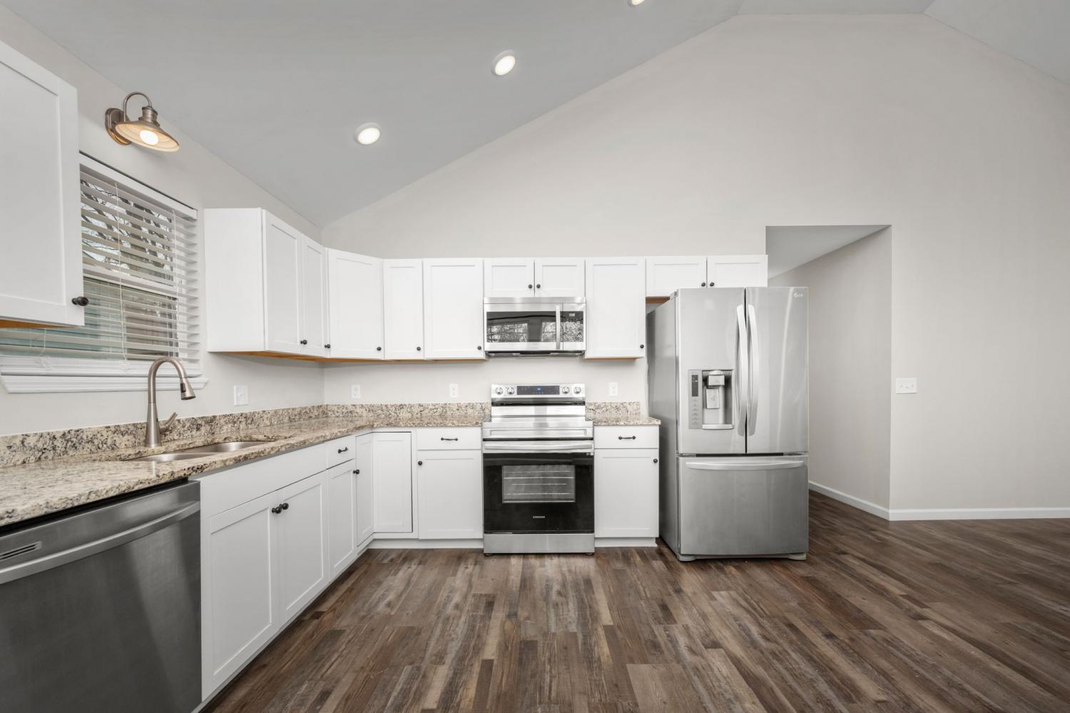 Rainy day photos but - this is the cutest 3 bedroom - 2 bath home - just over 4 years old! You will love the extra large front porch and the amount of natural light in the home making this one feel roomy and bright. As you step inside the home you will notice right away the vaulted ceiling and open-concept, light-filled kitchen, dining and living area. The kitchen features granite counter tops and stainless steal appliances. Down the hallway you will find all three bedrooms, 2 full bathrooms along with the laundry room. Both bathrooms also have granite countertops with double vanities in the primary bath. At the end of the hall, step out onto your back deck which overlooks your fenced back yard! The perfect home in an unbeatable location! Easy to get to all your favorite spots. No HOA!