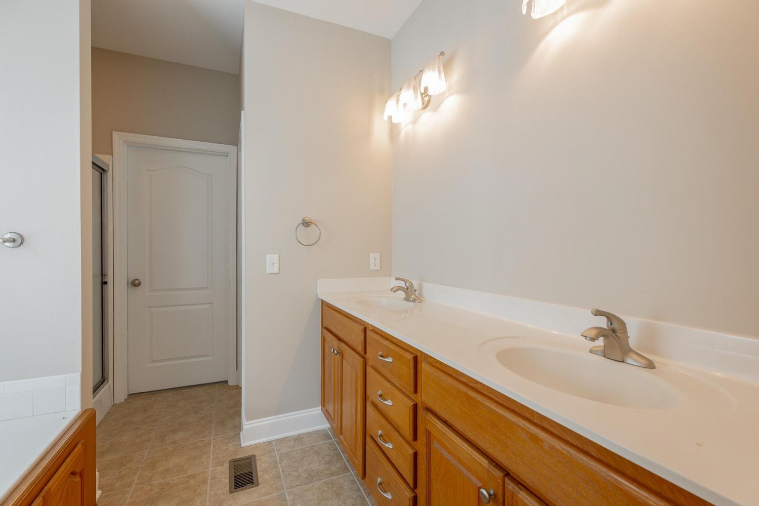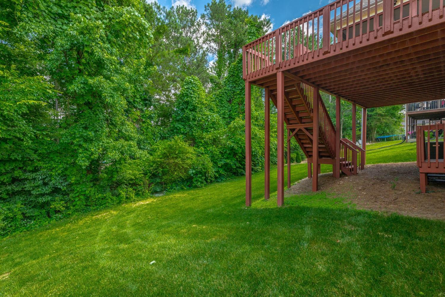 Custom built and completed in March of 2006, this one-owner Wellesley home in Ooltewah is now available and ready for its next chapter! This split bedroom style home boasts a total of 4 bedrooms and 3.5 baths, with 3 bedrooms and 2.5 baths on the main level. New toilets have been recently installed in all bathrooms, complemented by new bath accessories and light fixtures in most baths for a fresh, updated look. The spacious Primary Suite, located on the main level, features a double tray ceiling and a private bath with a walk-in closet, double-sink vanity, water closet, separate shower, and a six-foot jetted tub. Also on the main level, two guest bedrooms that share a convenient jack-and-jill bath. A versatile bedroom with a full bath upstairs provides an additional bedroom or flex space. Well-maintained with many updates over the years, this home showcases a freshly painted interior and exterior (June 2025), new carpet throughout, a GAF roof (replaced May 2020), a newer Goodman HVAC (2025), and a 50-gallon electric water heater installed in 2025. The open floorplan combines a Great Room with a gas log fireplace, a Dining Room, and a welcoming Entry Foyer, all enhanced by raised ceilings, decorative trim and moldings, and hardwood floors. The Kitchen and Breakfast area flow together, offering a pantry, ample cabinetry, stainless appliances (including a newer range and microwave), and granite countertops. French doors open from the Breakfast area to a spacious, recently redone screened porch, perfect for enjoying views of the private backyard and White Oak Mountain. Step onto the uncovered deck, also recently redone, with stairs leading down to a concrete patio at ground level. The main level also includes a two-car garage with an epoxy floor, entering into a hallway near a separate Laundry room and the Kitchen. Hardwood and tile flooring grace much of the home, along with new carpet in the bedrooms.