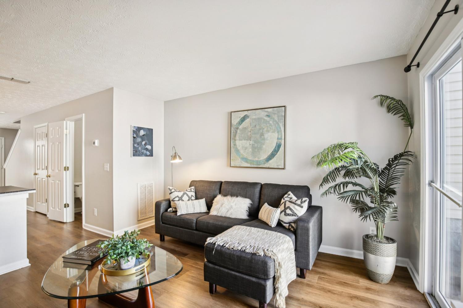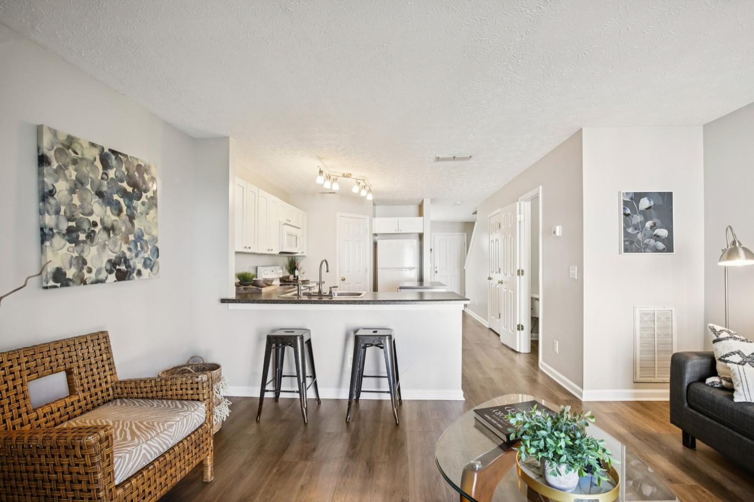 A perfect location in River Bridge community, the heart of Bellevue where comfort meets convenience! The thoughtfully designed layout dining room can easily adapt as a home office, while the open-concept kitchen and living area create the perfect space for entertaining or everyday living.Kitchen with a central island, abundant counter space. Cozy living room anchored by a fireplace. Upstairs, two bedrooms, each with its own private full bath. A convenient half bath on the main level adds to the functionality of the home. Private patio with storage. Located just minutes from Bellevue One, you'll enjoy effortless access to shopping, dining, grocery stores, and more. This townhome offers not just a place to live, but a lifestyle of ease and accessibility.