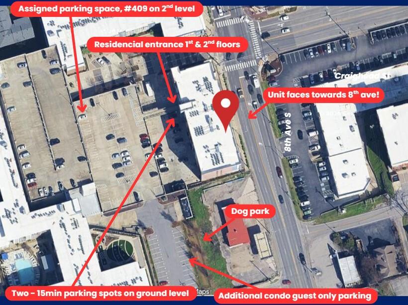 From downtown, follow 8th Ave South to right at Craighead intersection. Follow ramp to second level parking and use pedestrian walkway entrance.