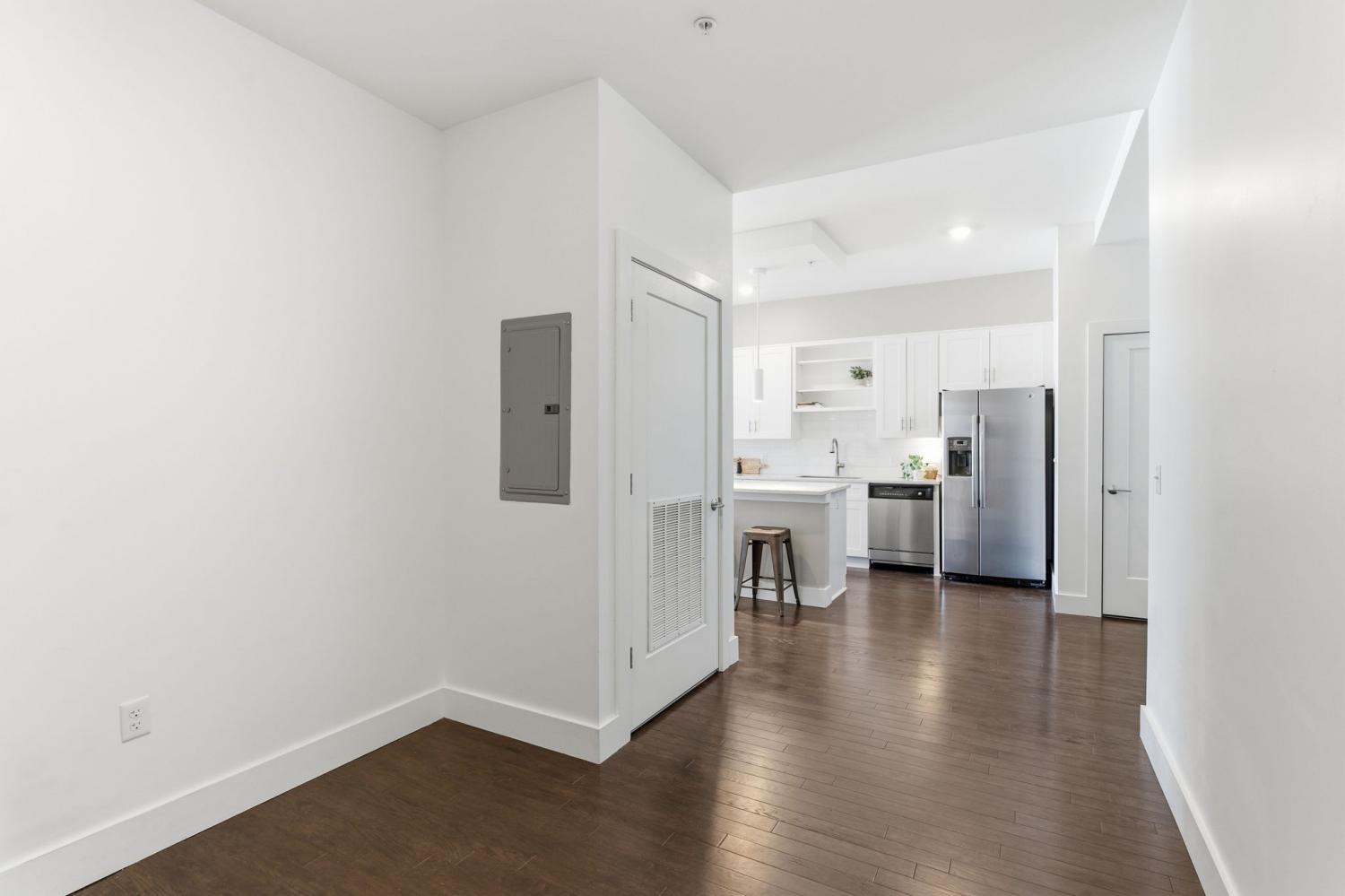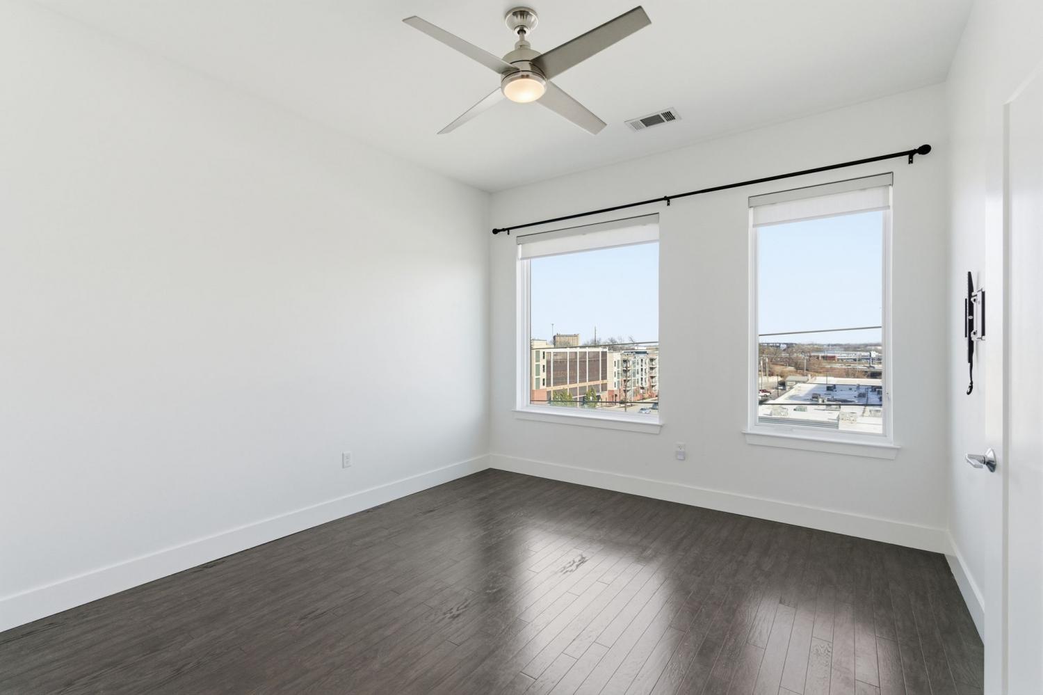 Move-in ready condo that truly feels like a 2 bedroom! **SPECIAL OFFER: $5,000 Seller credit & 1 yr Home Warranty** Large den/office space off the kitchen make this unit feel much larger than most one bedroom units. Sweeping views of the Melrose/8th Ave S make this an ideal unit for entertaining or as an investment property. 10’ ceilings, hardwood floors throughout, and oversized windows that flood the space with natural light. Custom remote-controlled blinds enhance both privacy and convenience. The kitchen features a large island, quartz countertops, stainless steel appliances, and lots of storage—well suited for daily living and entertaining. In-unit laundry with a full-size washer and dryer is included. The separate study/den provides meaningful flexibility—ideal for a home office, guest nook, or additional living space—offering far more utility than a typical one-bedroom condo! Secure, pet-friendly building with controlled access, assigned parking, dedicated guest parking, and an on-site dog run. Street-level retail and dining, plus exceptional walkable proximity to Publix, Kroger, Hattie B’s, ML Rose, coffee shops, and more. Convenient access to 12 South, Wedgewood-Houston, Geodis Park, The Gulch, and Downtown. Quick access to I-65, I-440, and the airport makes commuting simple. No STRs permitted. Long-term rentals allowed with approval and availability. All appliances remain. Corporate relocation—contact David Gordon for additional details or to schedule a showing.