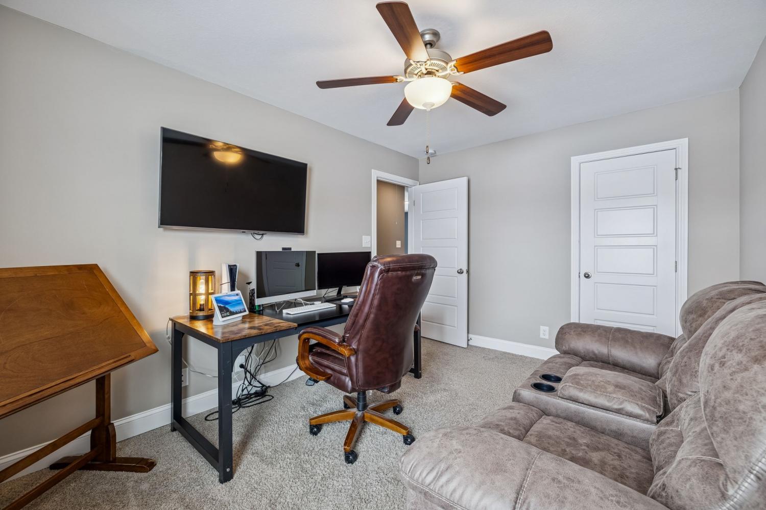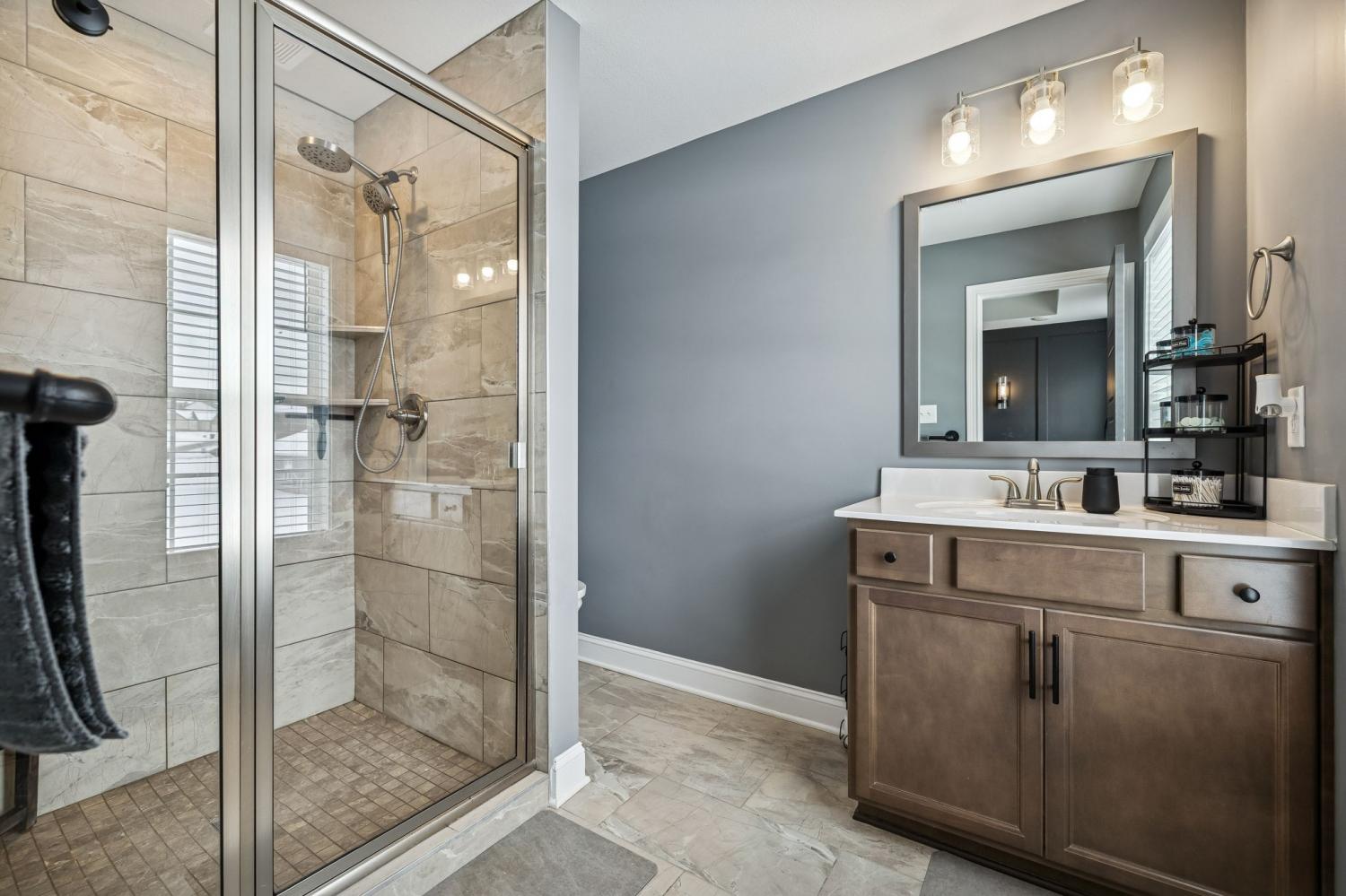 Better than new Clarksville home built in 2022 and thoughtfully customized by the current owner. Featuring a DREAM backyard! This popular Baker Plan offers 3 bedrooms, 2.5 baths of thoughtfully designed living space with stylish updates throughout. The open-concept kitchen, dining, and living areas create an inviting flow ideal for both everyday living and entertaining. Updated fixtures and finishes elevate the home's custom touch. The spacious primary suite features a custom accent wall and an elegant tray ceiling, creating a relaxing retreat. The primary bath includes a spacious tile and glass walk-in shower for added comfort and functionality. Step outside and prepare to be impressed. The fully fenced backyard is an entertainer’s paradise with an outdoor fireplace, TV, hot tub, outdoor kitchen, fire pit, and storage building—your own private oasis ready for year-round enjoyment. An extended driveway offers ample space for trailers, RVs, or additional parking, a rare and valuable upgrade. Additional highlights include an epoxy-coated garage floor for a clean, durable finish. With newer construction, thoughtful upgrades, and outdoor amenities that are hard to find, this home truly stands out. Move-in ready and designed for lifestyle living—this one is a must-see.