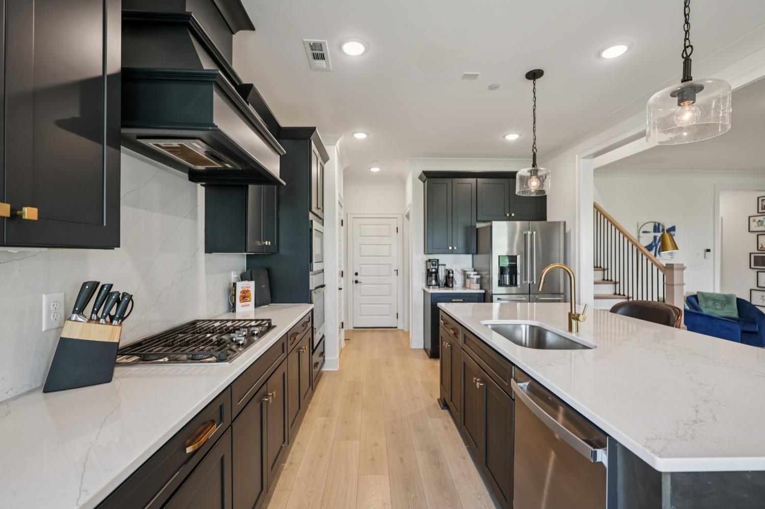 LOCATION*LUXARY*LIFESTYLE -Discover the perfect blend of luxury, comfort, and convenience in this stunning new home located just 30 minutes from Nashville and only 7 minutes from Publix, Home Depot, restaurants, shopping and a short drive to Percy Priest Lake. Every day feels like a getaway in this vibrant community, complete with a sparkling pool, playground, and community center—all just steps from your front door. Set on a spacious .28-acre lot, this home offers 5 generous bedrooms and 3.5 bathrooms, designed for modern living. The covered patio with a built-in gas line is ideal for outdoor gatherings with family and friends. Inside, the main floor exudes contemporary elegance with 10-foot ceilings, 5" crown molding, and beautiful wood flooring throughout. The great room centers around a brick fireplace with a warm cedar mantle, creating a cozy yet sophisticated atmosphere. The gourmet kitchen is a chef’s dream, featuring a built-in gas cooktop, sleek appliances, and a dedicated coffee nook. Soft-close cabinets, gold-laced quartz countertops, and matching backsplash add a touch of luxury, while gold hardware accents complete the modern aesthetic. Retreat to the primary suite, a serene sanctuary with a spa-like en-suite bath featuring a soaking tub, rain shower, and spacious walk-in closet. Every bathroom showcases upgraded tile and fixtures for a refined finish. Upstairs, a versatile recreation area offers the perfect space for family fun or entertaining guests. Modern conveniences includes: Whole home sound system, roof soffit outlets for holiday lights or security system, in floor plugs, and garage with 450 amp plug ready for future EV charging station. Experience the perfect balance of style, comfort, and functionality in this exceptional home. **RATE BUY DOWN** Preferred Lender is offering 1% of buyers loan amount towards rate buy down. Contact Collin Brown Churchill Mortgage (615) 921-3465.