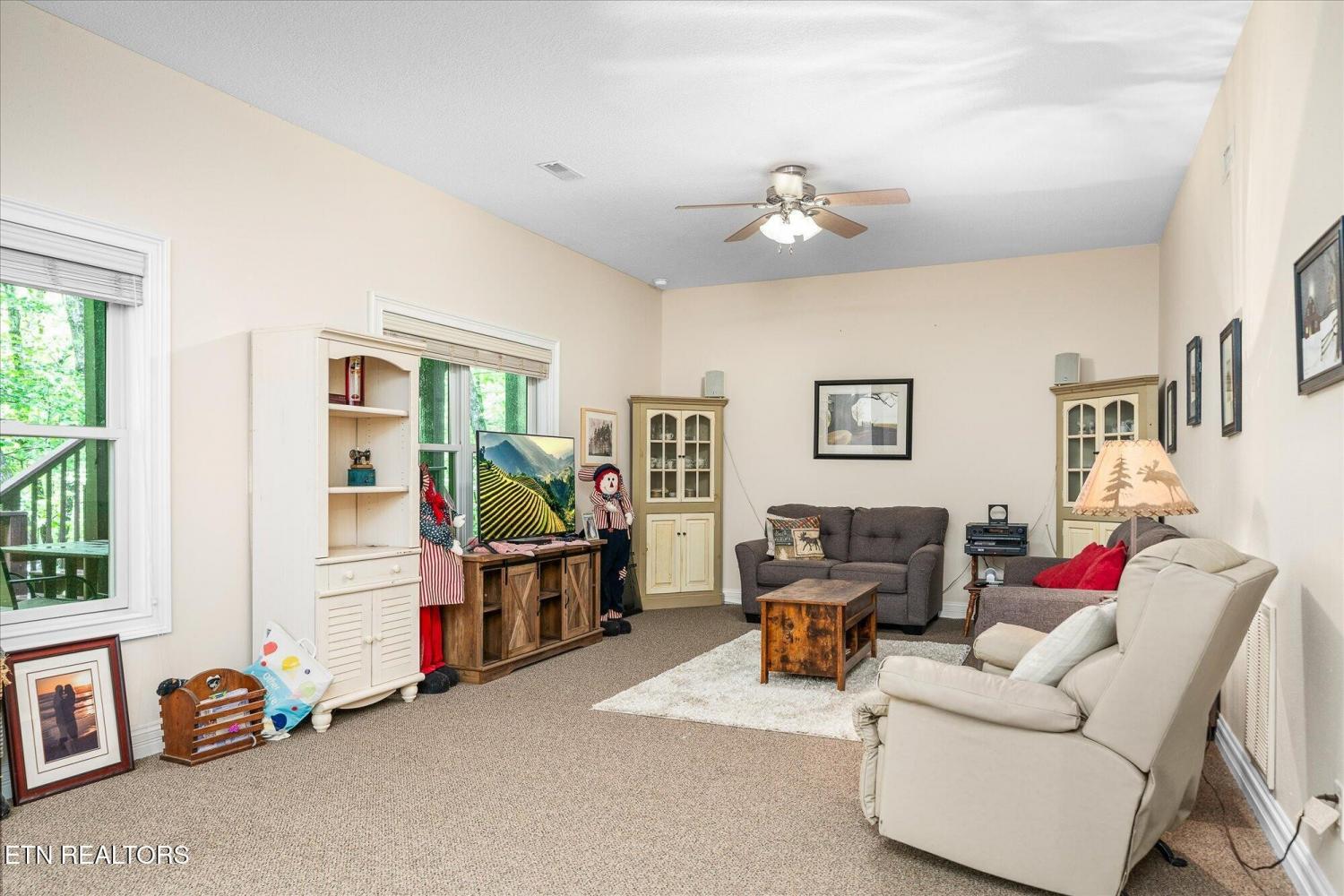 Perfectly situated in the desirable Fairfield Glade retirement community, this spacious home offers a blend of comfort, style, and functionality, all nestled on two generous lots totaling approximately 0.57 acres and 1 HOA fee. This property welcomes the much-awaited Spring season! Property Highlights: **Spacious & Elegant Interior** The open floor plan features a harmonious combination of hardwood, carpet, and tile flooring. The main living area is distinguished by a soaring 12.5-foot cathedral ceiling and a cozy natural gas fireplace, creating a warm and inviting atmosphere. Throughout the tile flooring, air vents are strategically aimed at the floor, providing efficient warmth on cooler days. -Gourmet Kitchen & Living Space The large, open-concept kitchen boasts stainless steel appliances, ample counter space, and cabinetry, seamlessly flowing into the adjoining dining and living areas. Ideal for entertaining guests or enjoying family gatherings. -Luxurious Master Suite The spacious master bedroom features a tray ceiling and a large walk-in closet. Sliding glass doors lead to one of the two upper decks (12x24), perfect for morning coffee or evening relaxation. The master bath has been recently updated with a new walk-in shower, also featuring double vanity, and a jetted tub for added comfort. - Additional Bedrooms & Bathrooms The main level includes two guest bedrooms—one with direct access to a 12x24 private deck. A full bathroom for guest convenience. The split bedroom layout ensures privacy and comfort for family and visitors. **Outdoor Living & Landscaping** A welcoming front covered porch provides a charming entrance while you sit viewing your many perennial flowers and trees with a beautifully landscaped yard. Just some of the many plants and trees are: Dogwood, Maple, Rose Sharon, Magnolia and a beautiful snowball tree accented with azaleas and hydrangea bushes.
